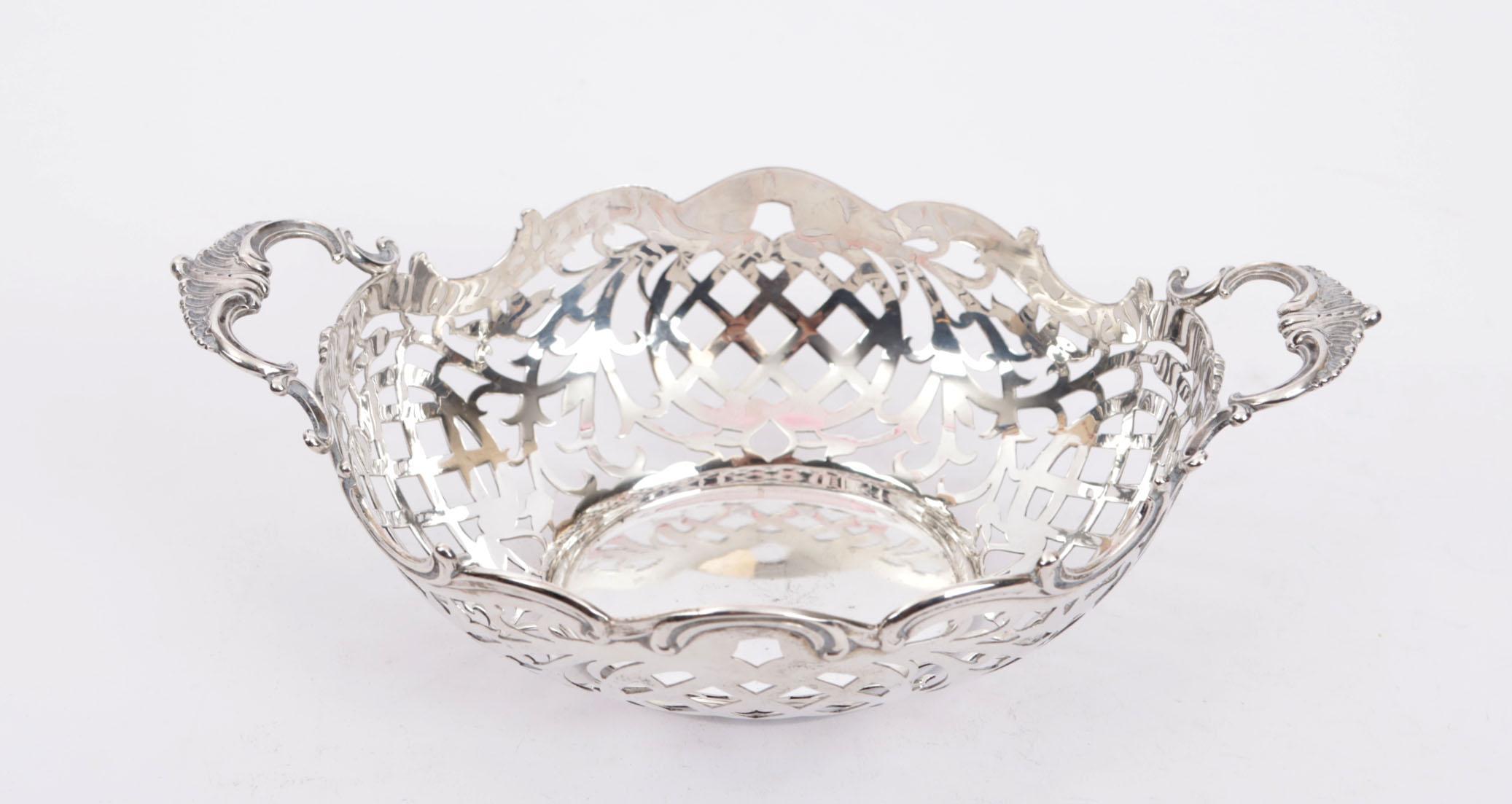 Opengewerkt 2e zilveren mand, h.7 x b.20 x d.13 cm., 145 gram