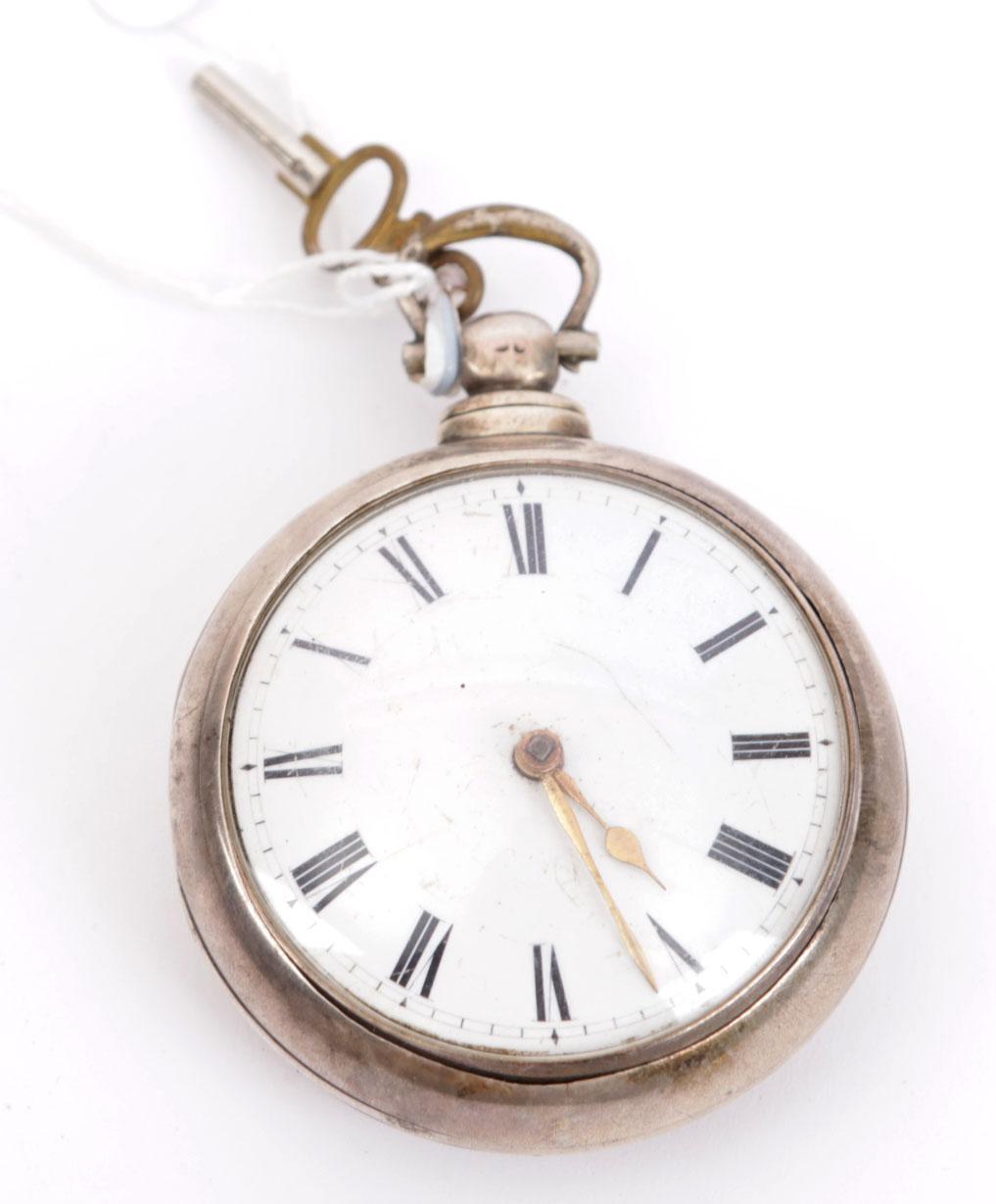 Richard Scurr (1687–1752) Thrisk, zilver vestzakhorloge, in dubbele zilveren kast.