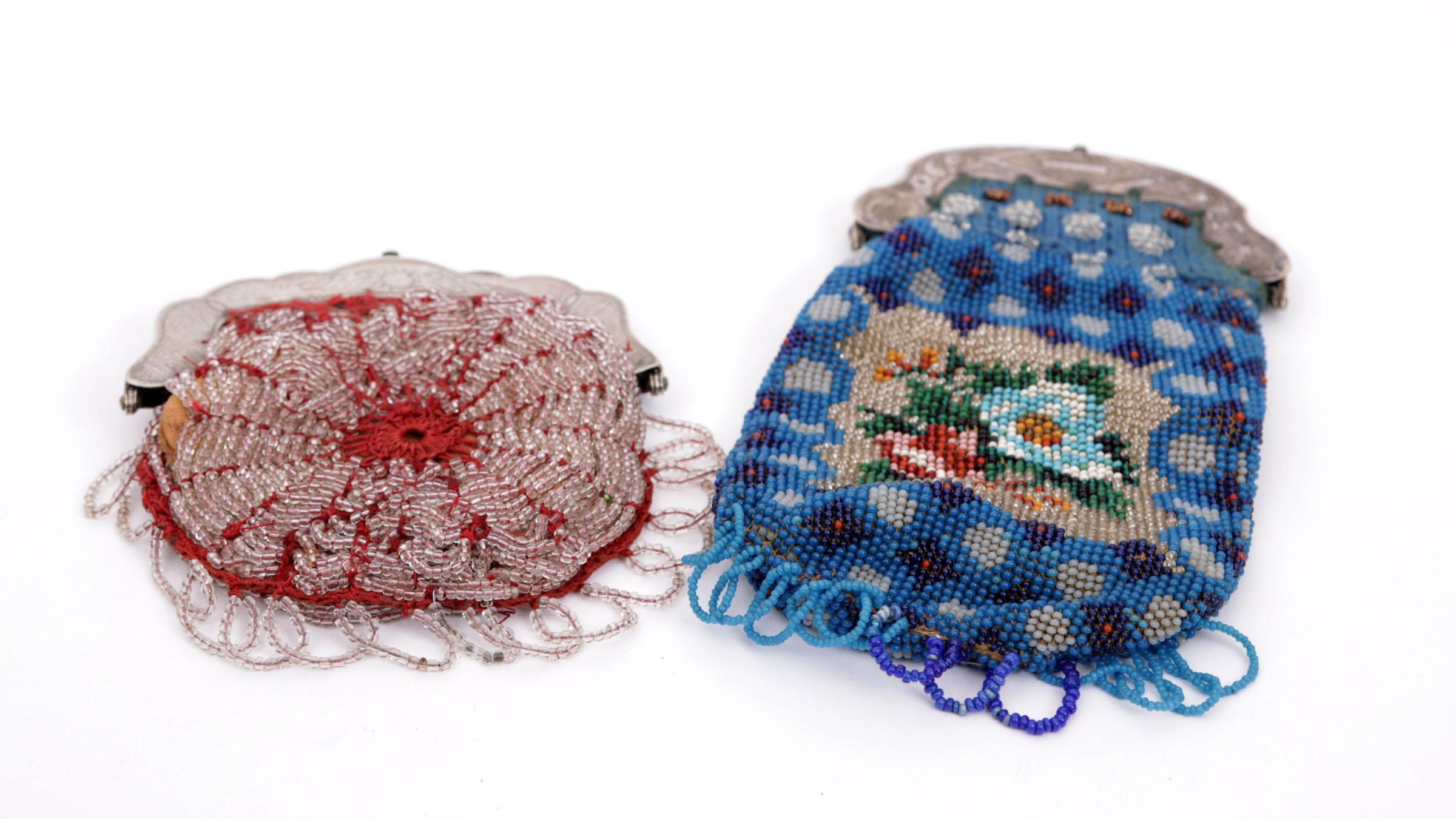 2 Antieke kralentasjes met zilveren beugel, zilvergewicht ca.70 gram