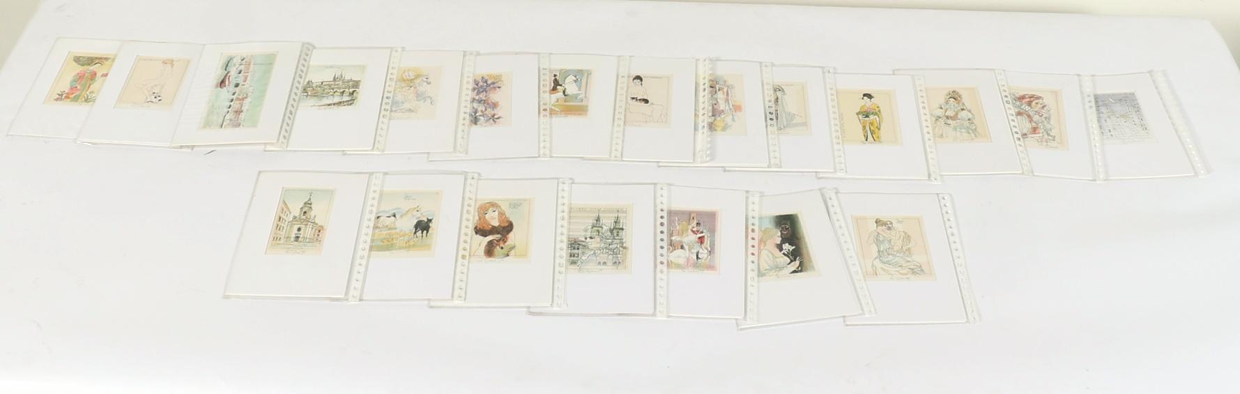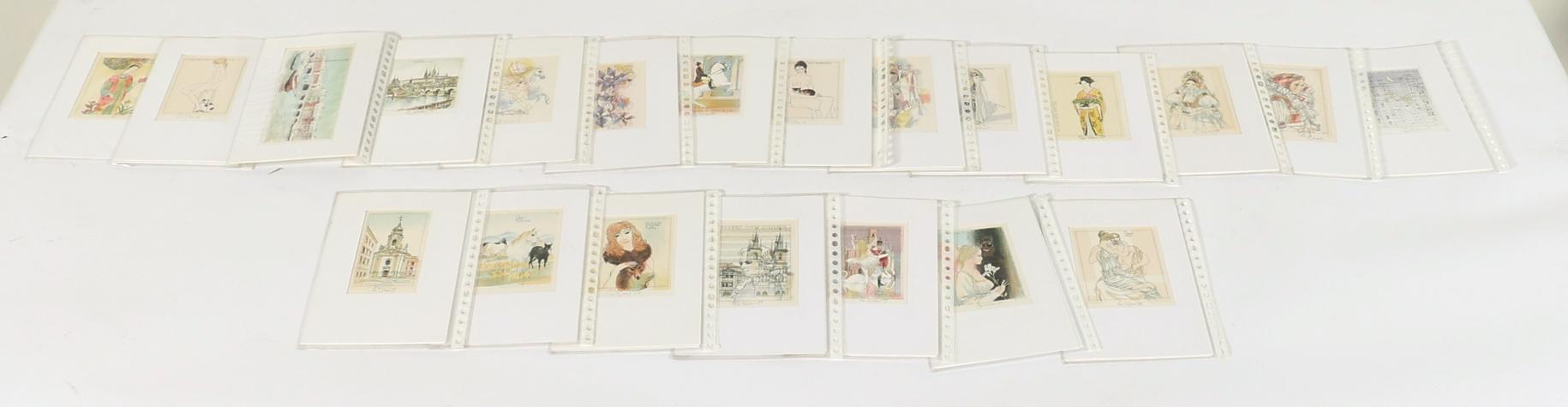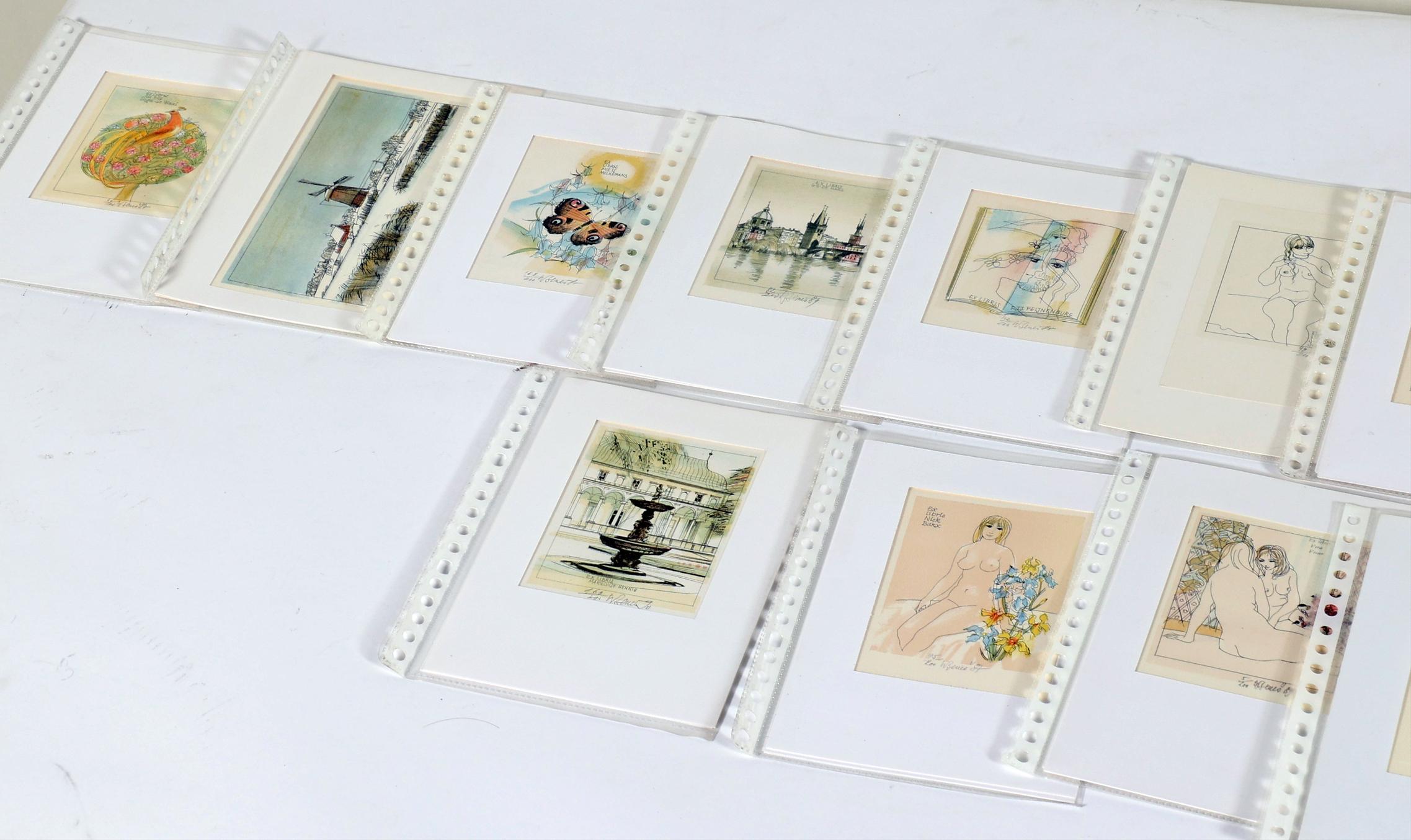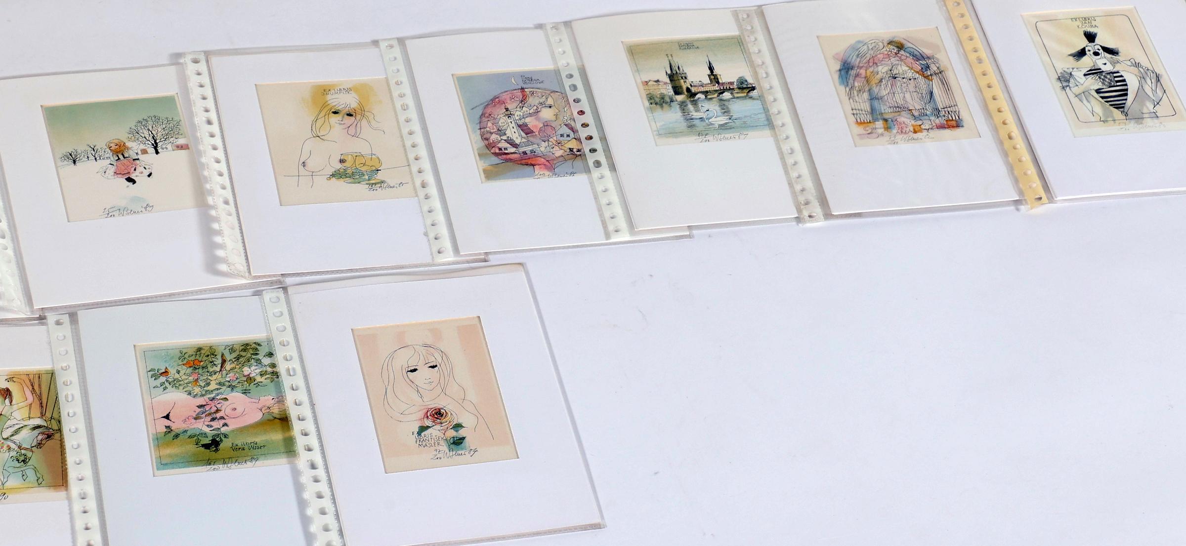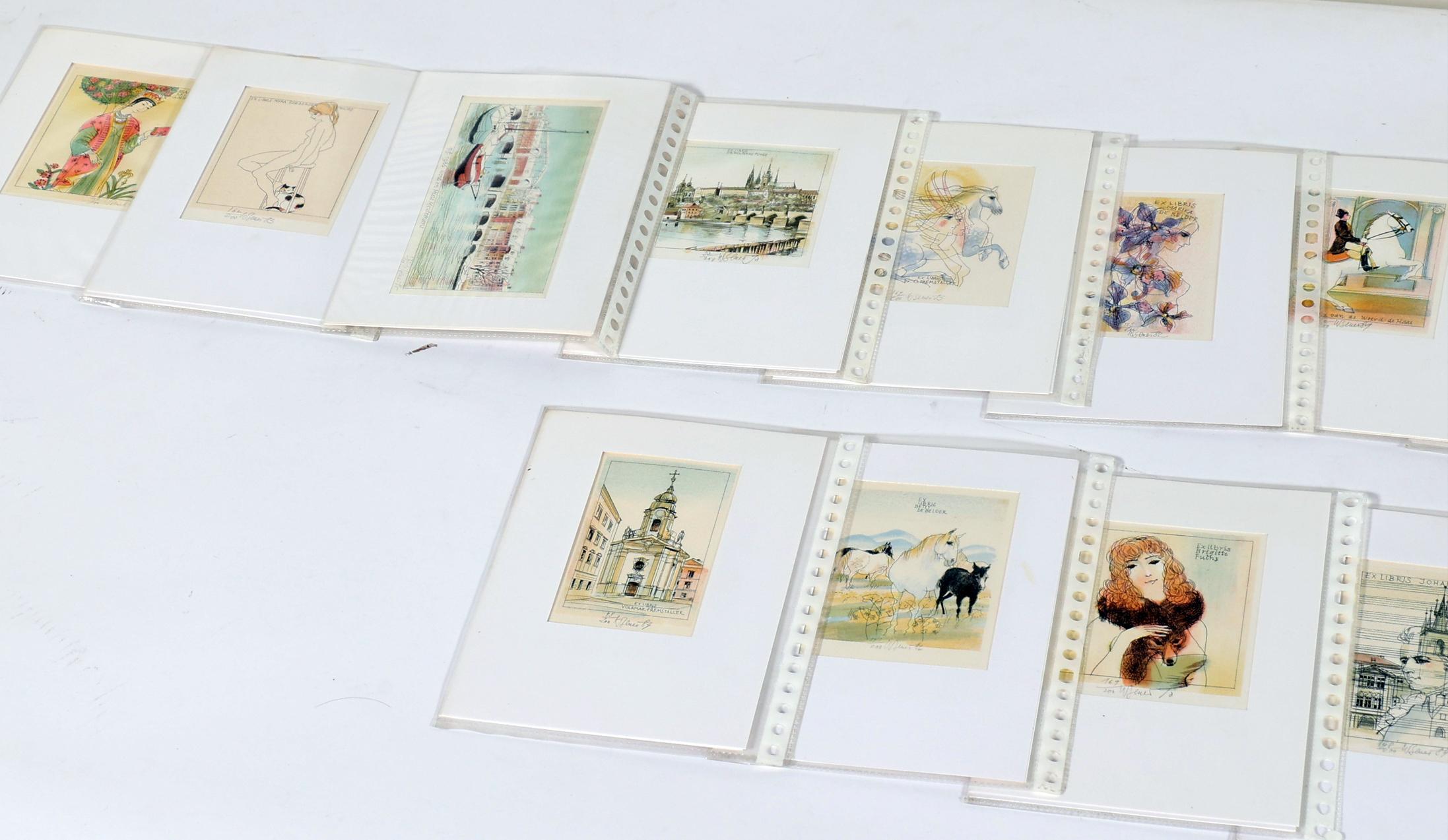 Benes, Karel, plm. 40 exlibris, meerkleuren-litho, alle gesigneerd, in passe-partouts