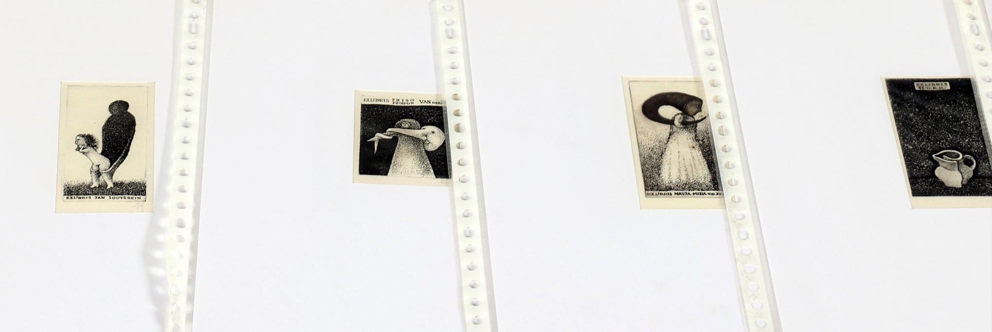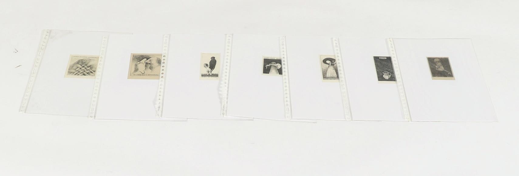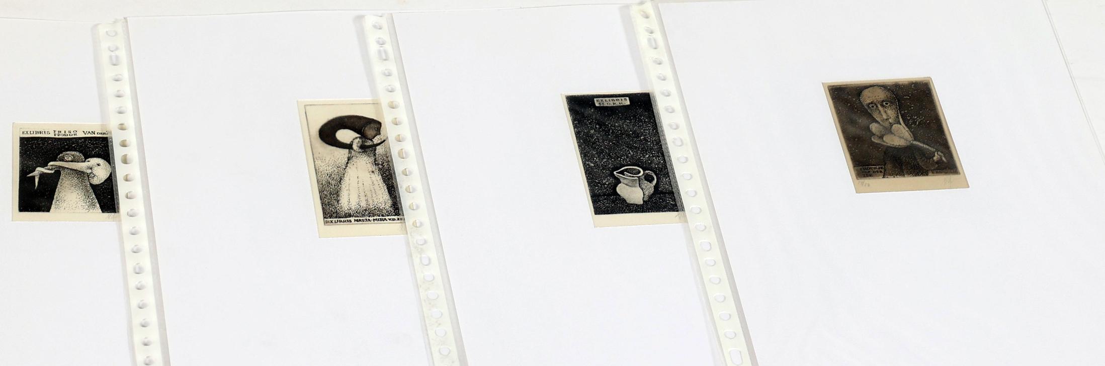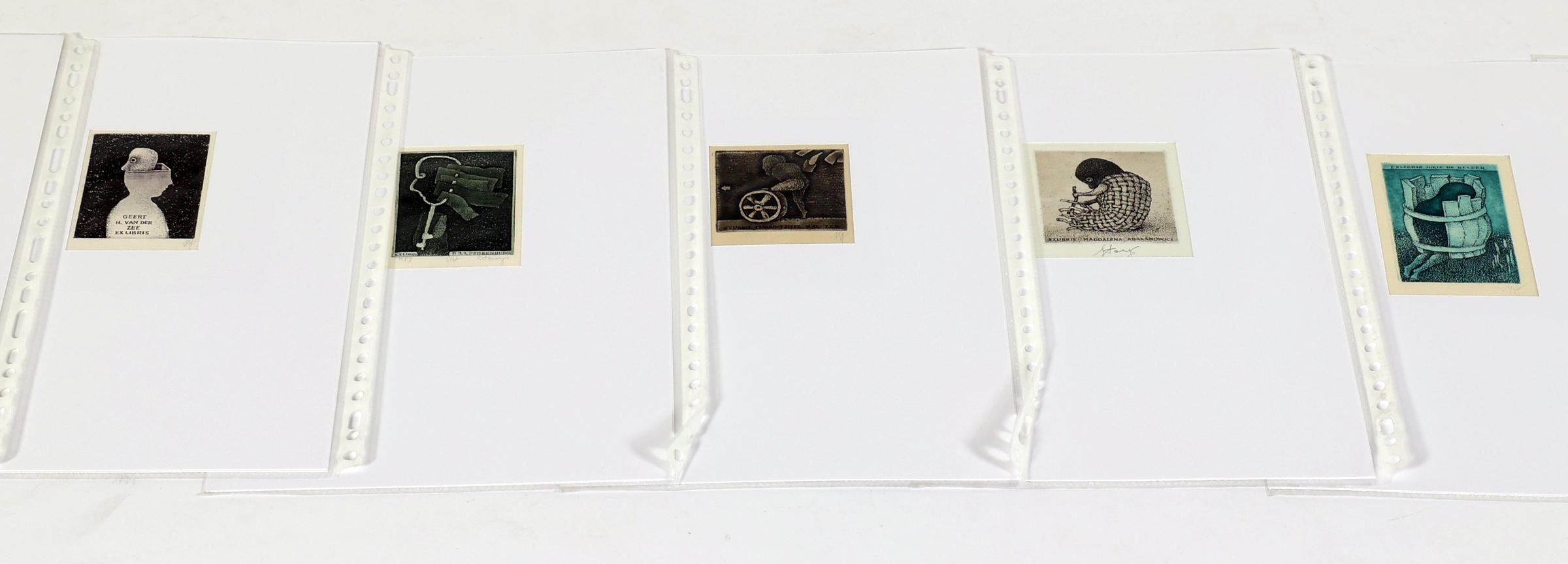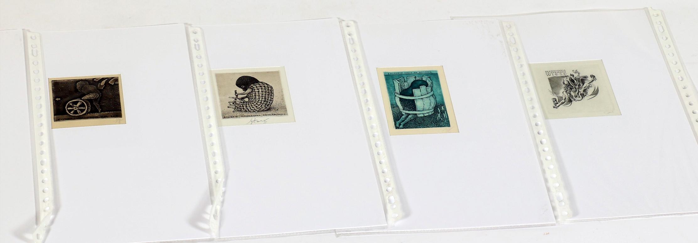 Eidrigevicius, St., 13 exlibris, C3, alle gesigneerd / gemonogrammeerd. In Passe-partouts. Voor o.a. Hillerbrandt, Peynenburg, Souverein, Van der Zee, Abanakanowicz