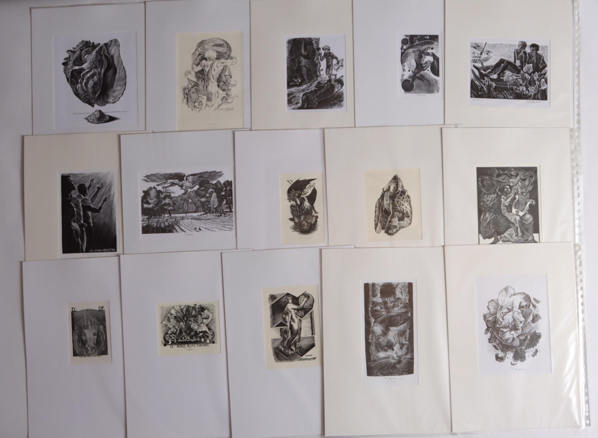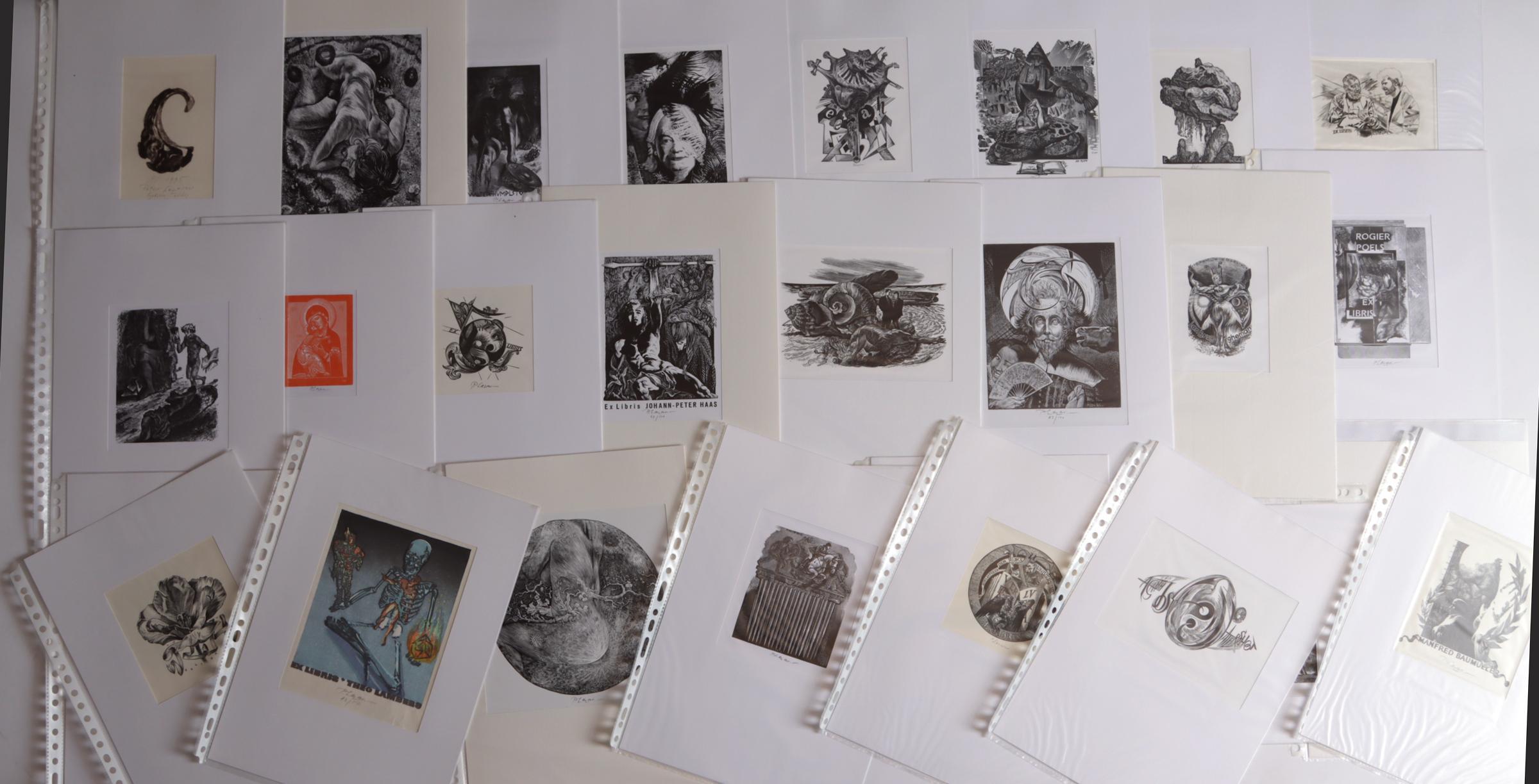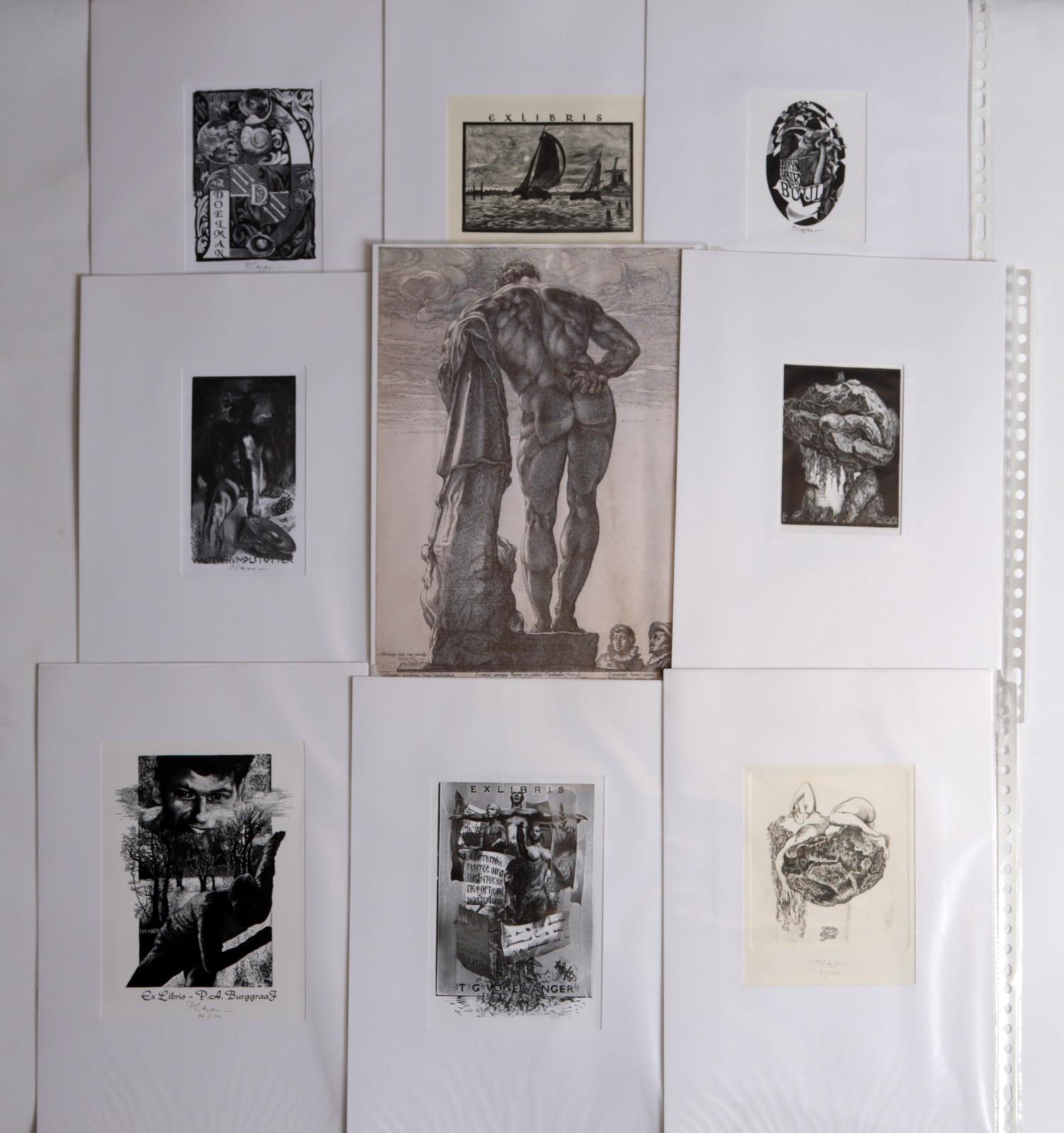 Lazarov, P., (Bulgarije / NL), collectie van plm. 55 exlibris / kleingrafiek, 6 x diepdruk, rest X2. Deels gesigneerd, in passe-partouts.