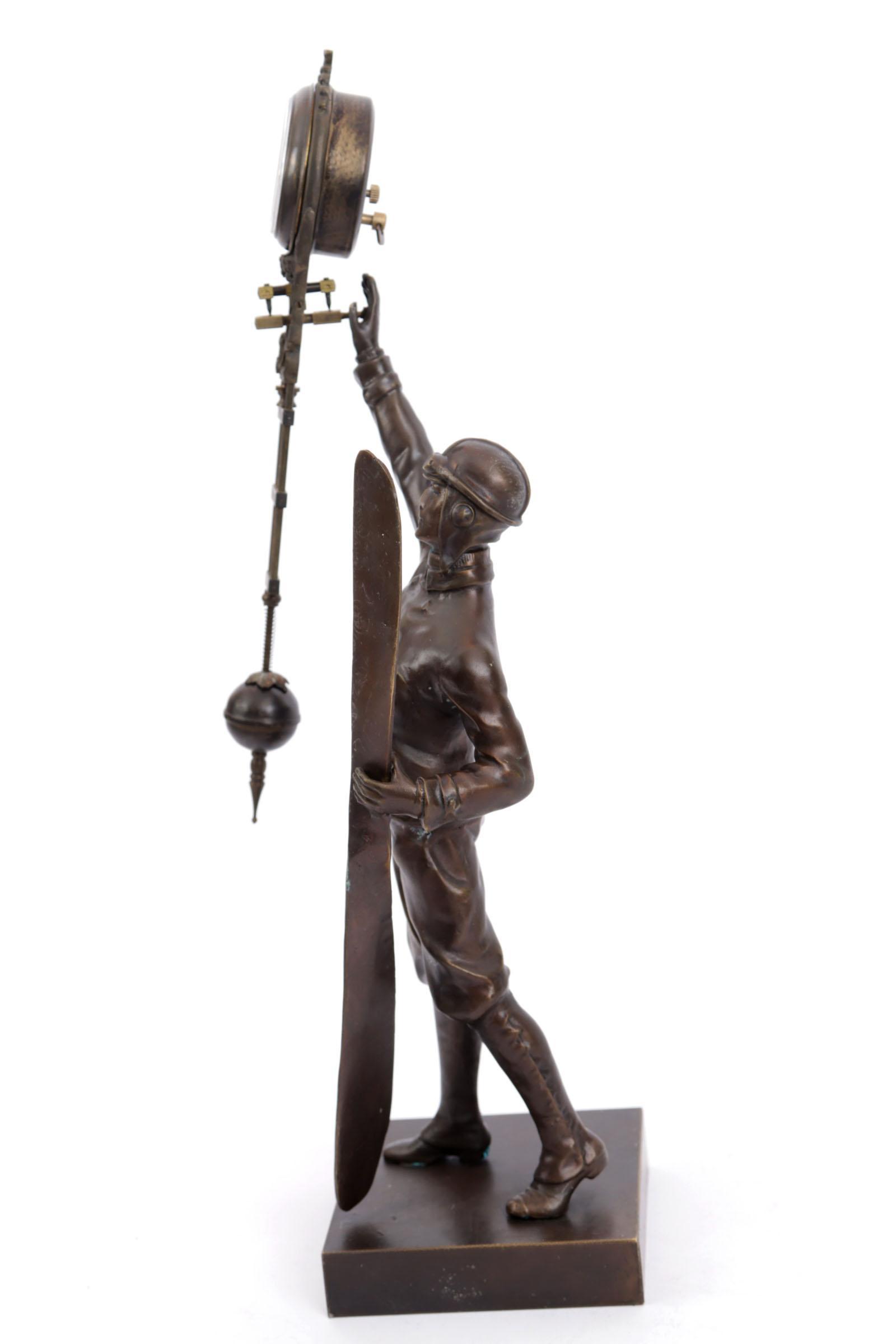 Bronzen mysterieus klokje, Aviator, h.39 cm.