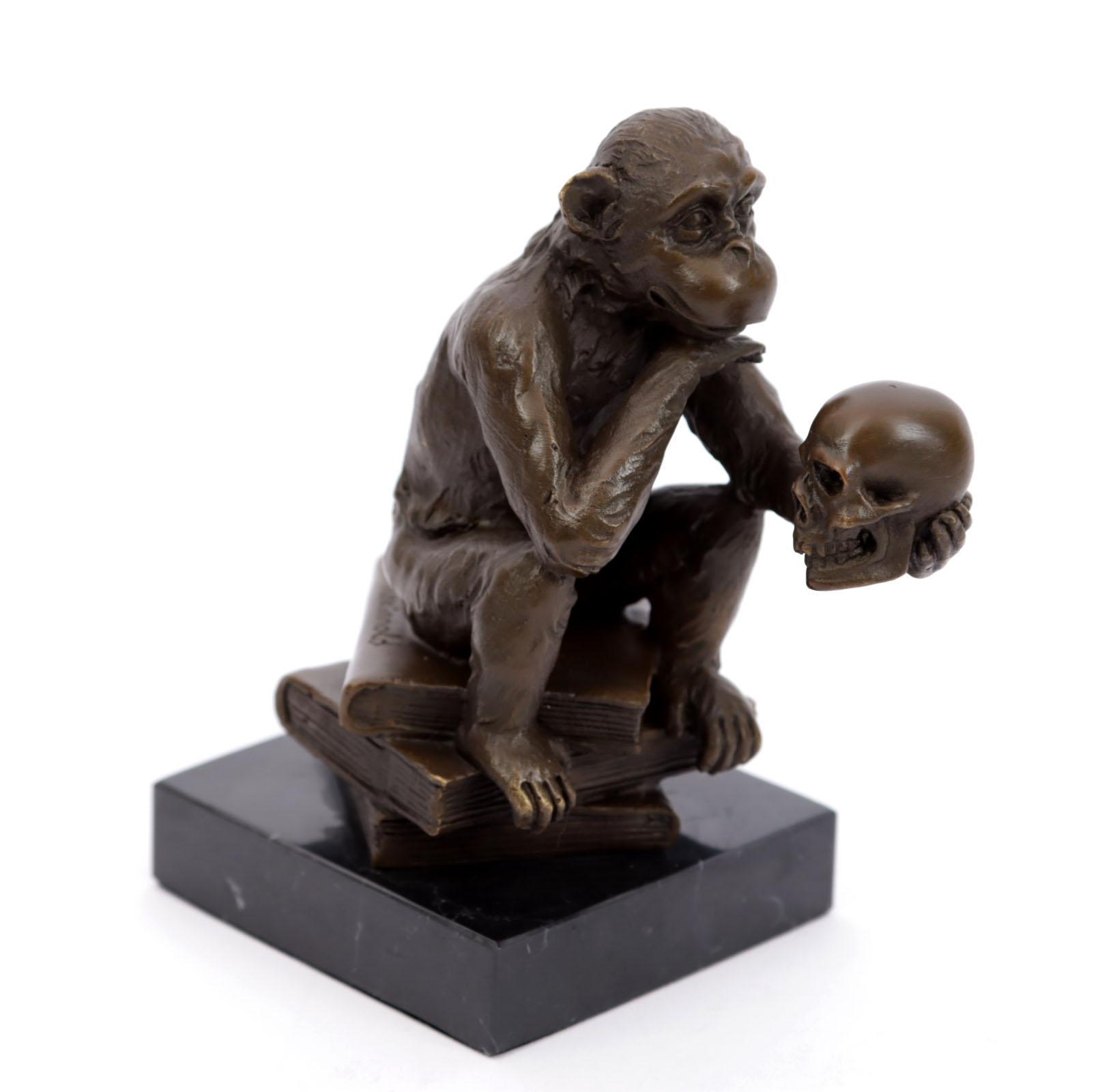 Bronzen beeld rustend op marmeren sokkel, The wise monkey, h.15 cm.