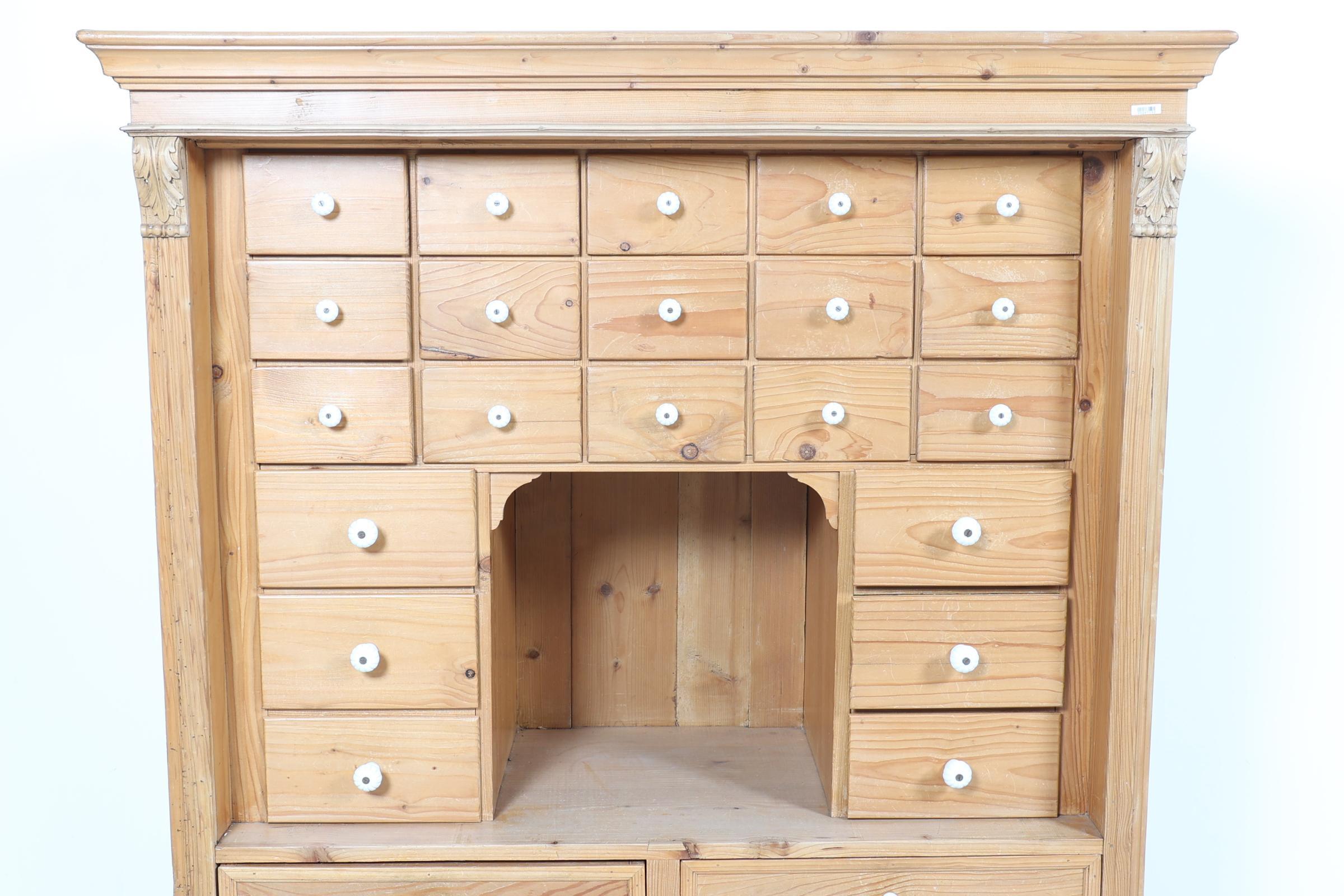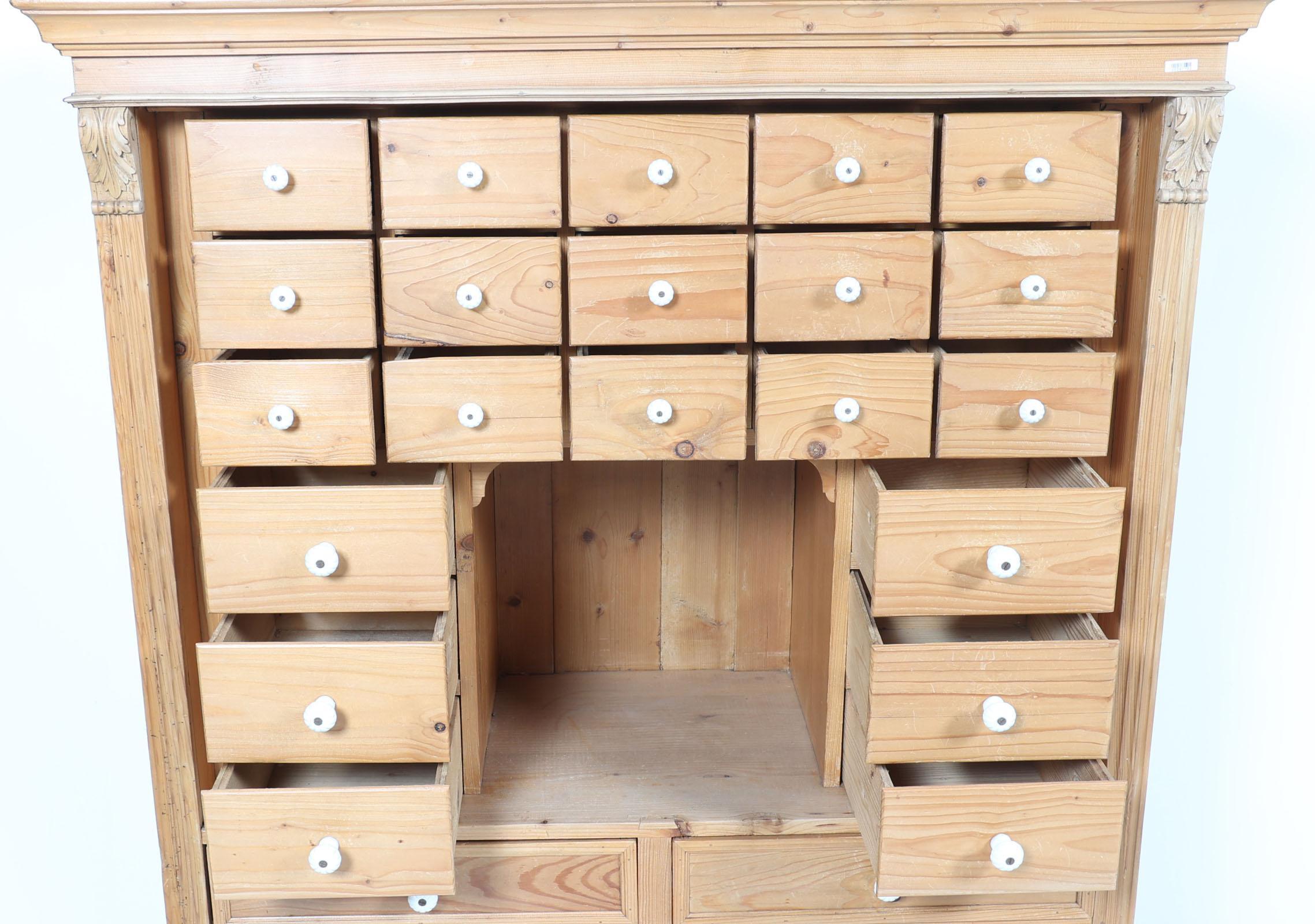 Grenenhouten apothekerskast, h.170 x b.123 x d.50 cm.