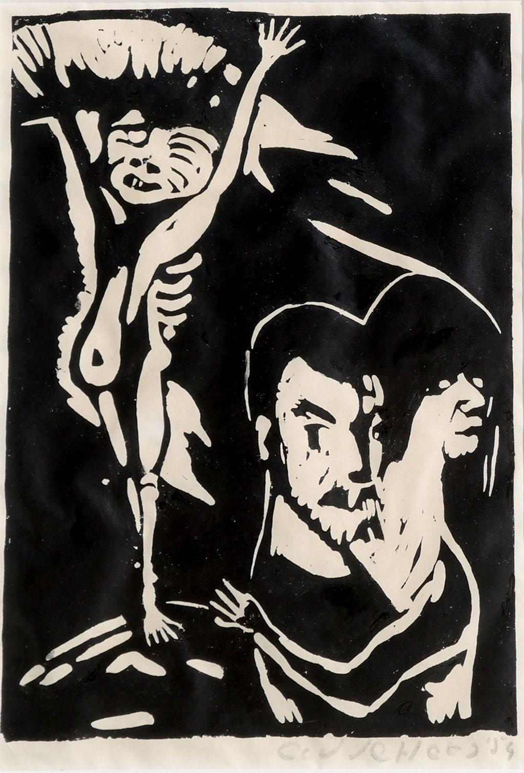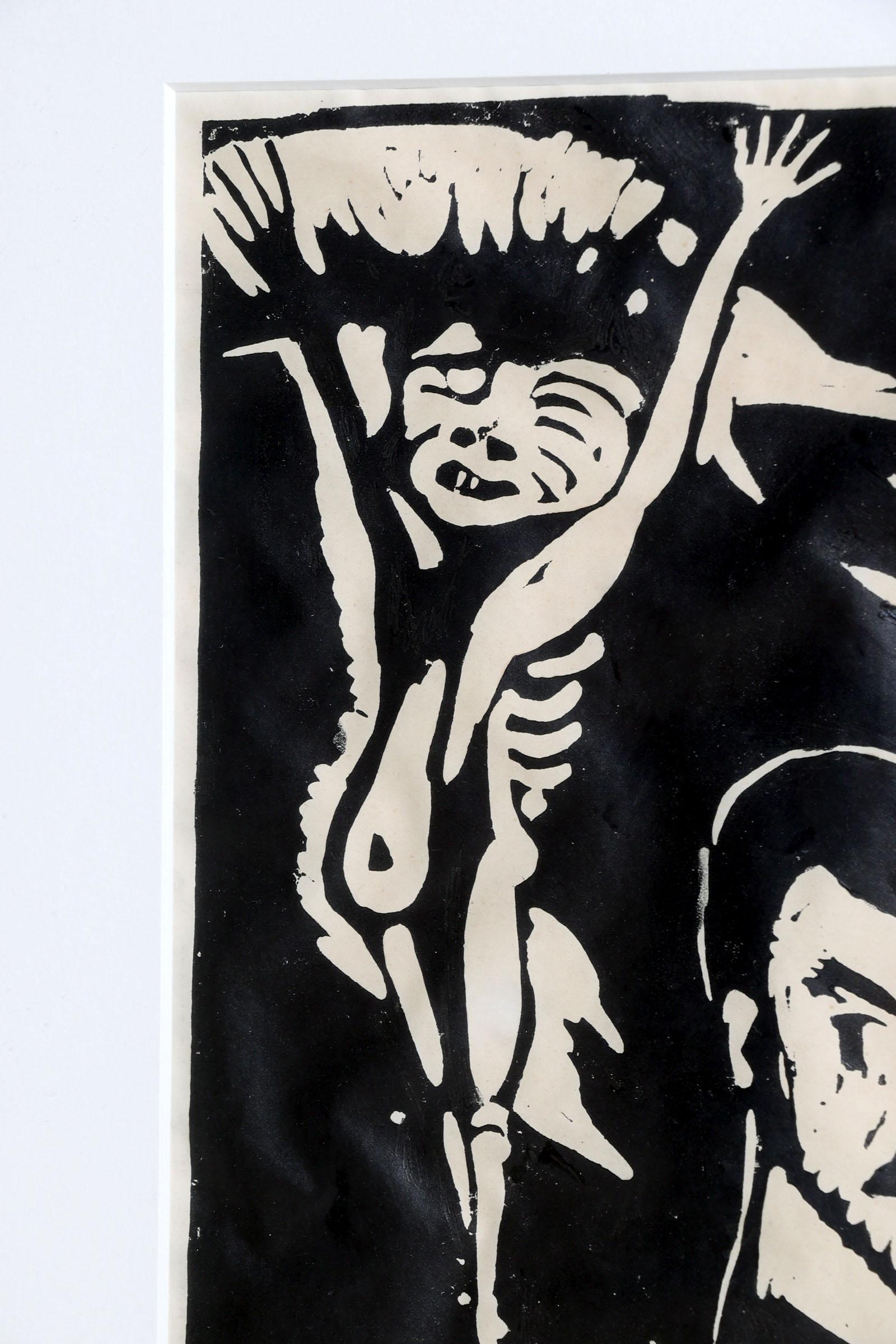 C. van der Hoes, Personen, houtsnede, 29 x 21 cm., gadeteerd 1954