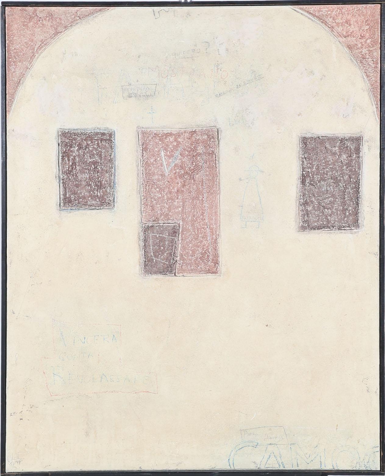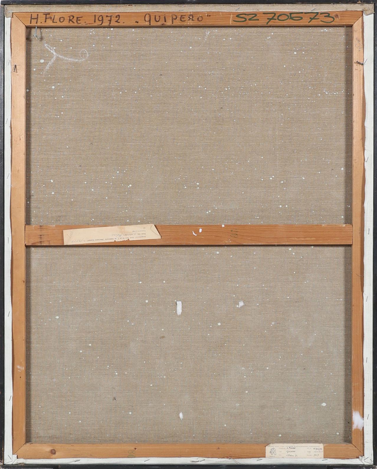 Hendrik Flore (1933), Quipero, gemengde techniek op doek, gedateerd op achterzijde Amsterdam 1972, provenance particuliere collectie/aangekocht door Dienst voor 's Rijks Verspreide Kunstvoorwerpen, 's-Gravenhage, 100 x 80 cm.