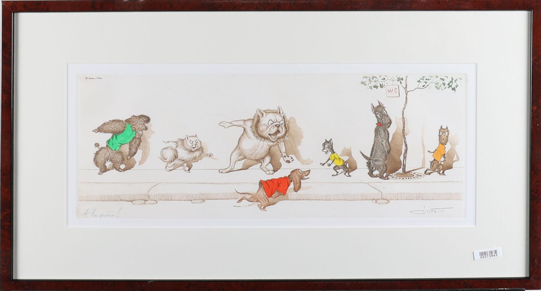O Klein, Plassende hondjes, kleurets, 47 x 18 cm.