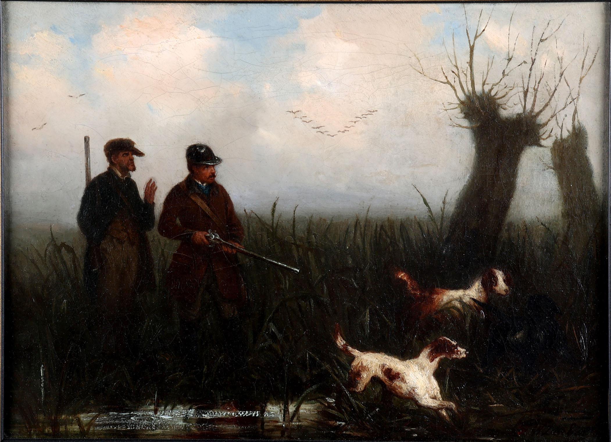 F.W. Zucher, Jachtvoorstelling, 40 x 30 cm.