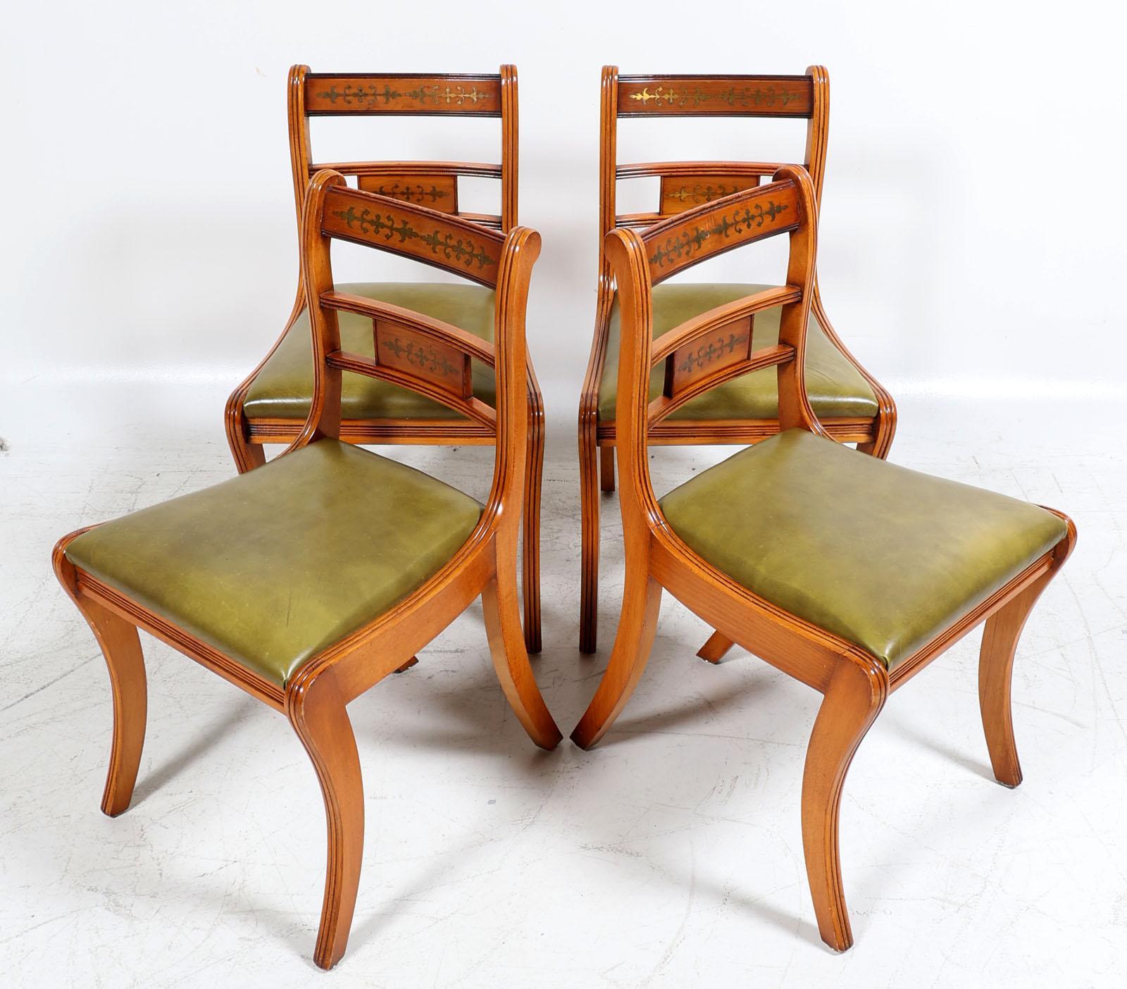Kersenhouten eetkamertafel met tussenblad en 4 bijpassende stoelen, h.76 x diam.109 cm.
