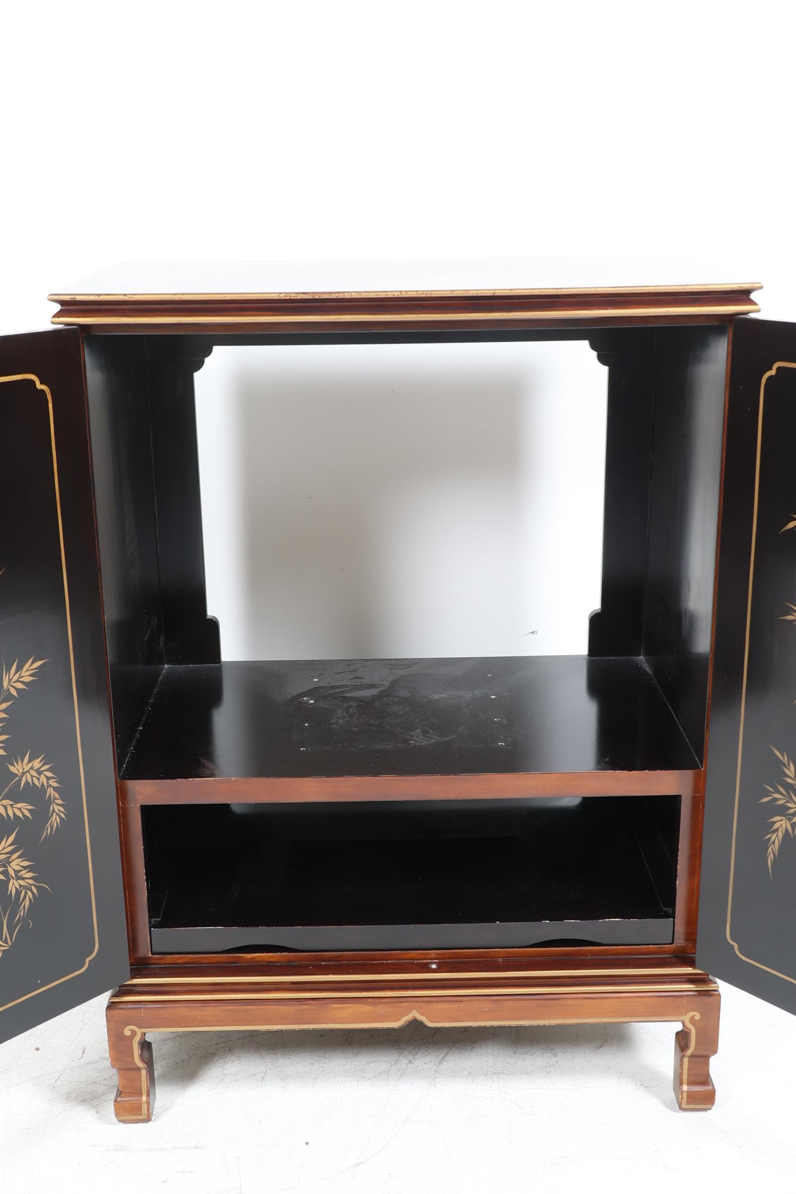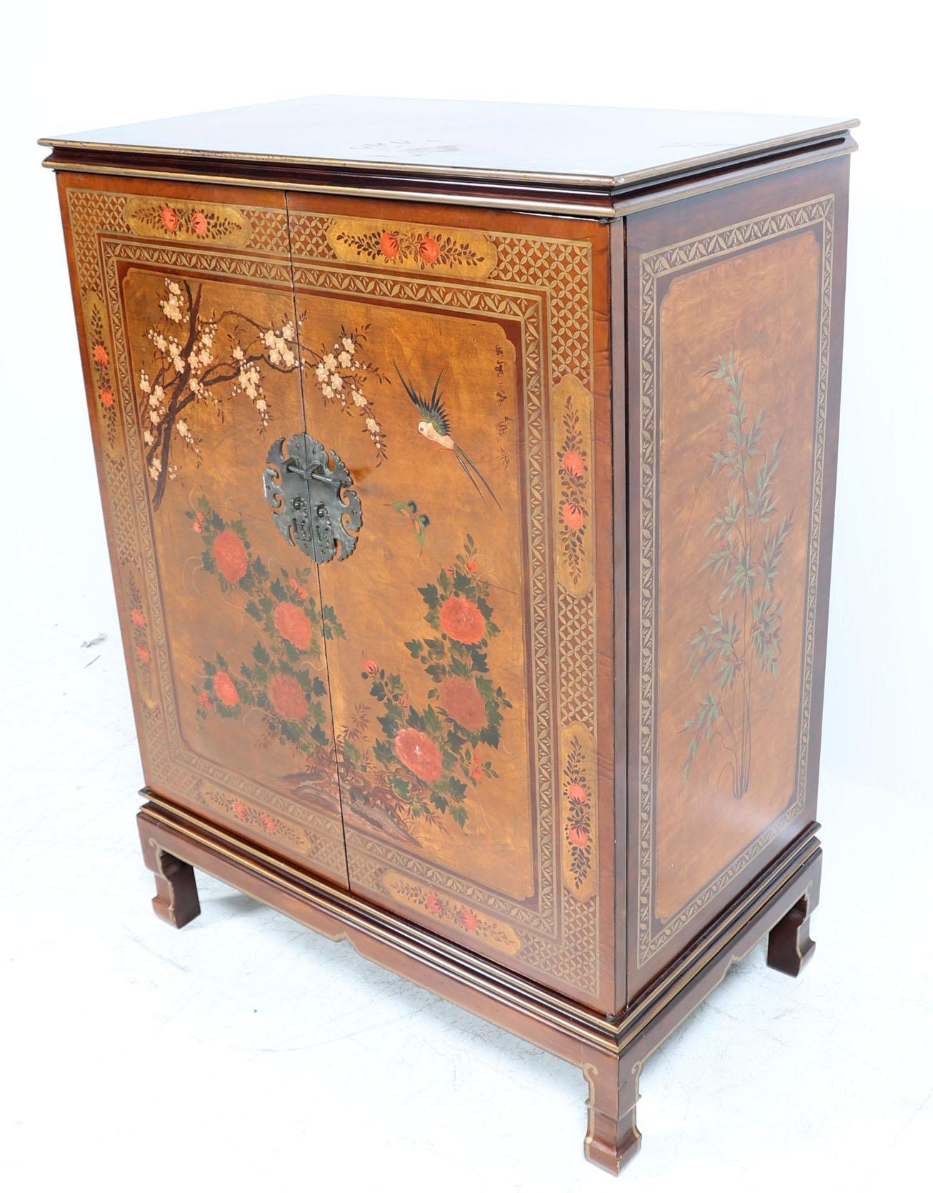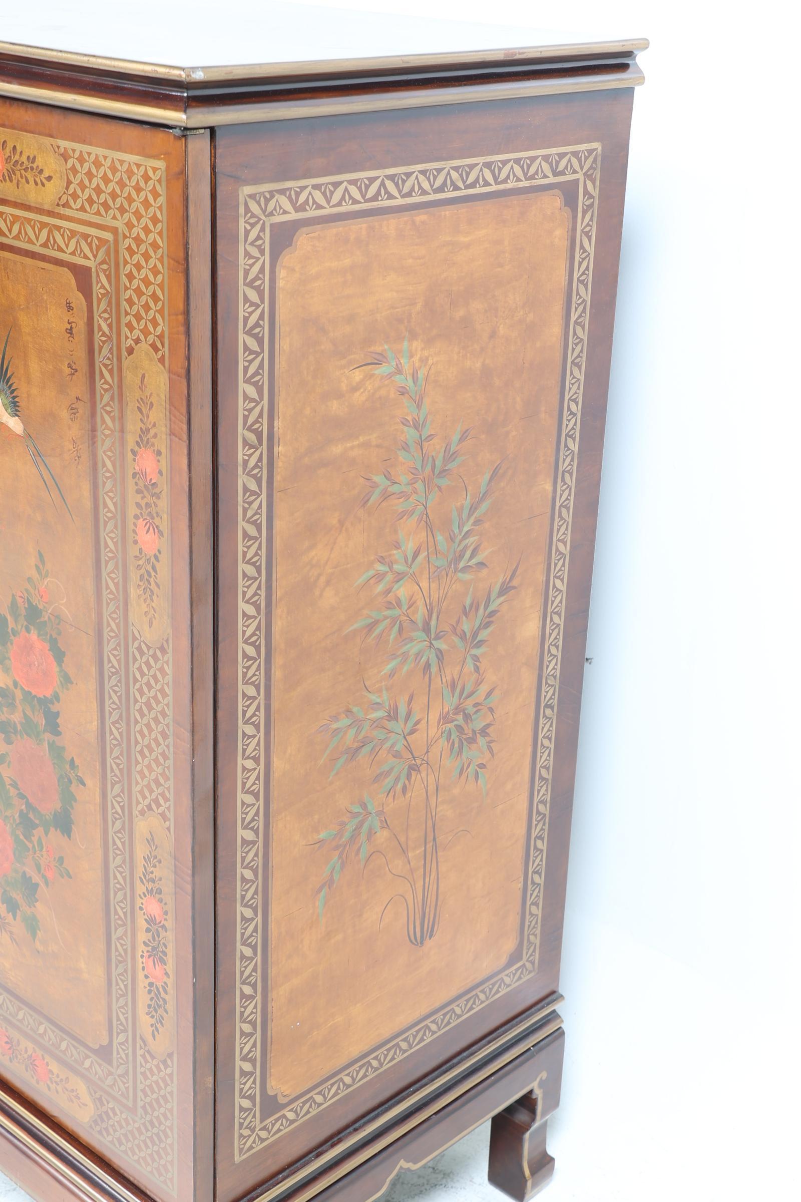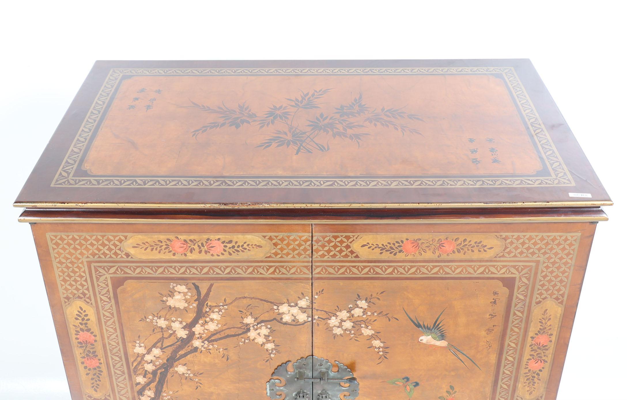 Chinese televisiekast met decor van vogels en bloemen, h.124 x b.90 x d.53 cm.