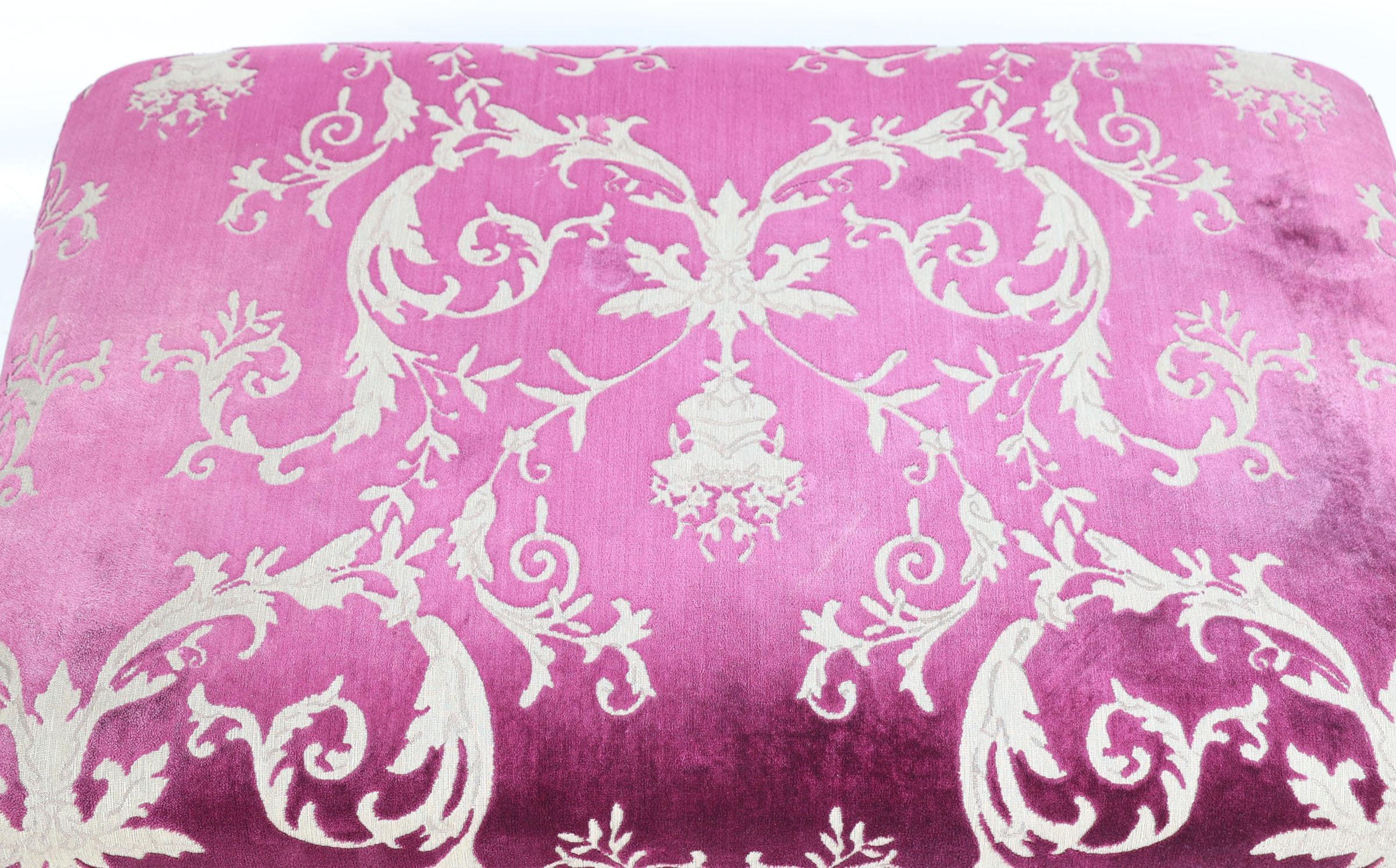 Paars gestoffeerde hocker, h.40 x b.87 x d.60 cm.