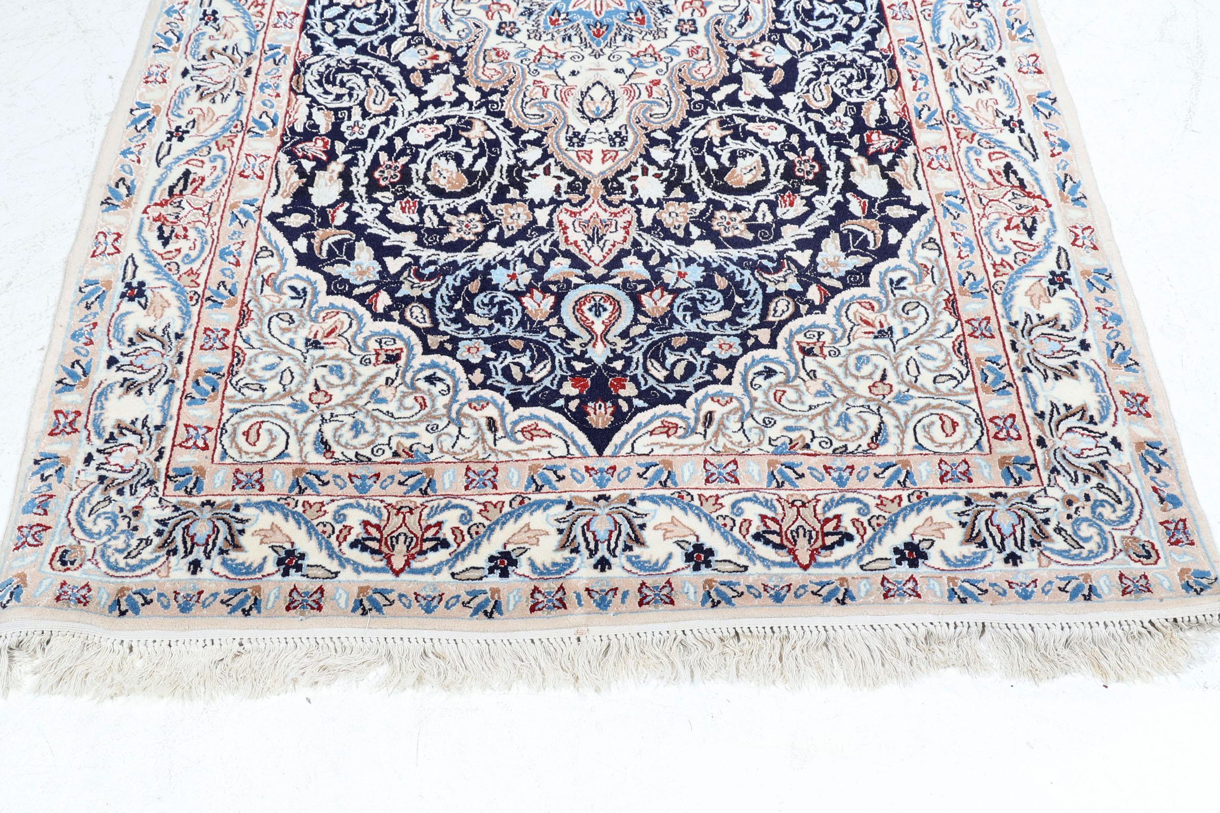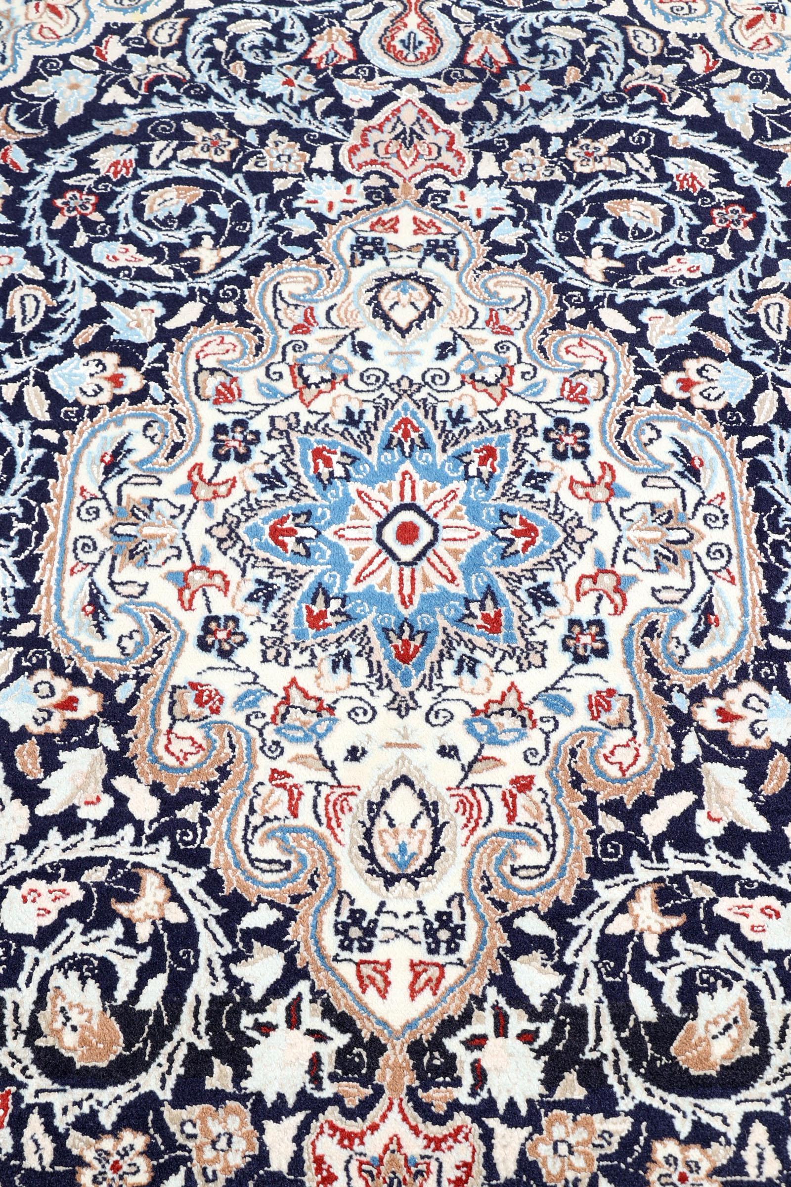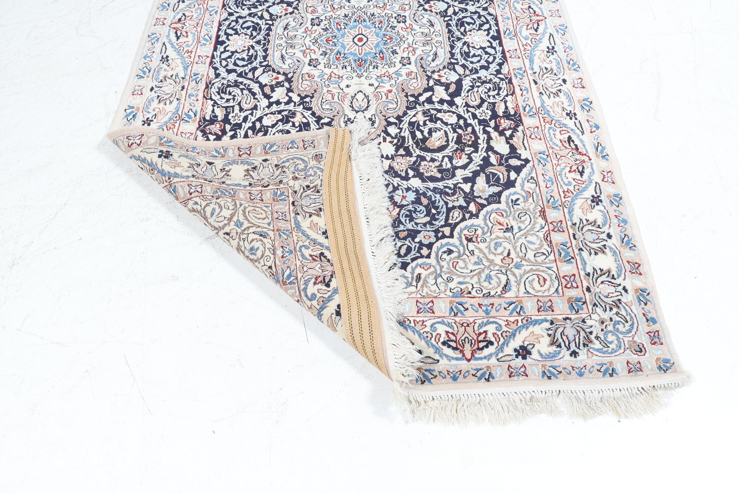 Handgeknoopt Naïn vloerkleed met florale motieven, 204 x 128 cm.