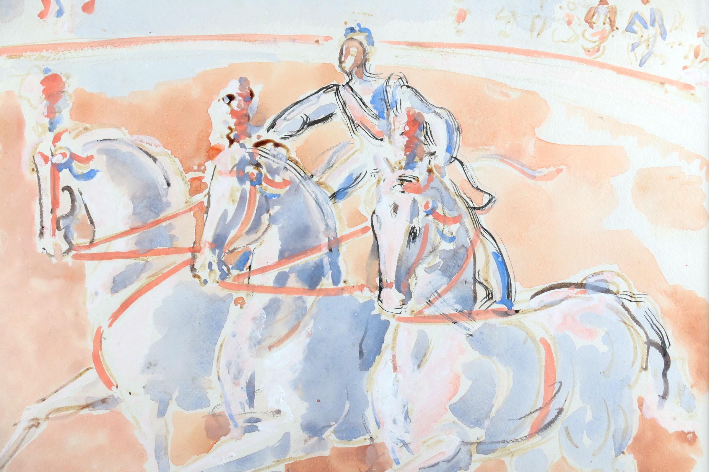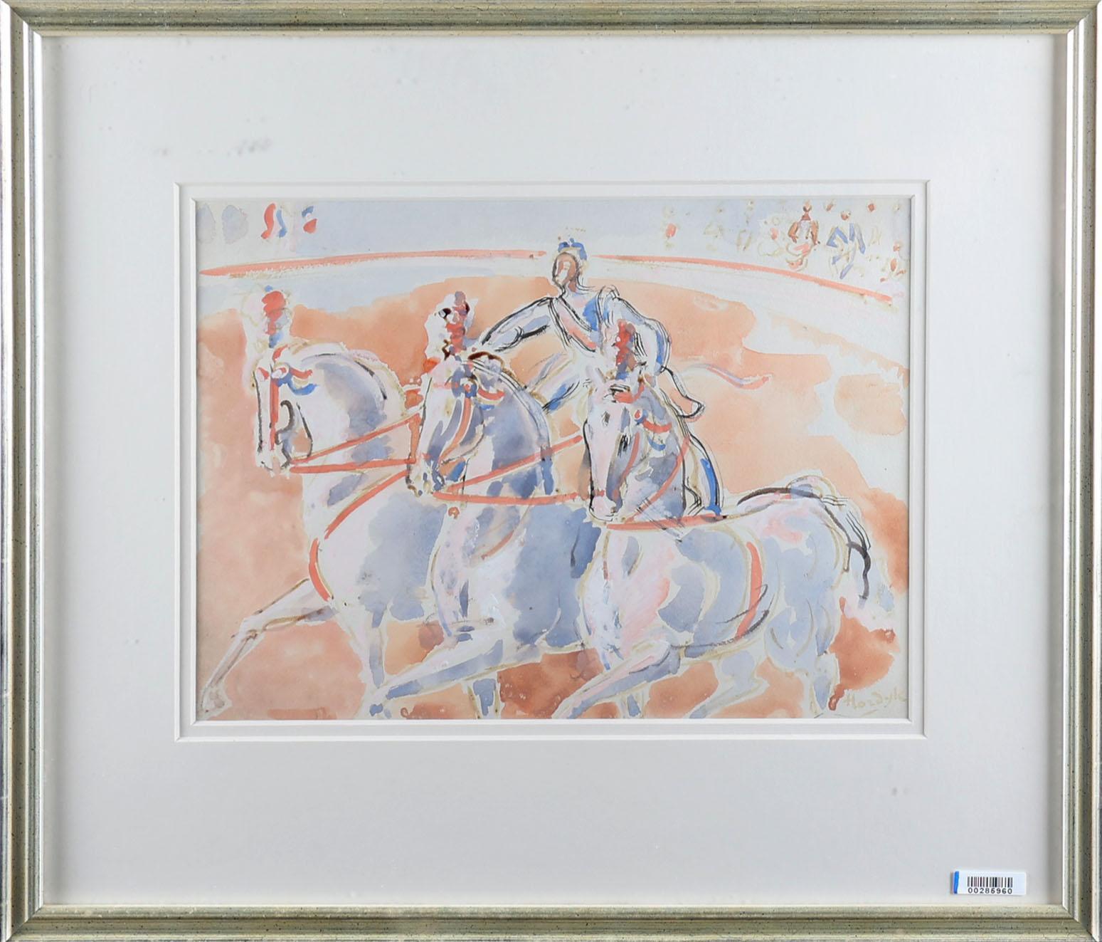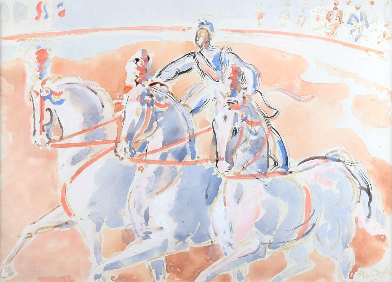 Jan Gerard Hordijk (1899-1958), Paarden in de circus piste, aquarel op papier, 33 x 24 cm. Provenance: particuliere collectie