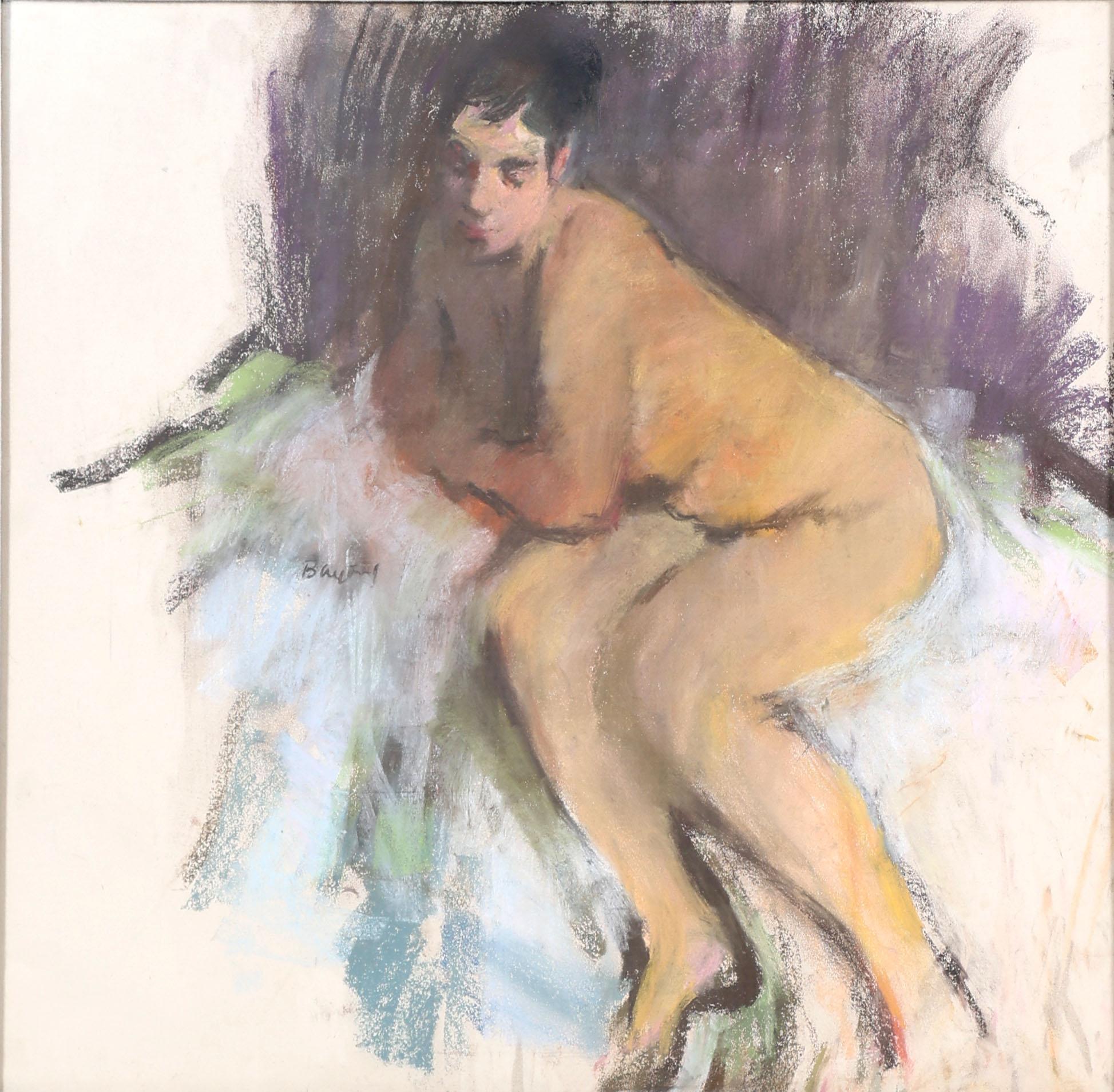 Hans Bayens (1924-2003), Zittend naakt op bed, pasteltekening, 56 x 52 cm. Provenance: particuliere collectie