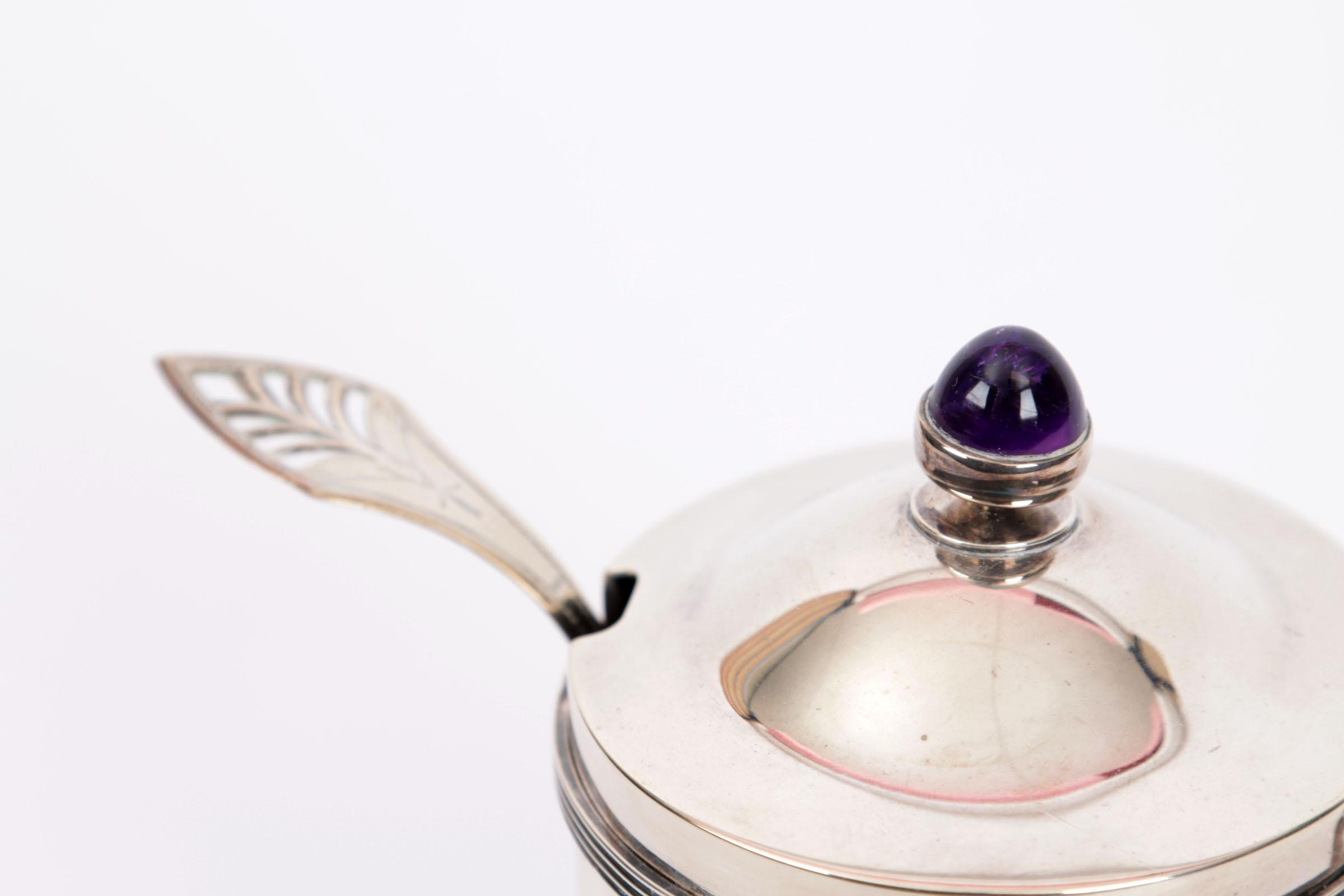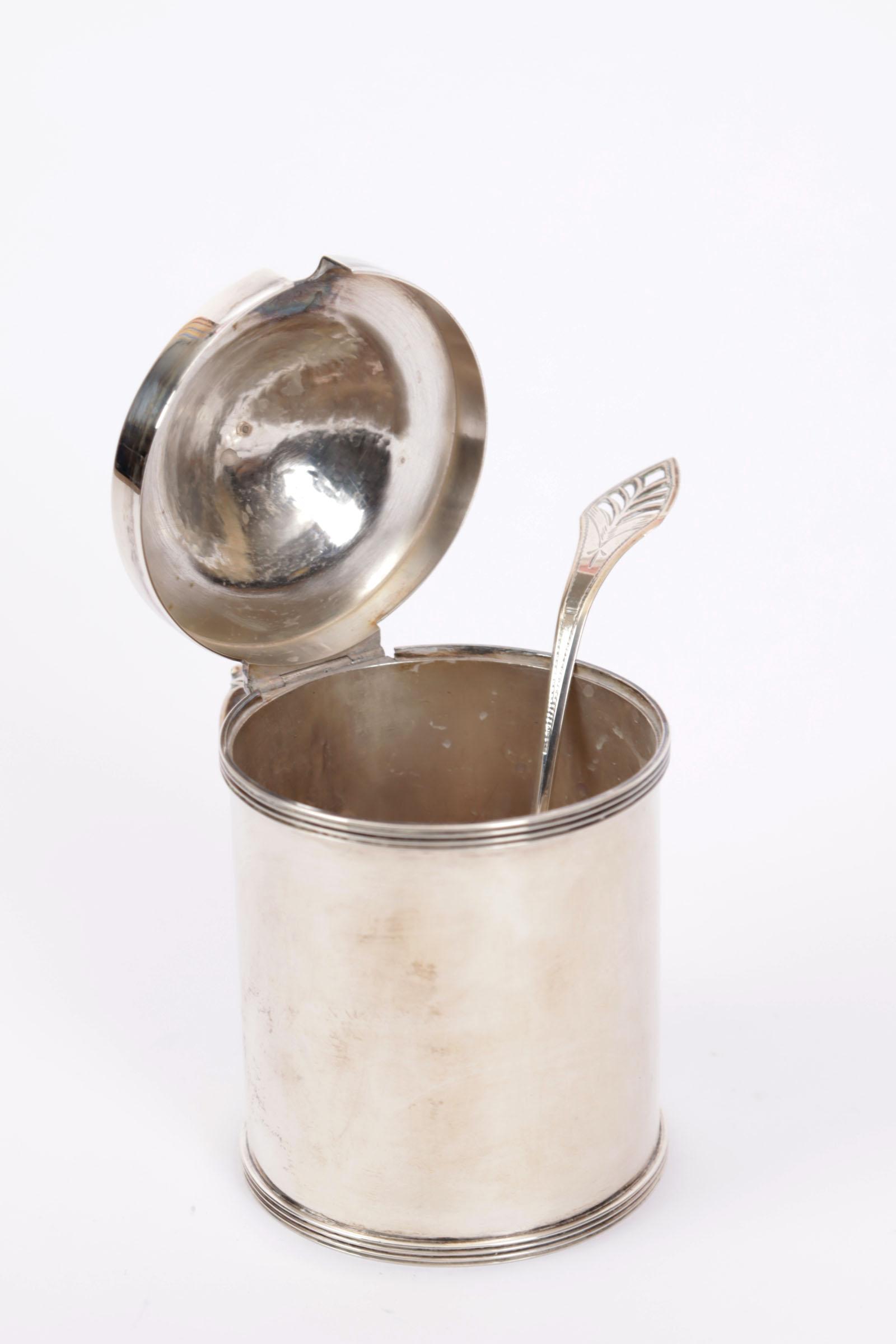 1e Gehalte zilveren jampot met lepel, totaal 323 gram