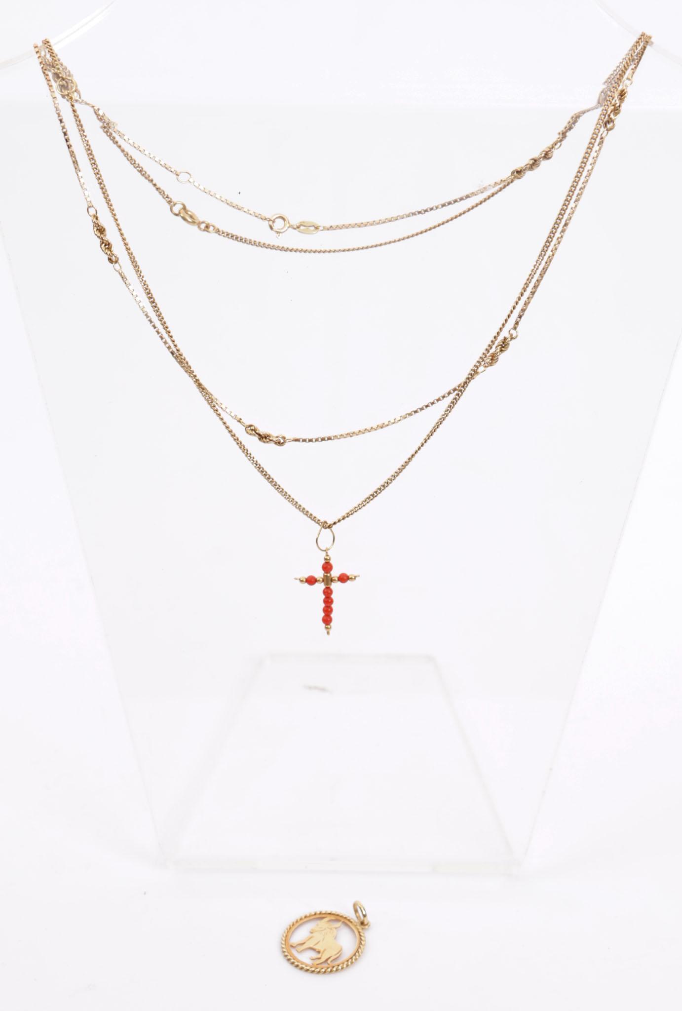 Twee 14 kt. gouden colliers en 14 kt. gouden sterrenbeeldhanger "stier", 10,7 gram