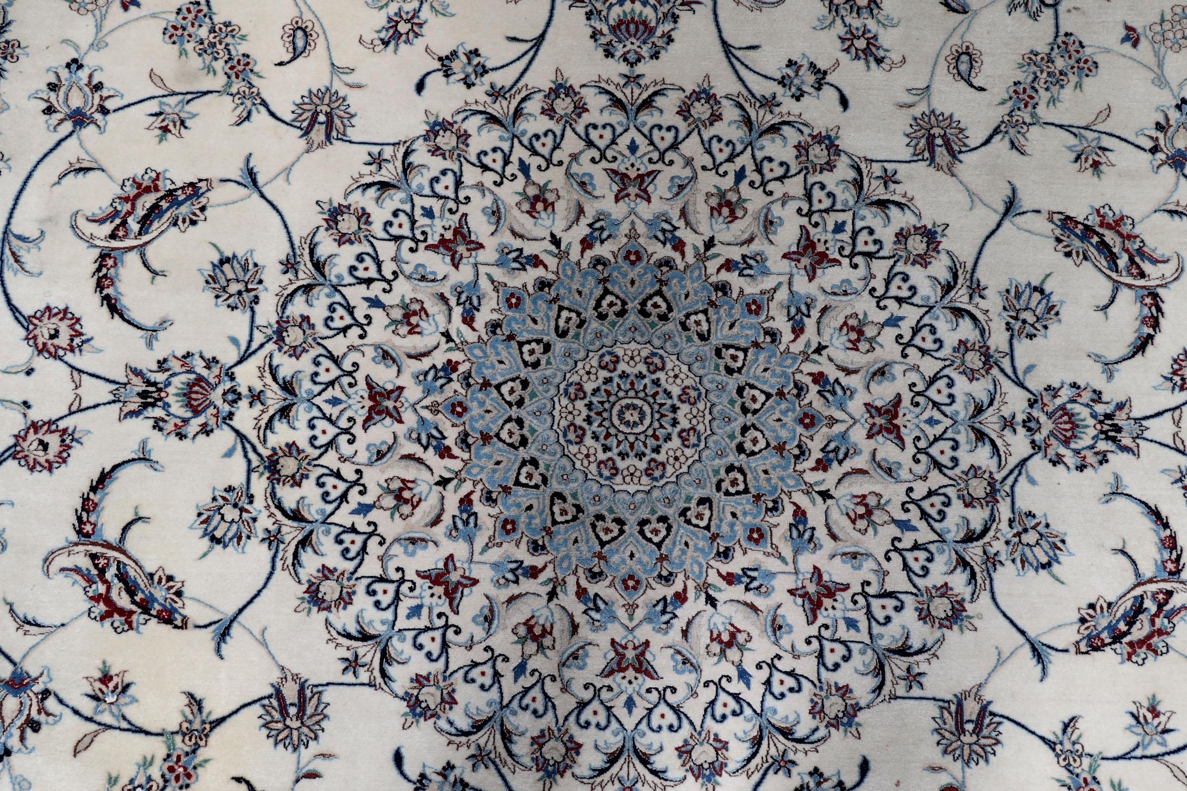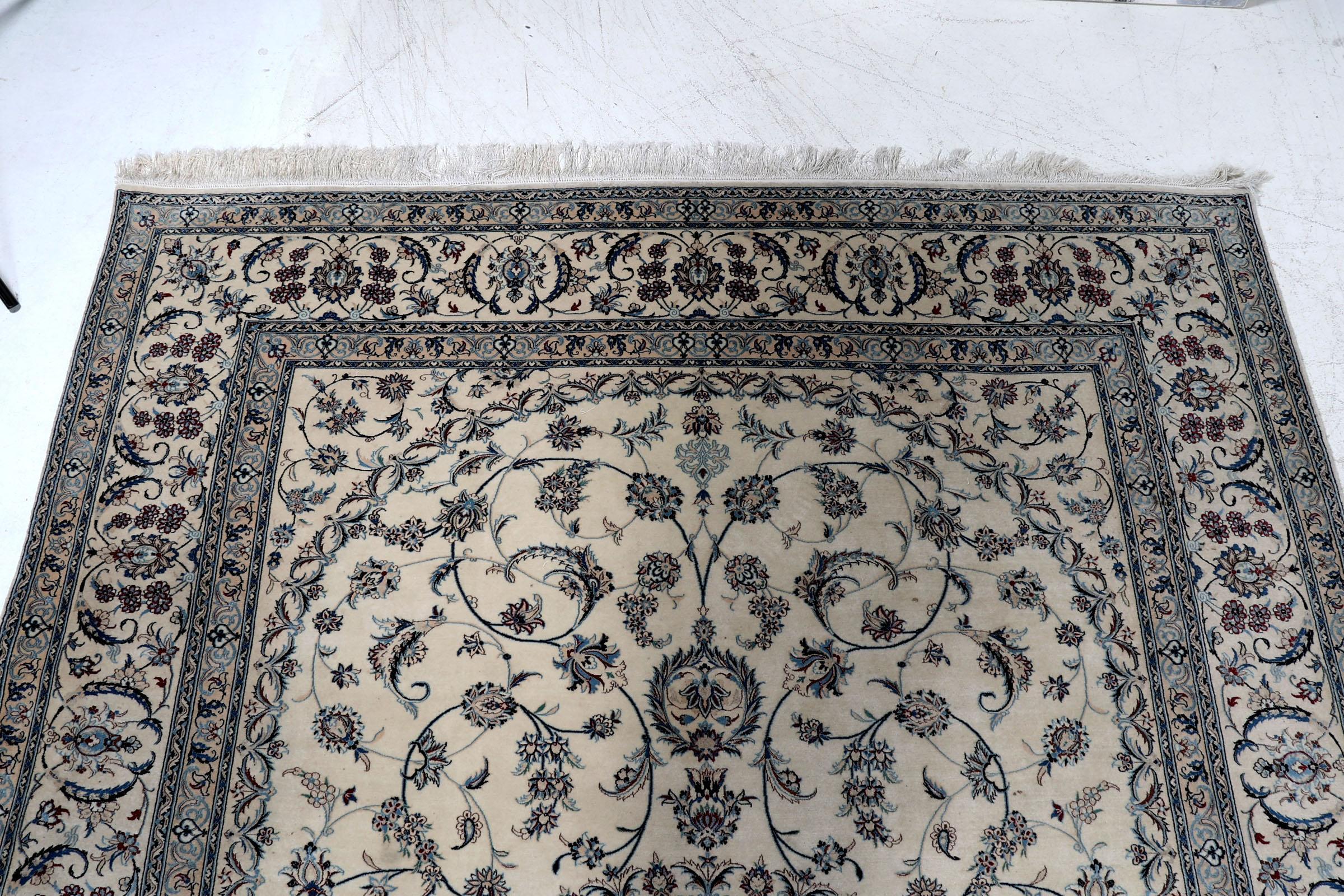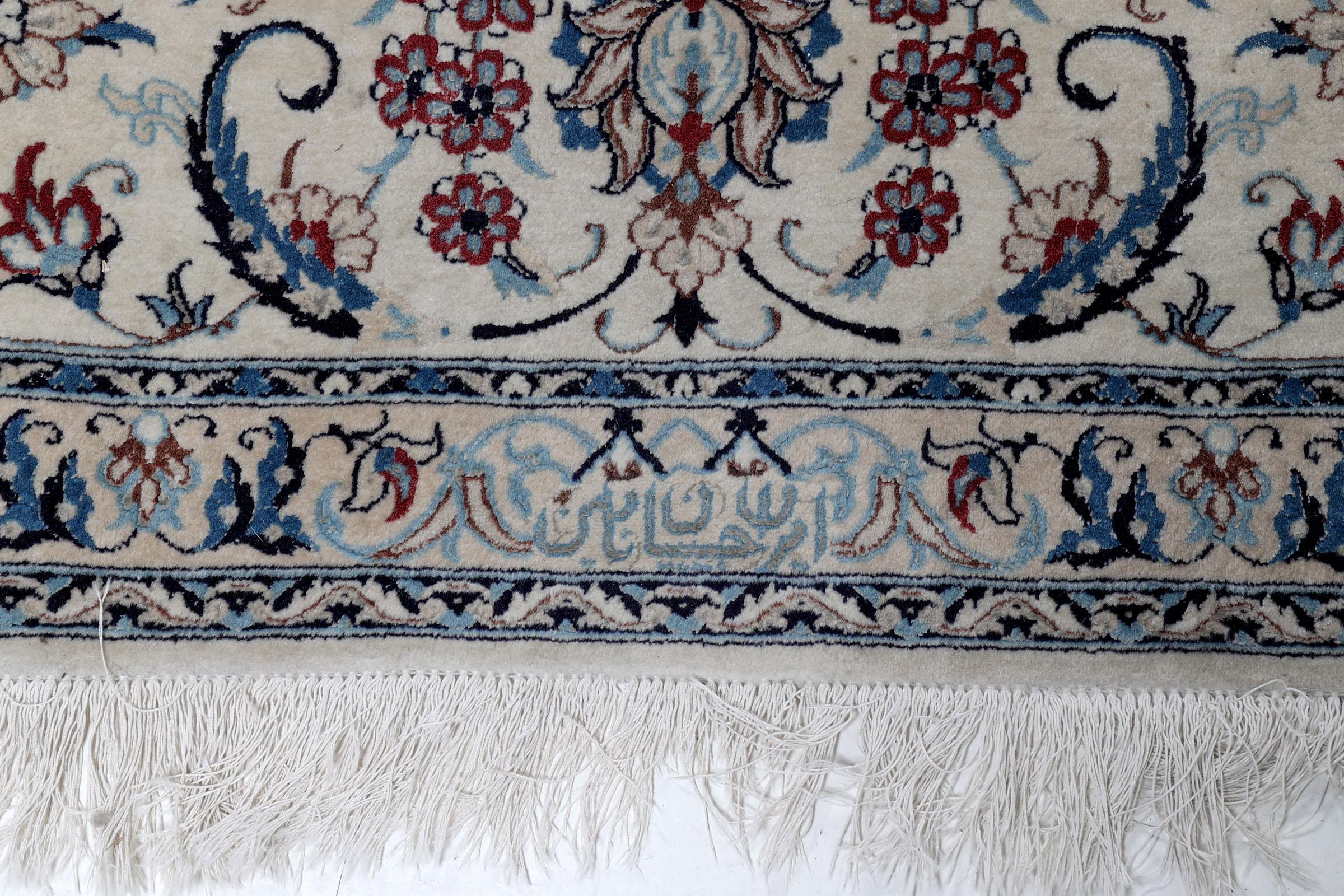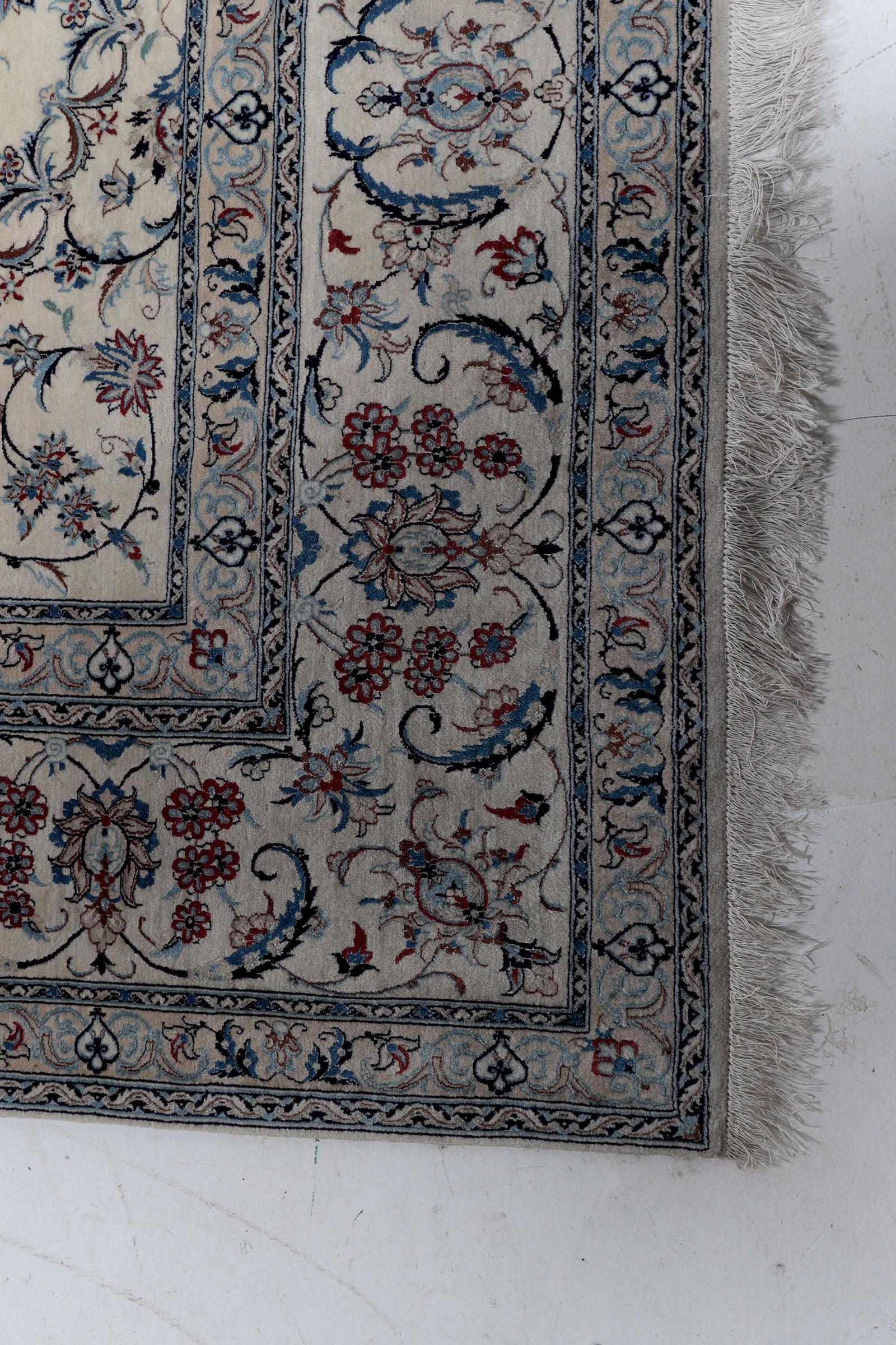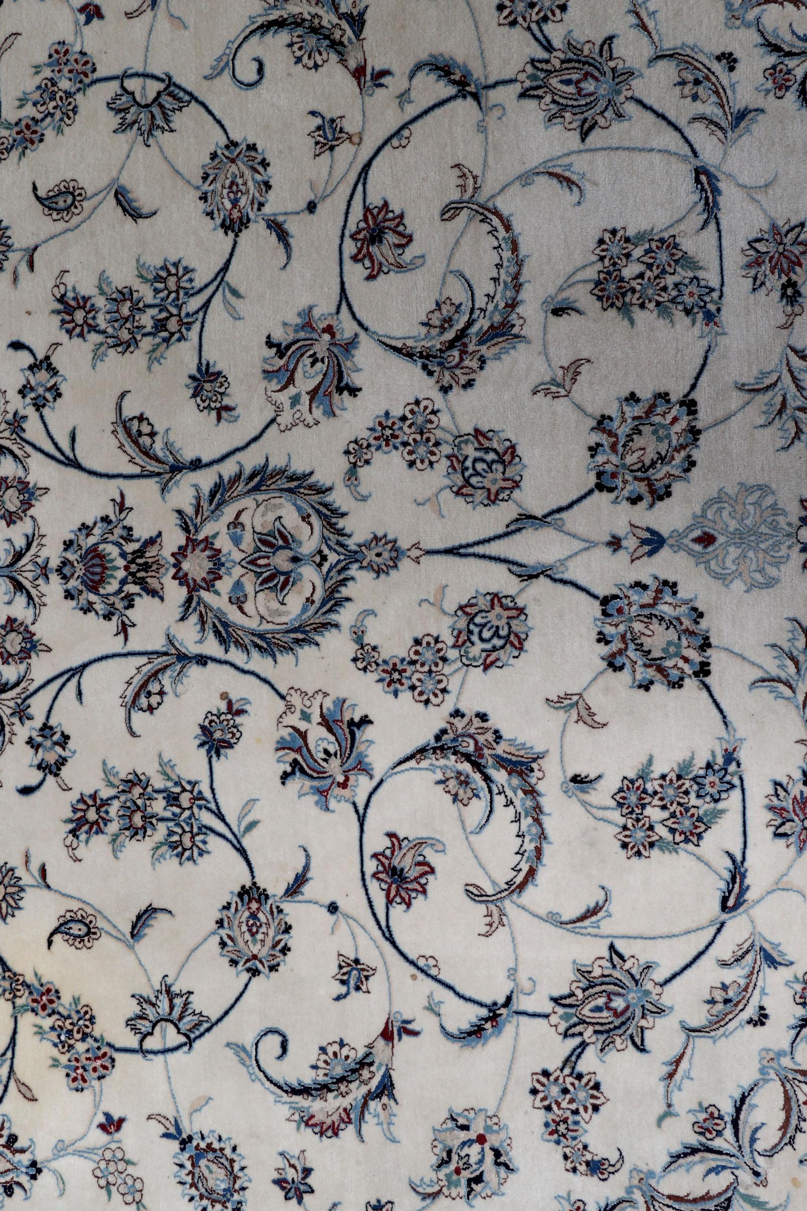 Handgeknoopt Naïn vloerkleed met florale motieven, 311 x 220 cm.