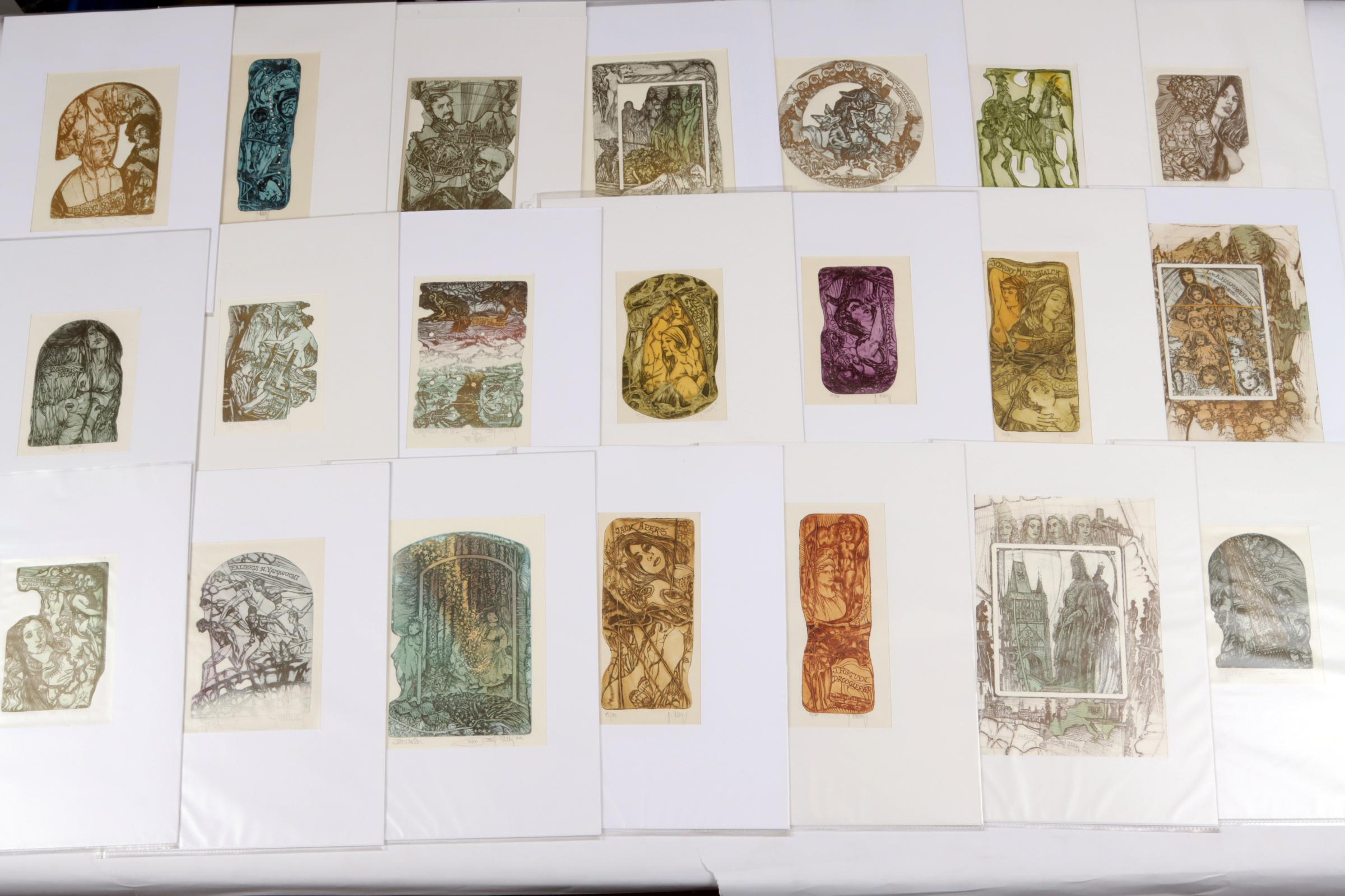 Hlavaty, P., plm. 40 exlibris, C3, gesigneerd, in passe-partouts. Voor o.a. Nuyten, De Belder, Kirch, Tothpal, Sigales, Hausweiler, Maesschalk, Tratsaert