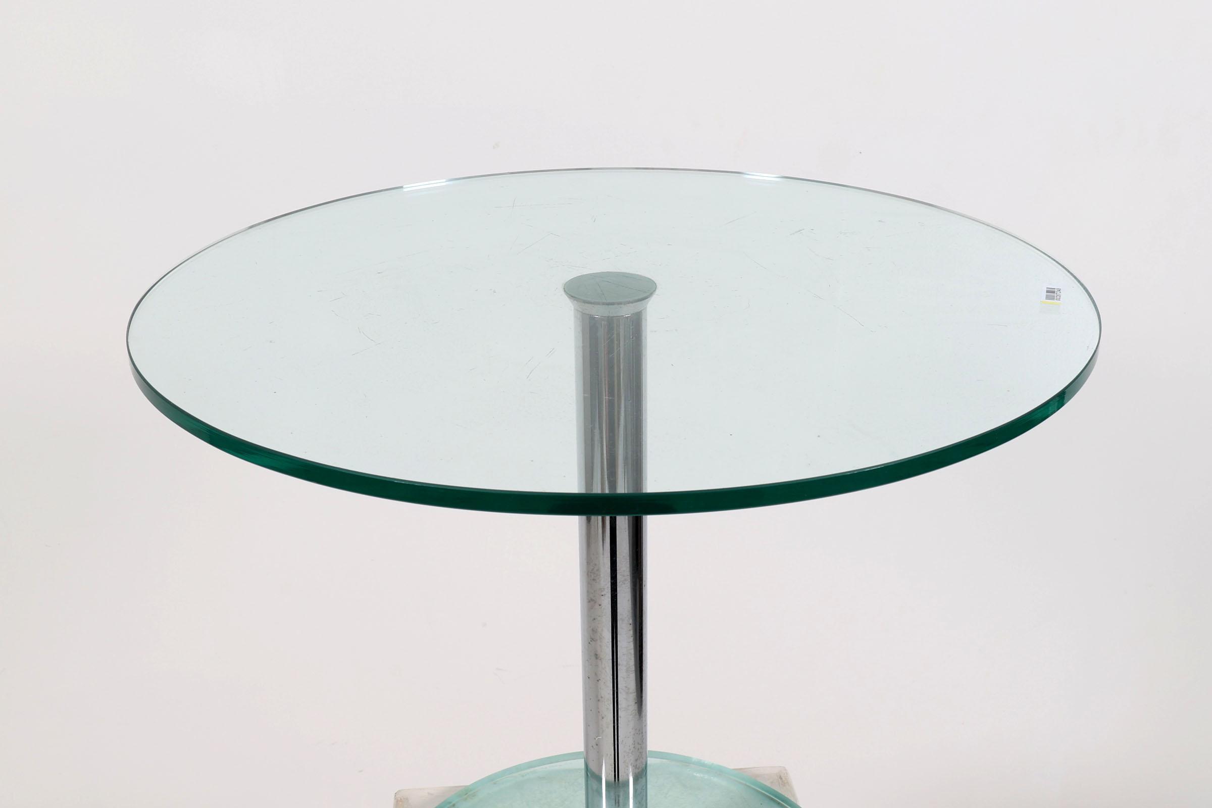 Moderne glazen bijzettafel, h.45 x diam.50 cm.
