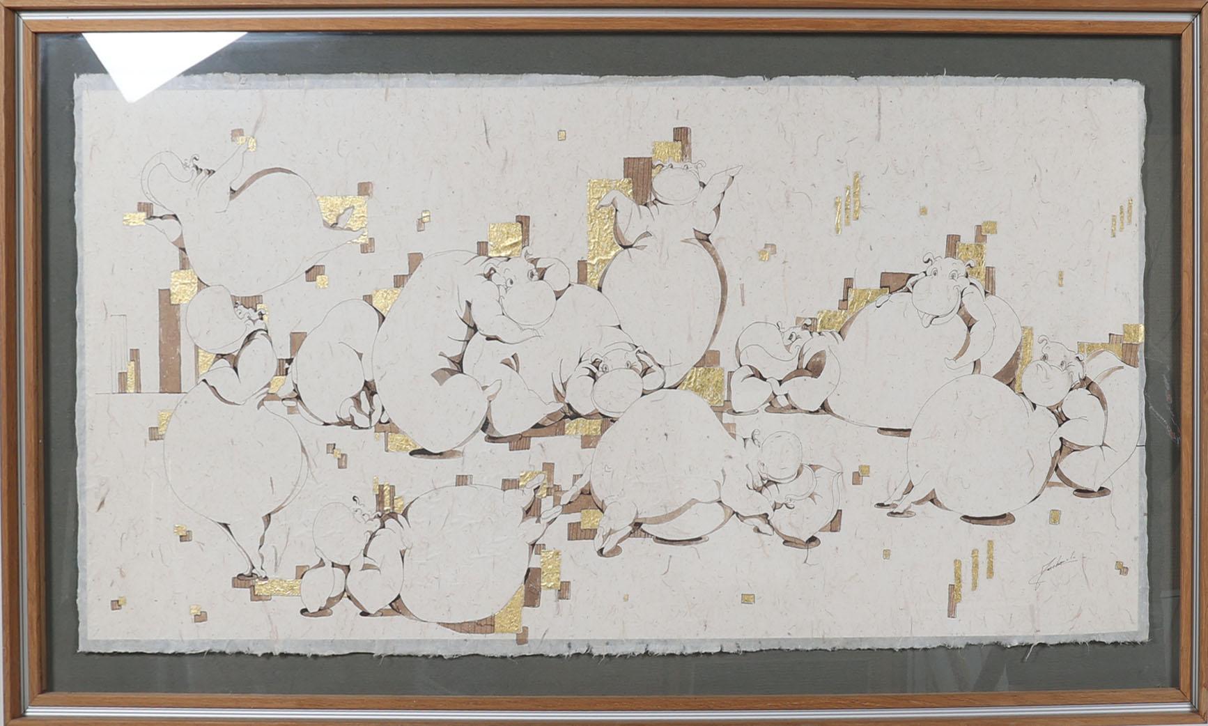 Cécile Marchand (1970), "La Luxure", gemengde techniek, 63 x 142 cm.