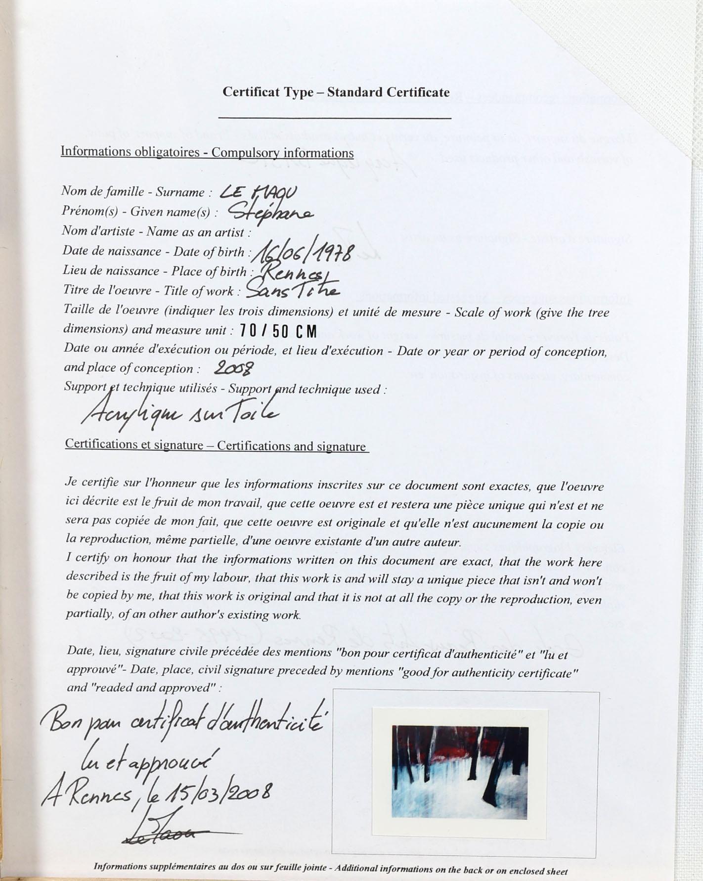 Stéphane le Maou, Boslandschap, acryl op doek, 50 x 70 cm. (incl. certificaat)