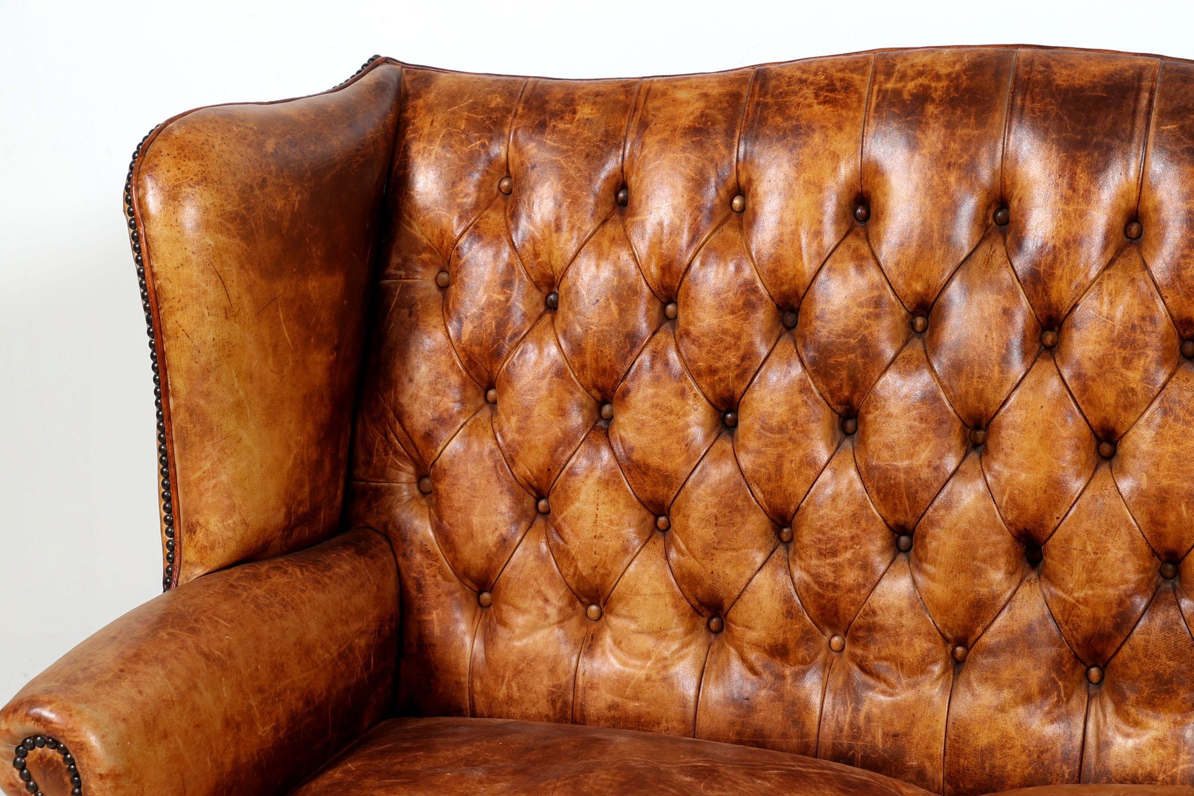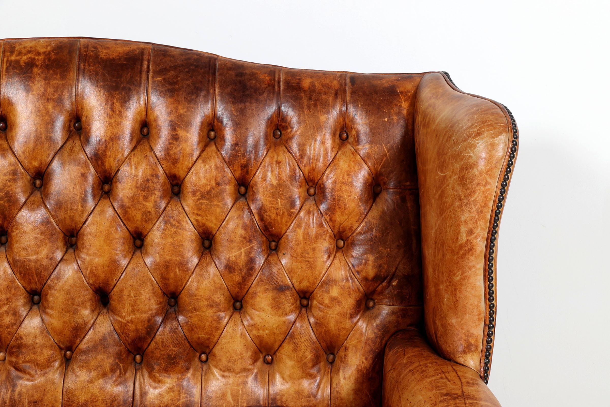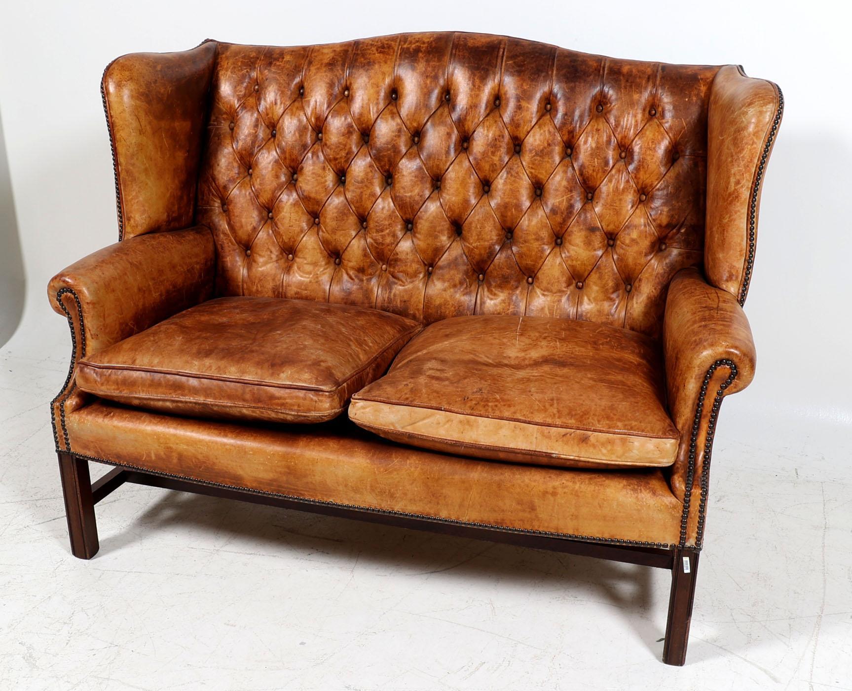 Met bruin leder bekleed Chesterfield bank
