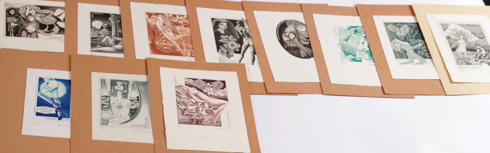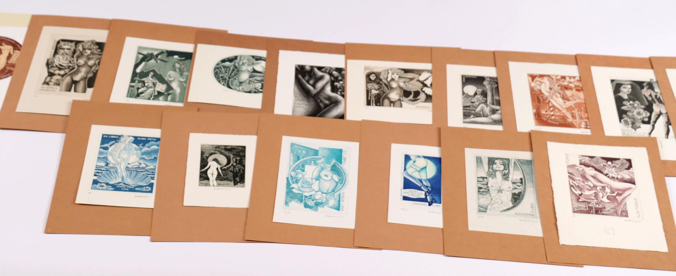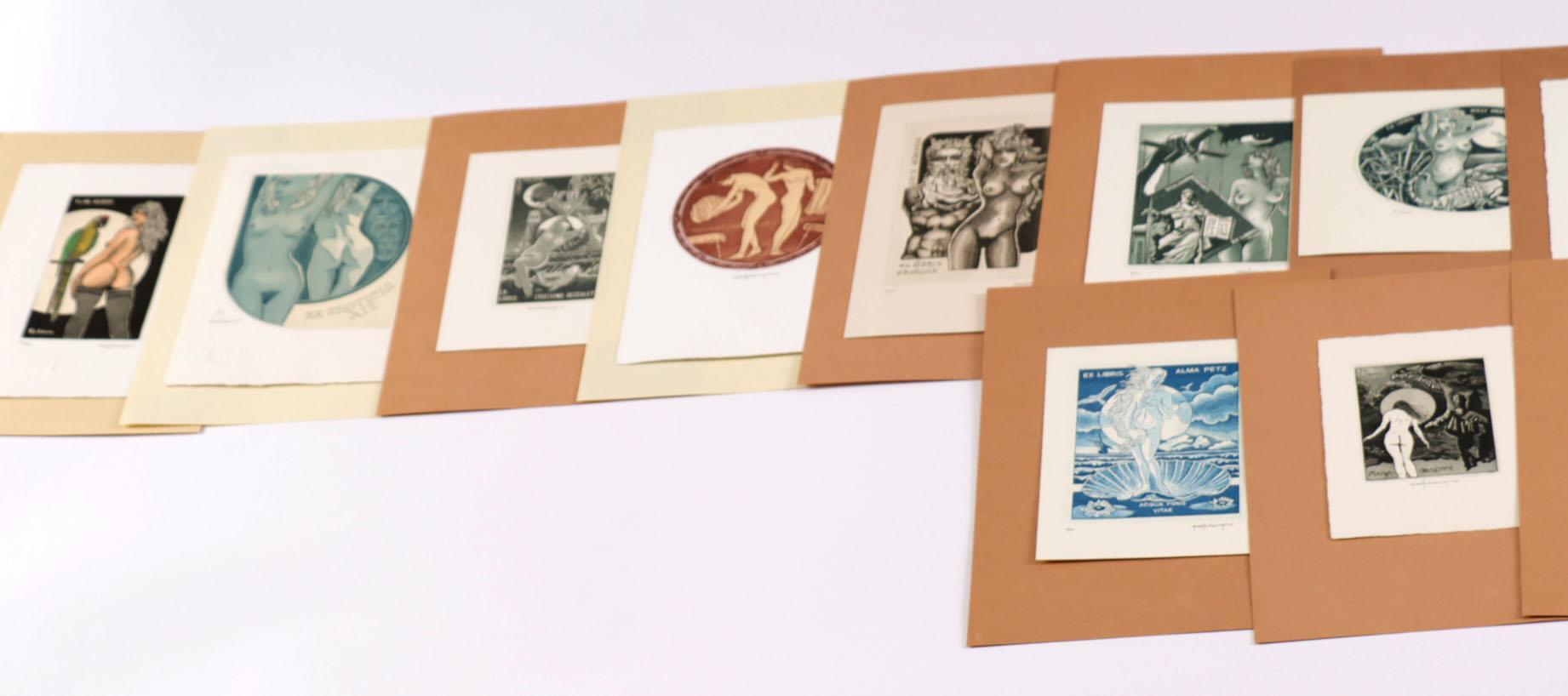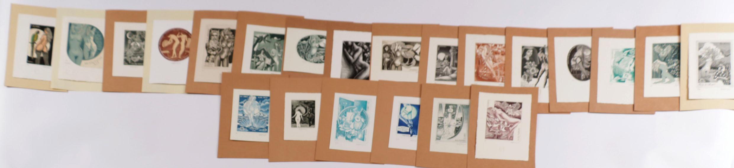 Rovegno, P., (Italië). Plm. 25 exlibris, diepdruk (C3C5). Alle gesigneerd, opgeplakt. Thema: naakt / erotiek.
