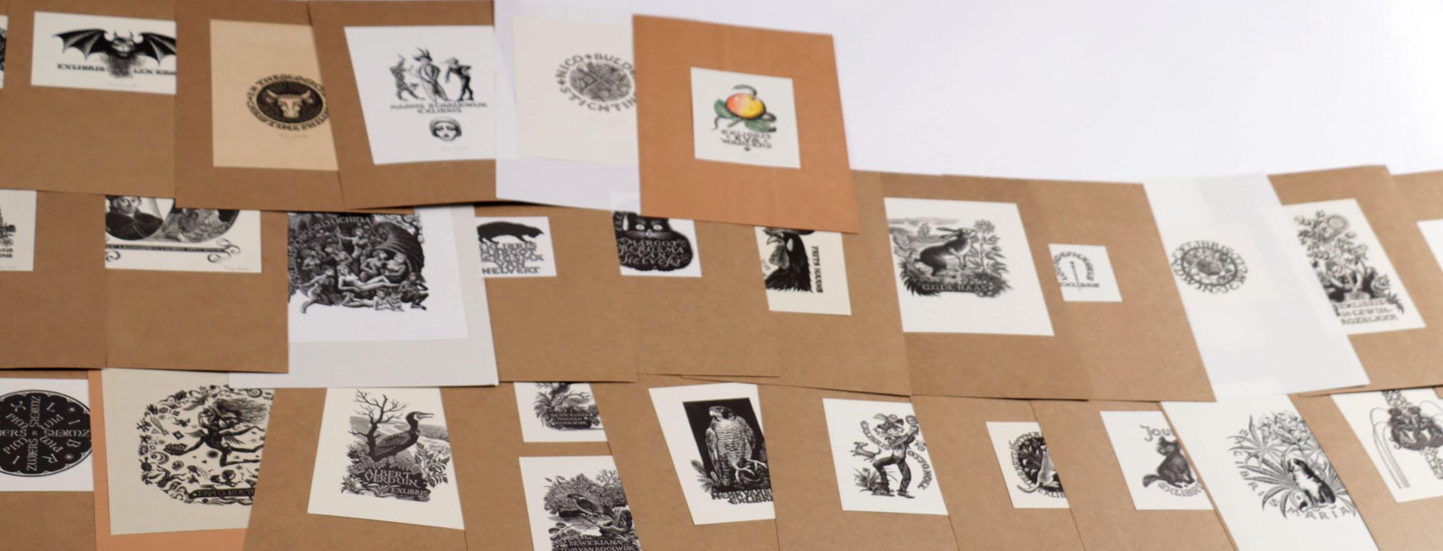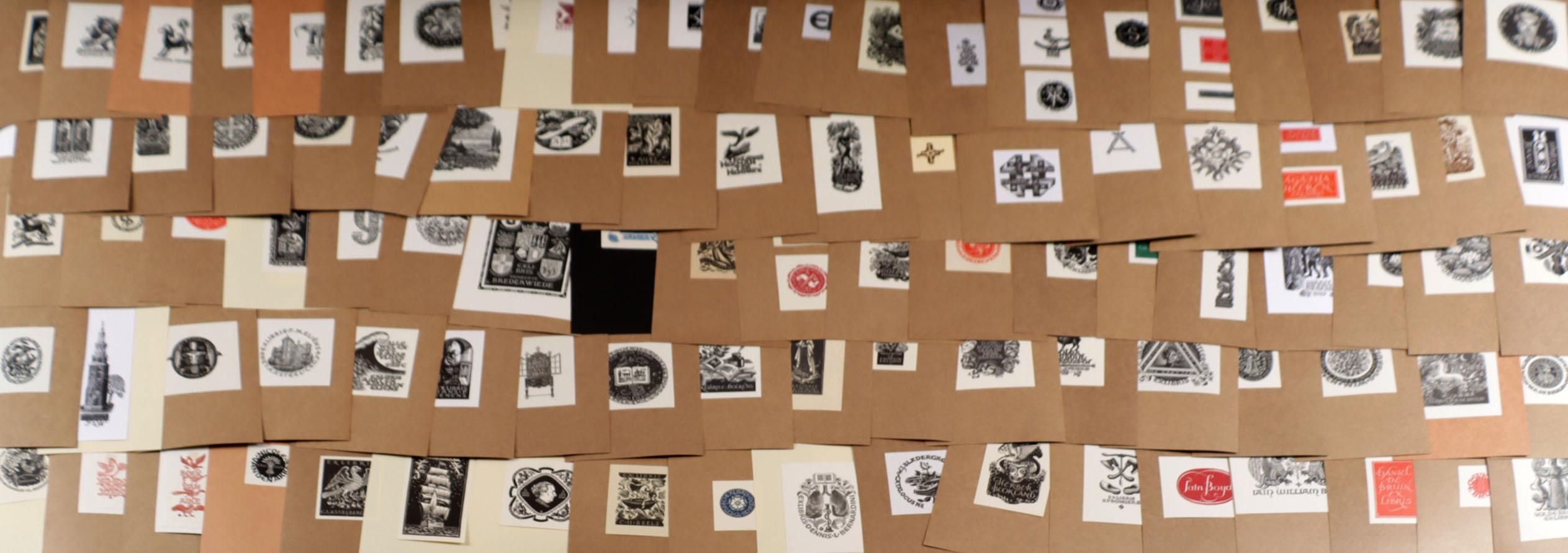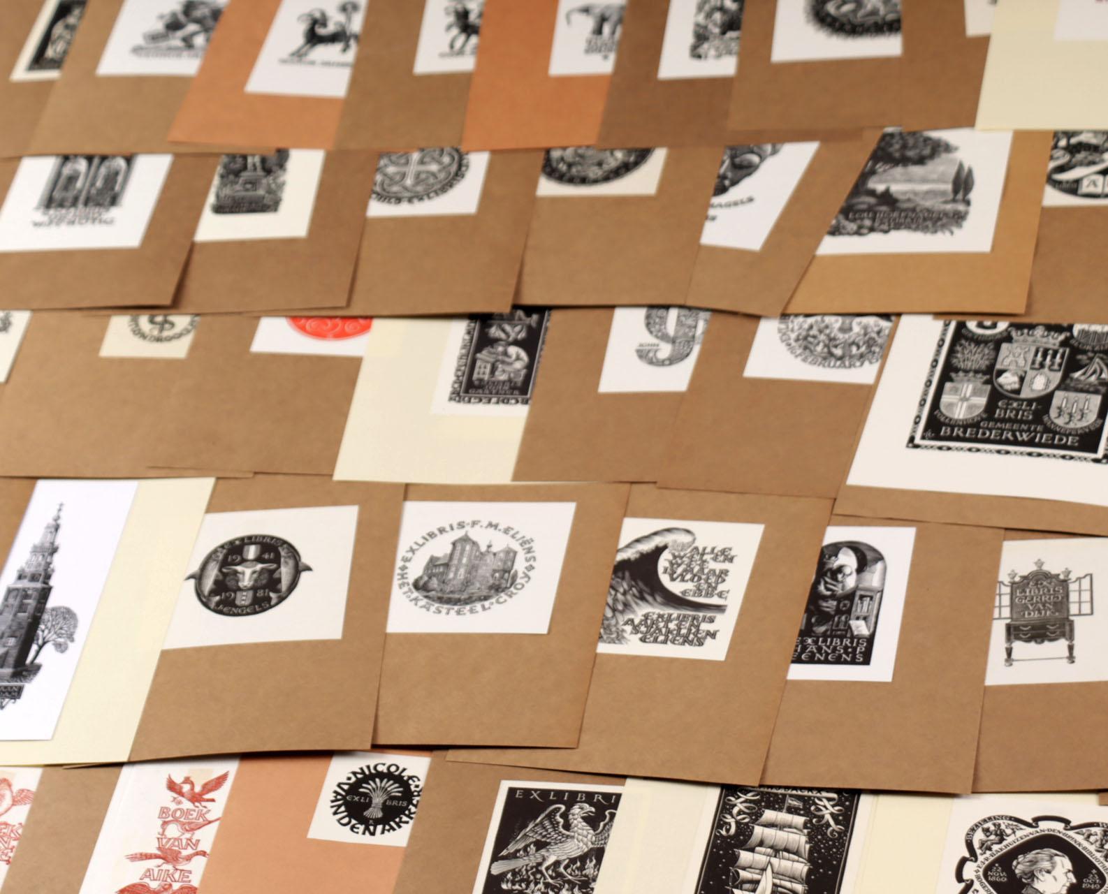 Rueter, Pam (NL), plm. 250 exlibris, X2, enkele gesigneerd, opgeplakt.
