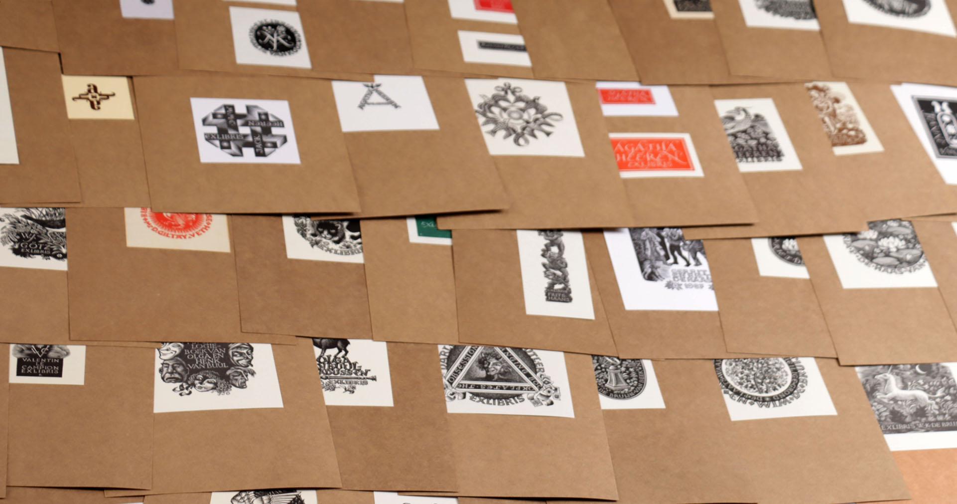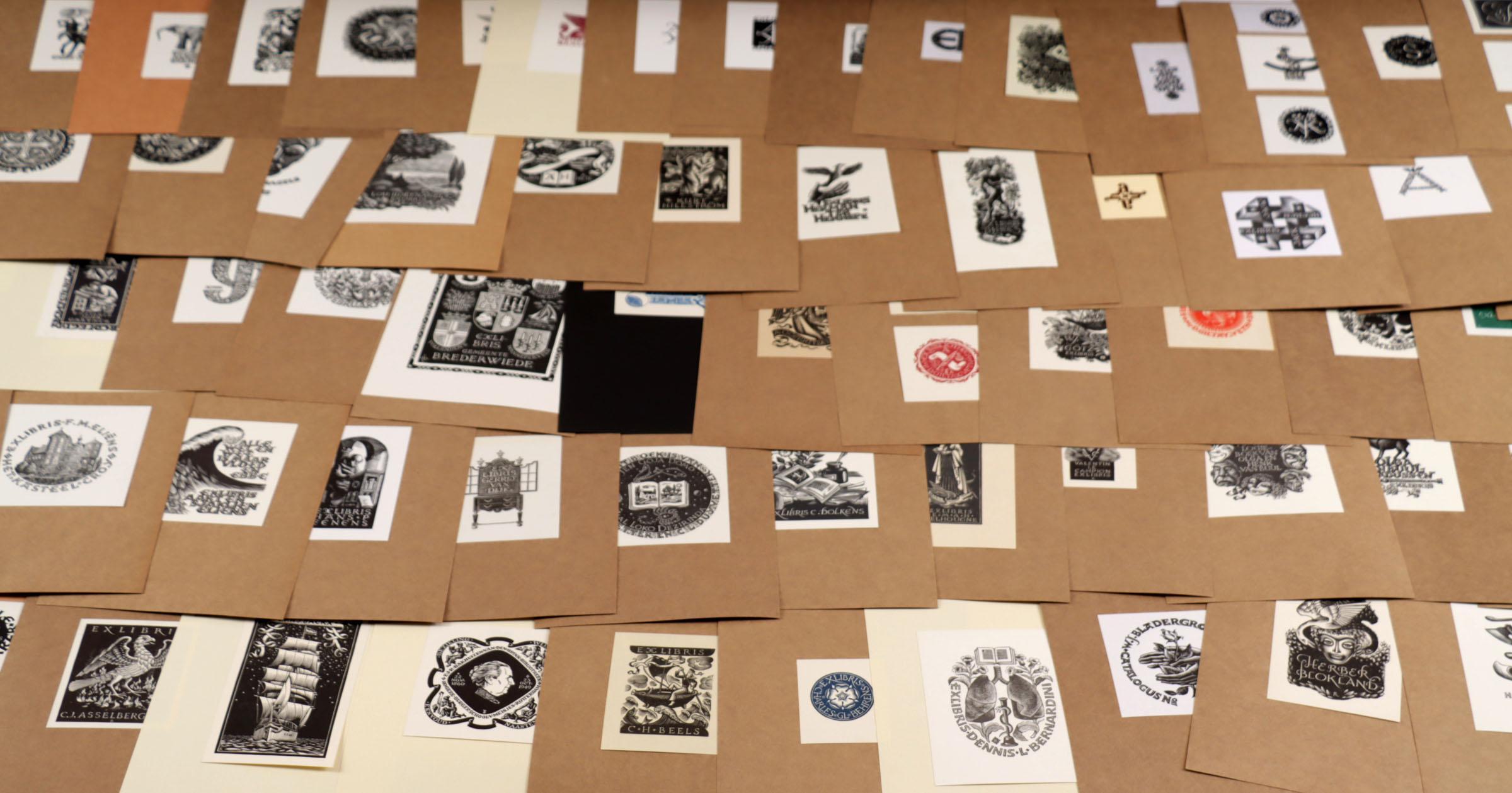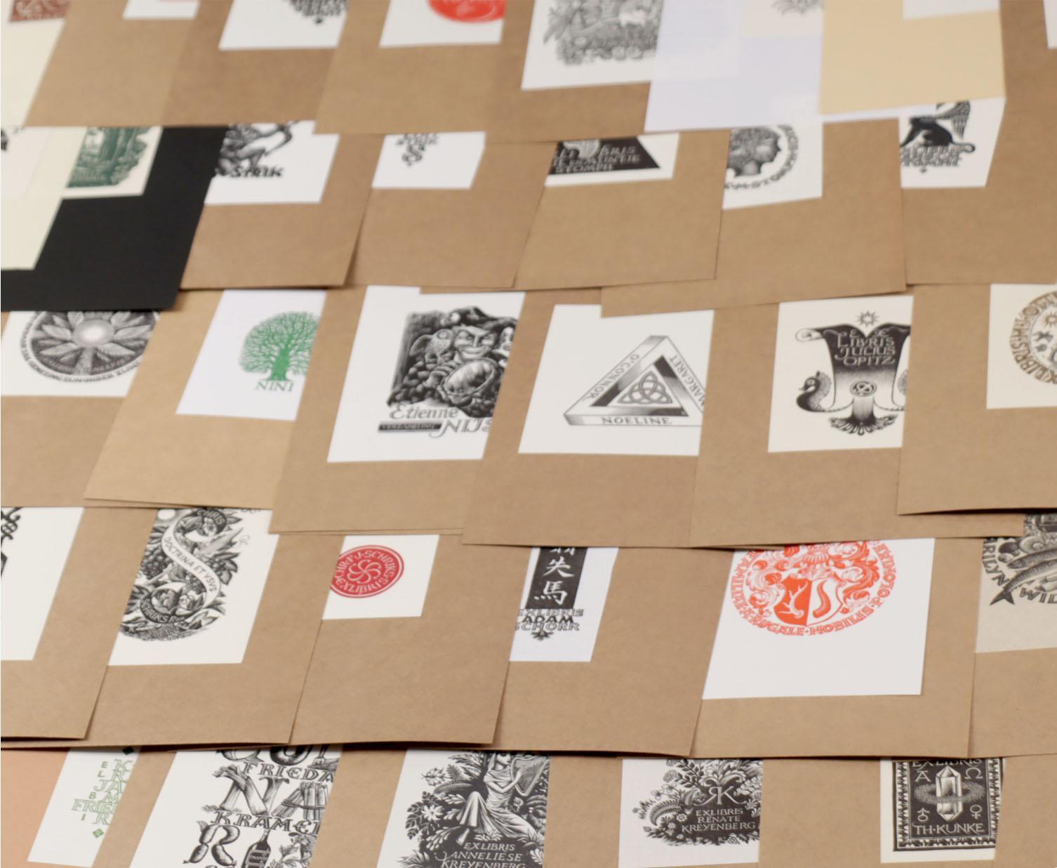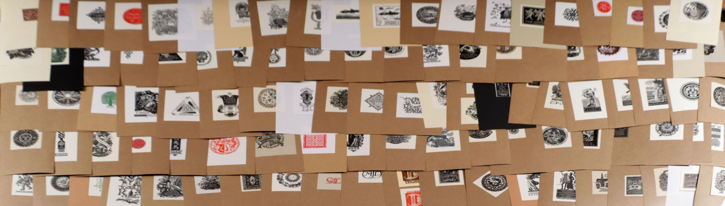 Rueter, Pam (NL), plm. 250 exlibris, X2, enkele gesigneerd, opgeplakt.