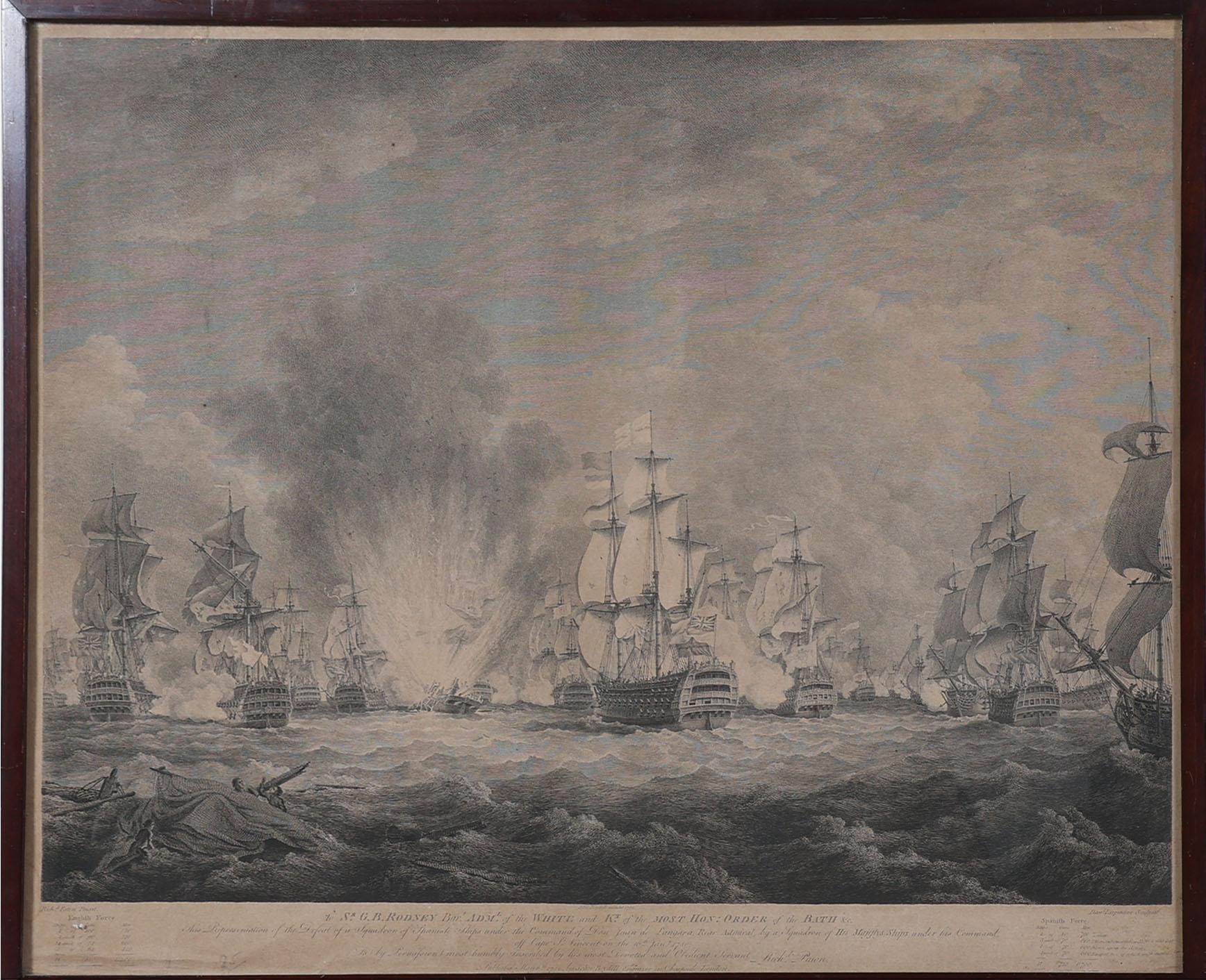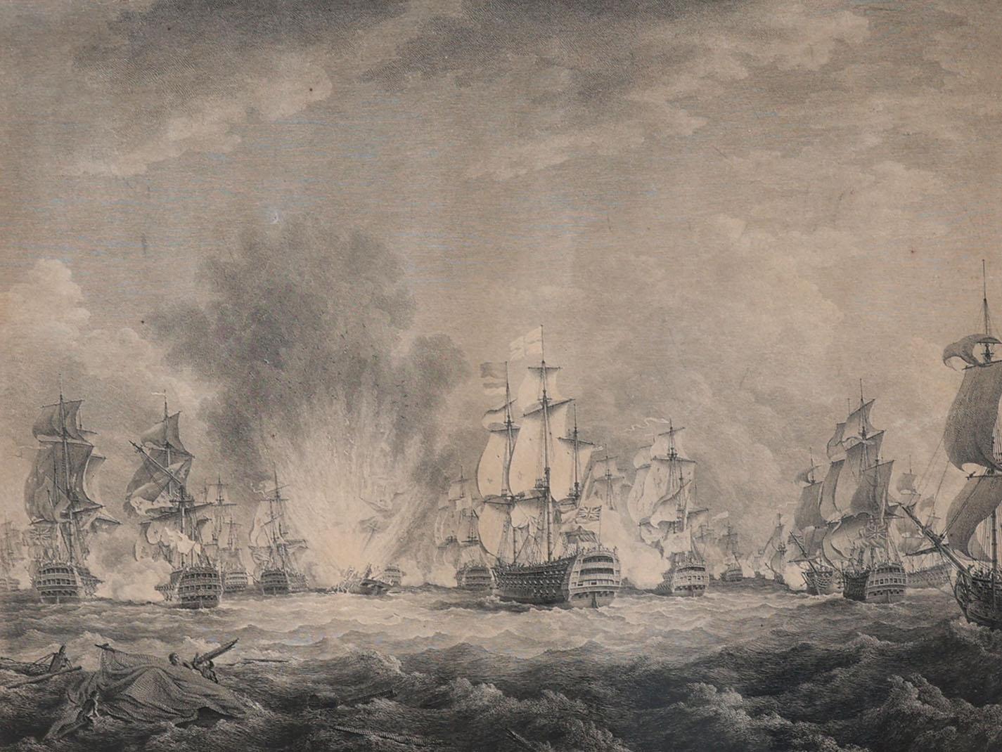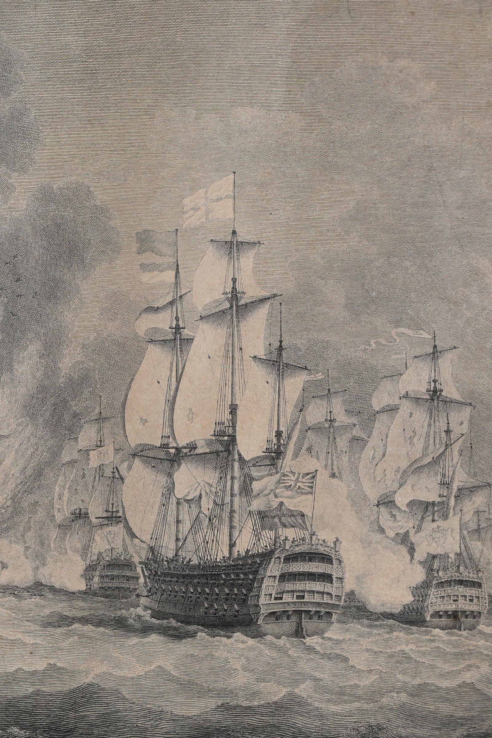 Gravure met afbeelding van een zeeslag, 48 x 59 cm.