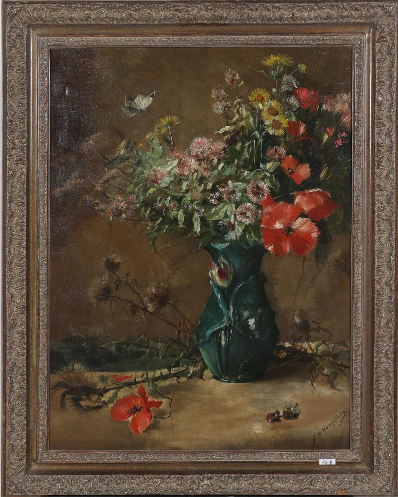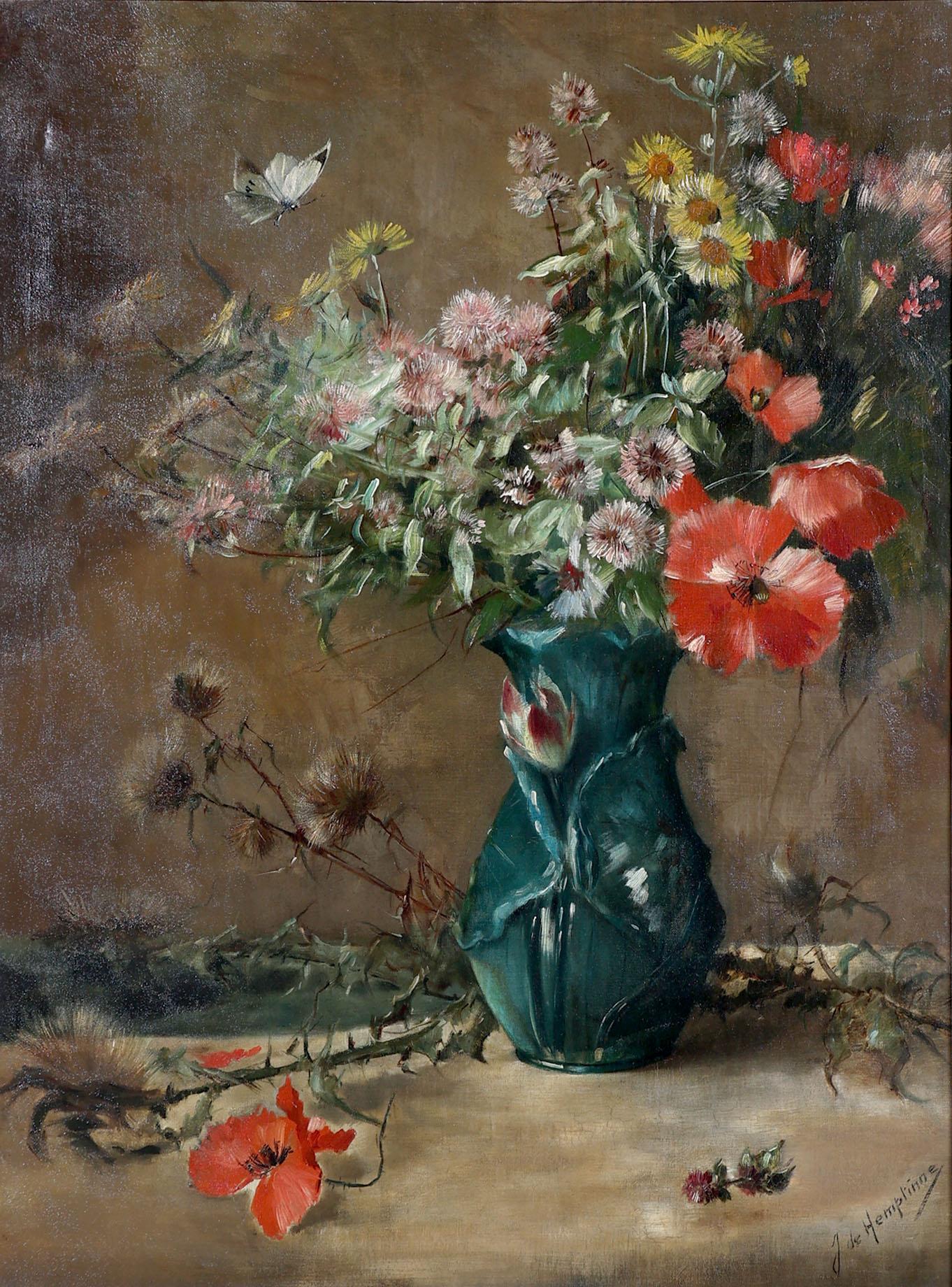 Jeannie de Hemptinne (1865-1891), Bloemstilleven, olieverf op doek, 80 x 60 cm.