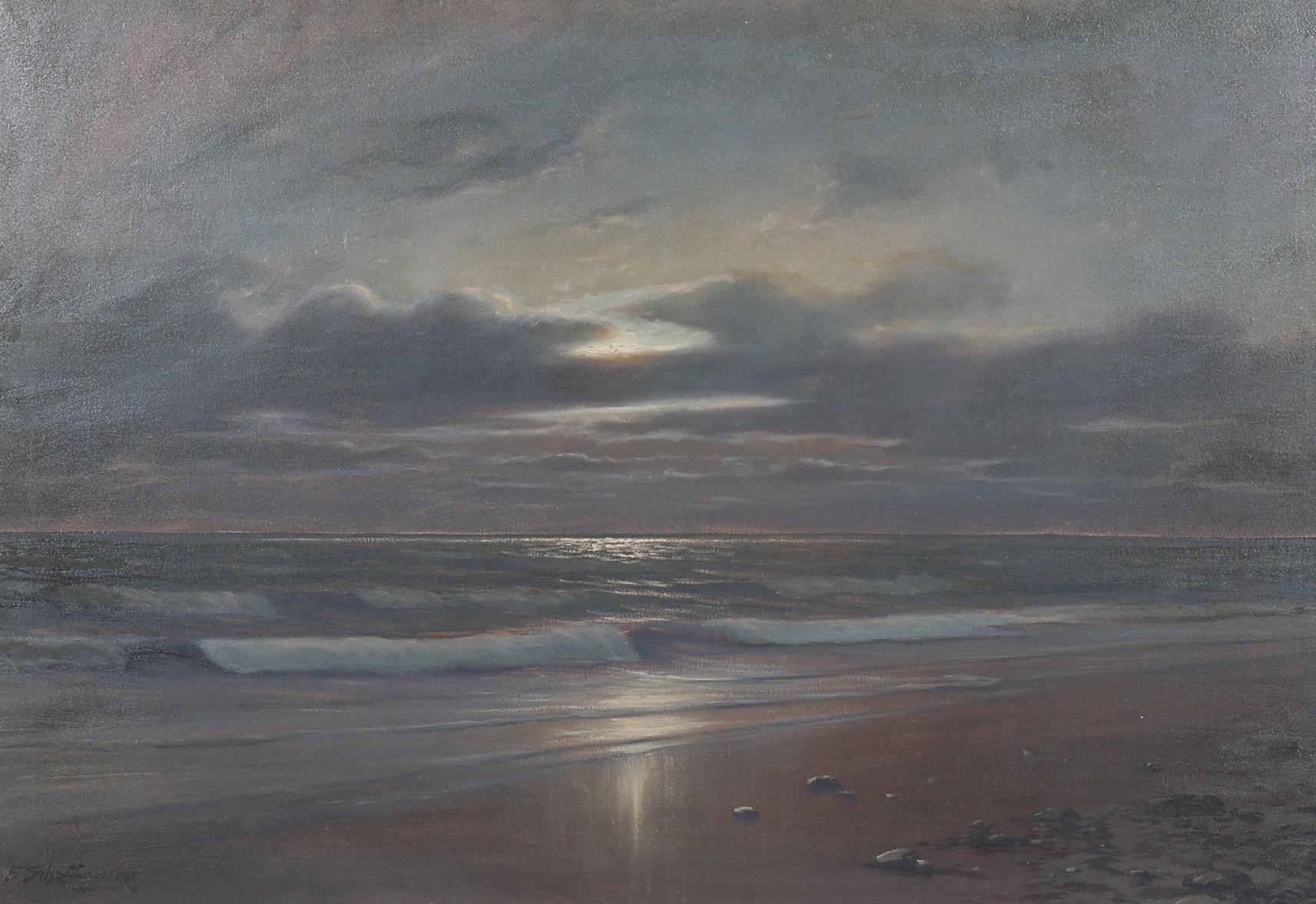 Franz Schaffner (1876-1951), Strandgezicht bij maanlicht, olieverf op doek, 98 x 67 cm.