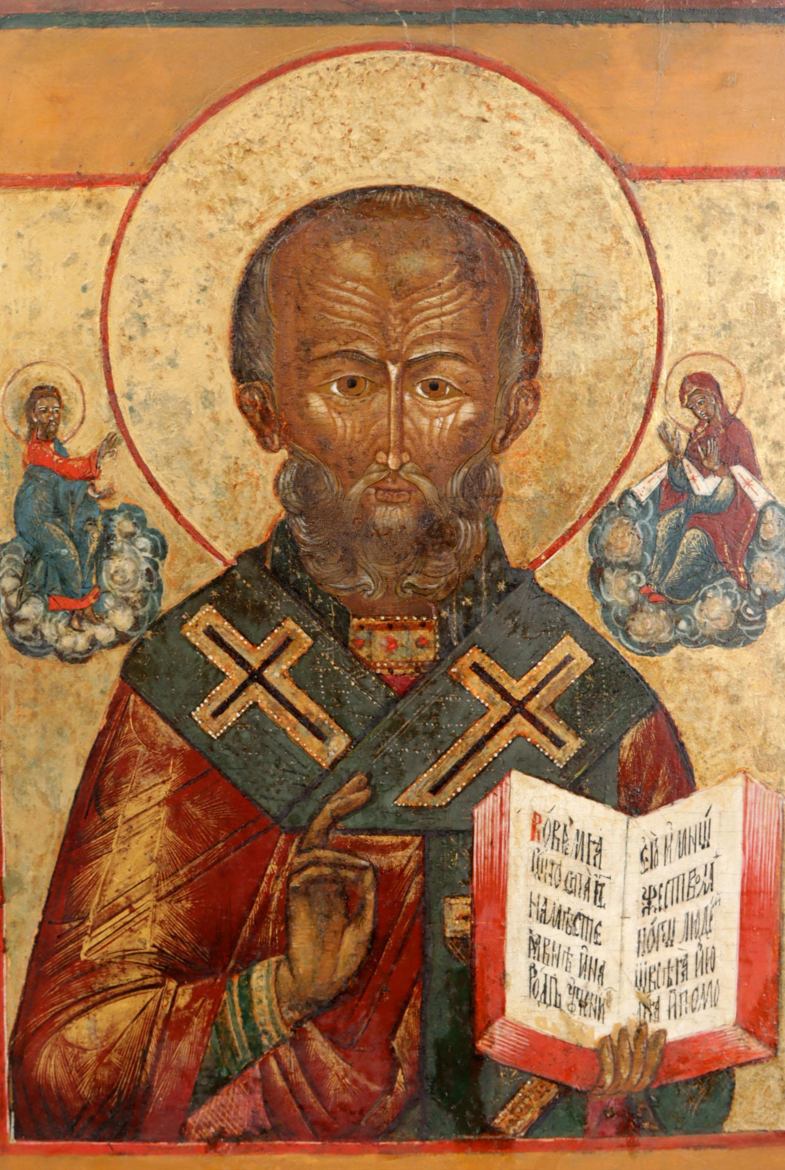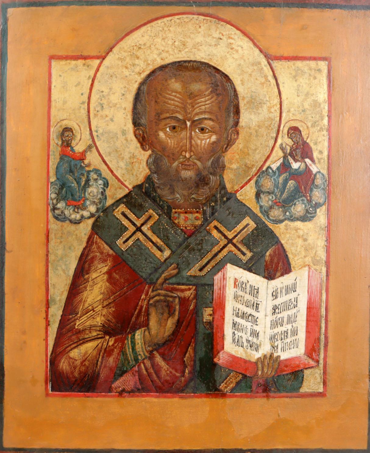 Oude Russische ikoon, St. Nicolaas de wonderdoener, tempra op paneel, 32 x 27 cm., 19e eeuw