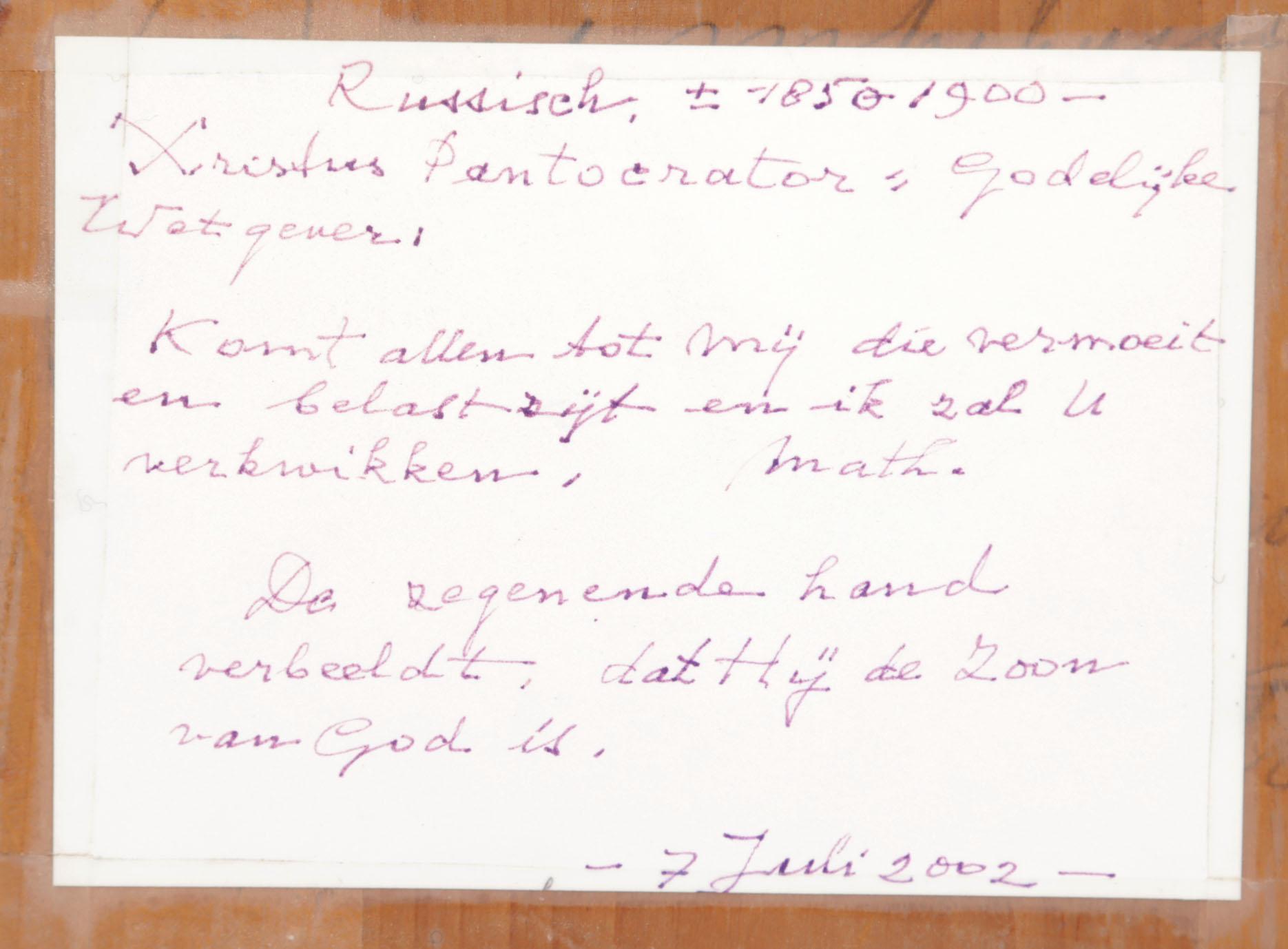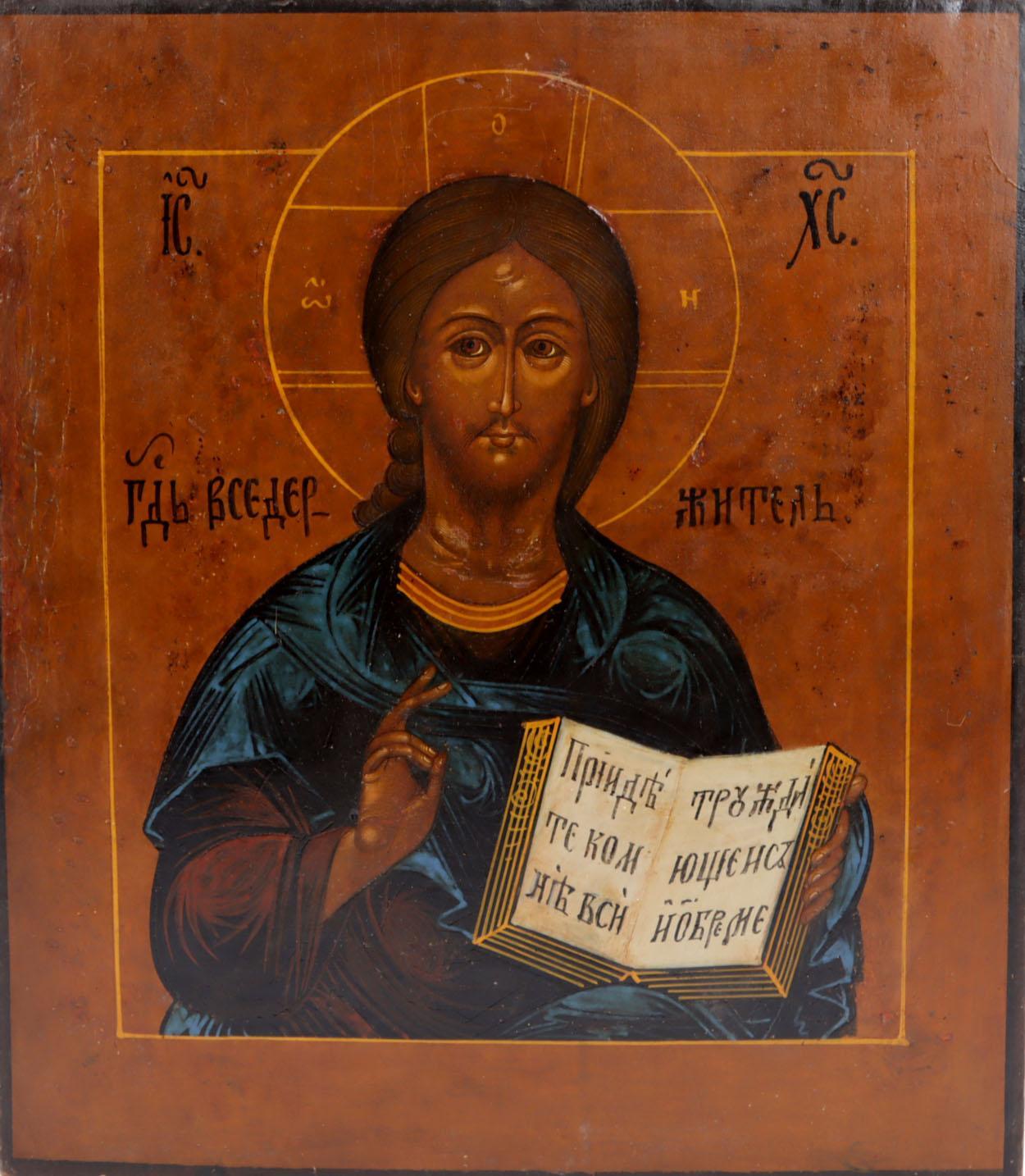 Russisch ikoon, De Goddelijke wetgever, tempra op paneel, 31 x 27 cm., 19e eeuw