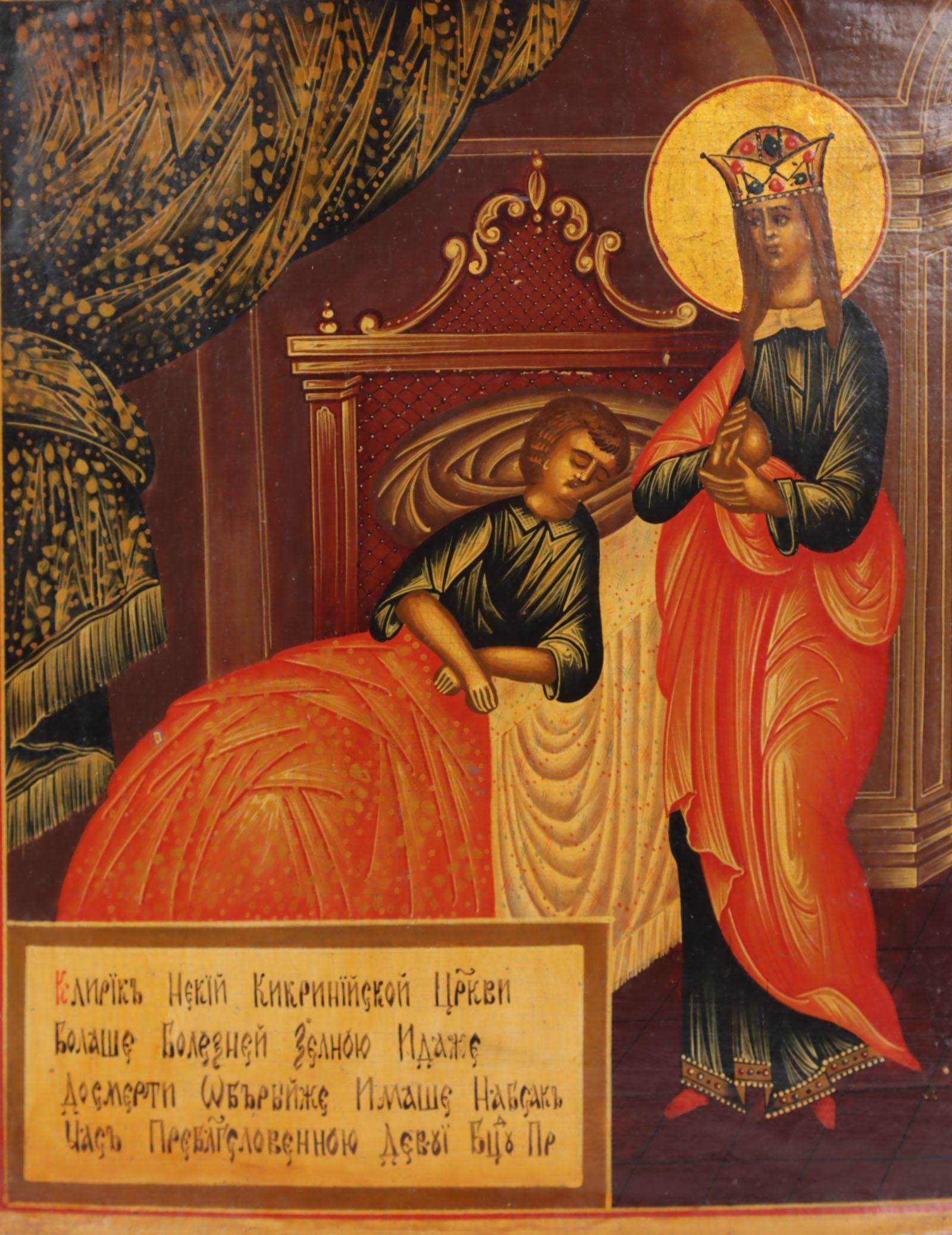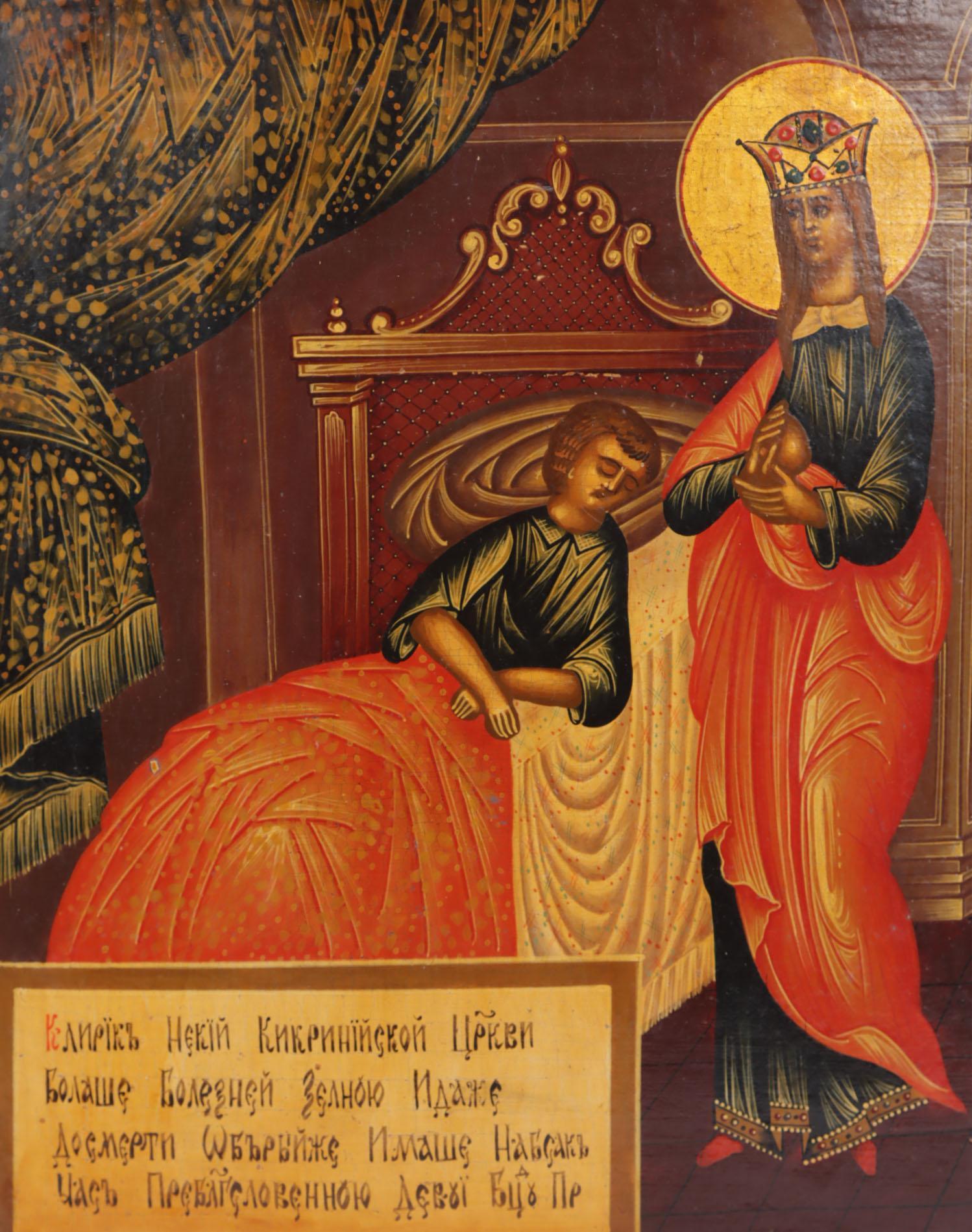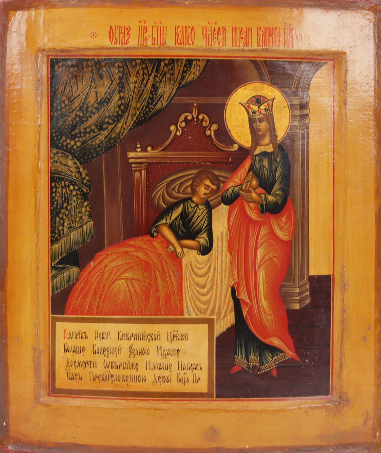 Russisch ikoon, Moeder Gods de genezer, tempra op paneel, 31 x 27,5 cm., 19e eeuw