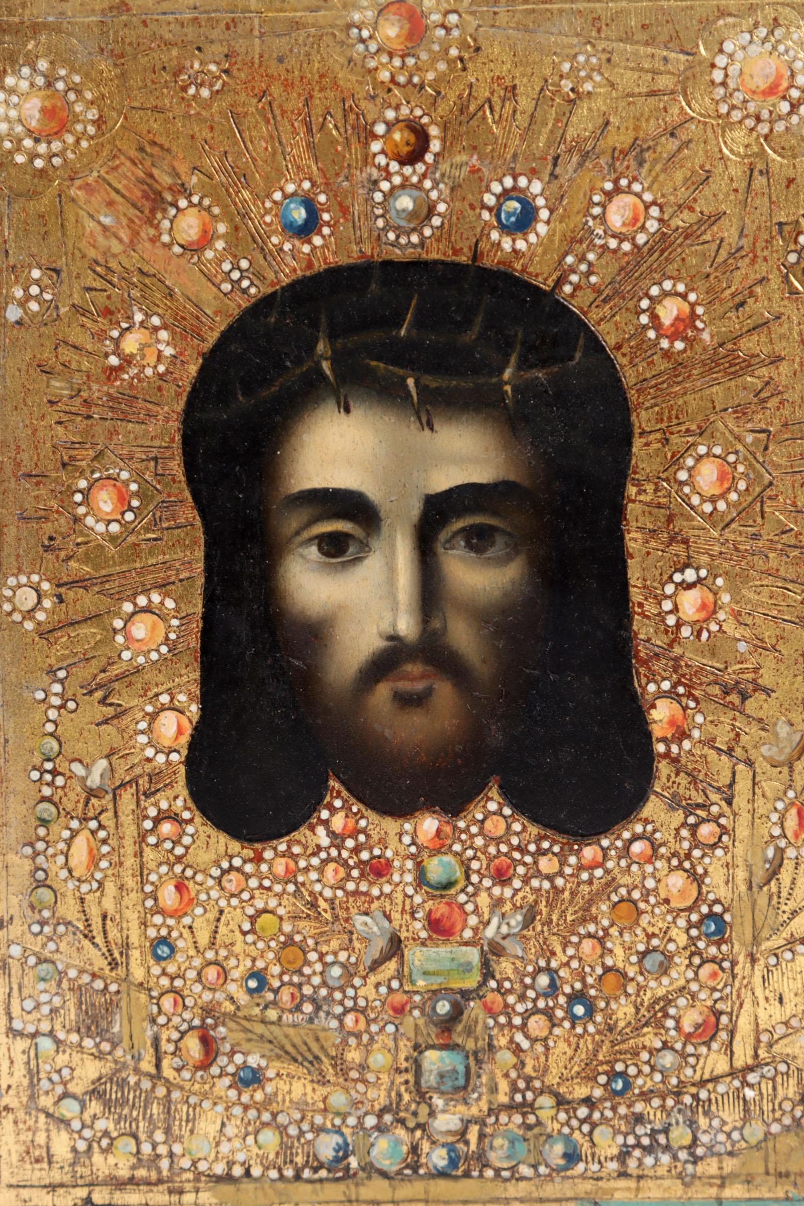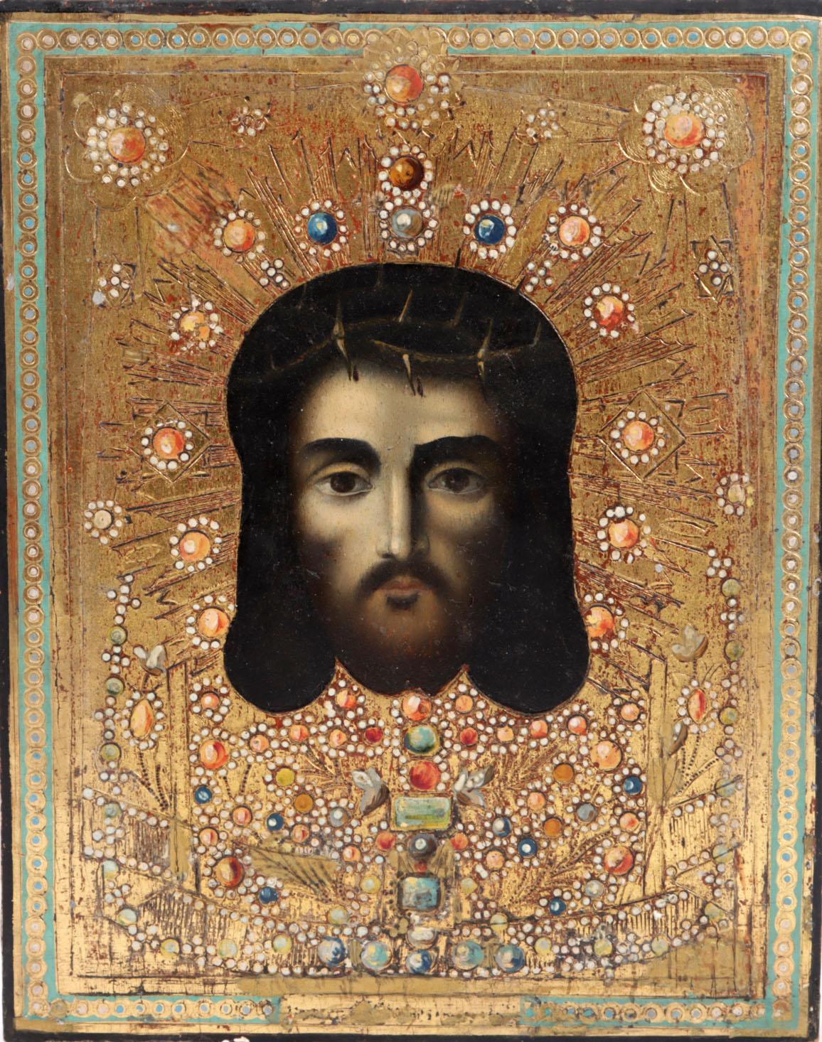 Russische ikoon, Christus Pantocrator, tempra op paneel, ca.1900, 22 x 17,5 cm.