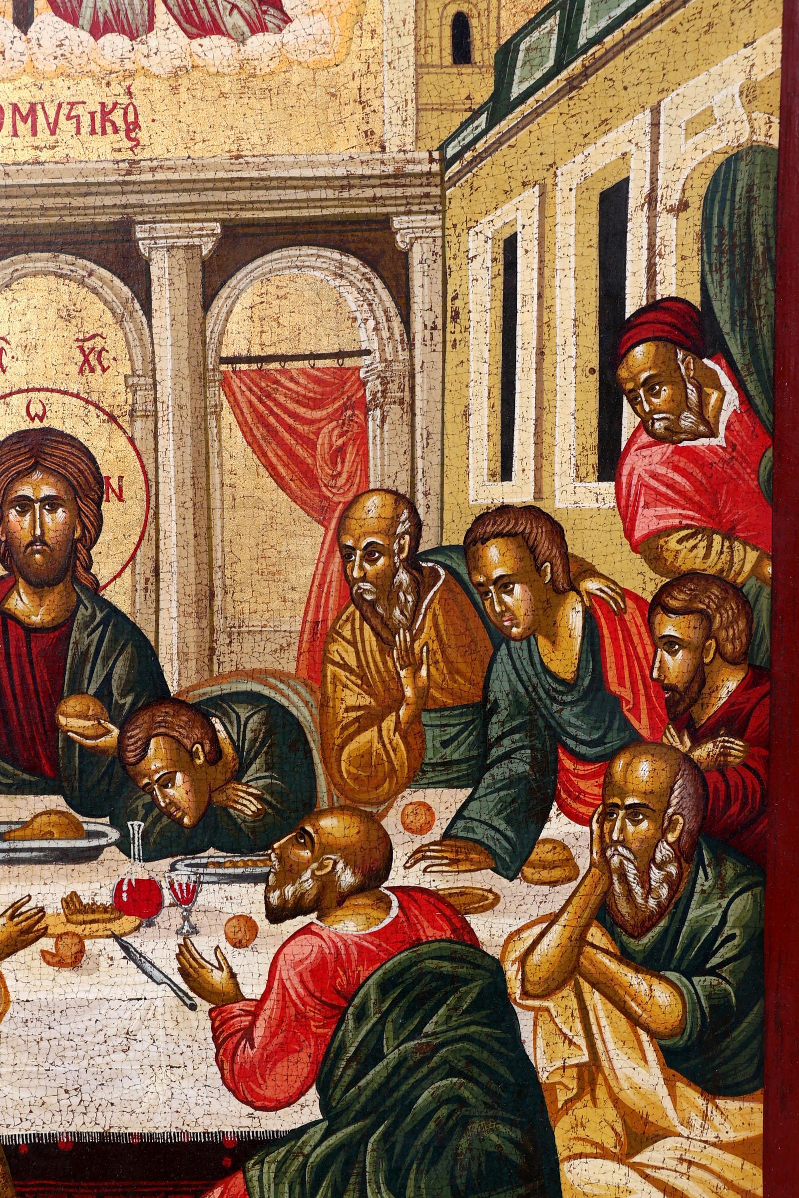 Grieks/Byzantijnse ikoon, Het laatste avondmaal, tempra op paneel, 67 x 51 cm.