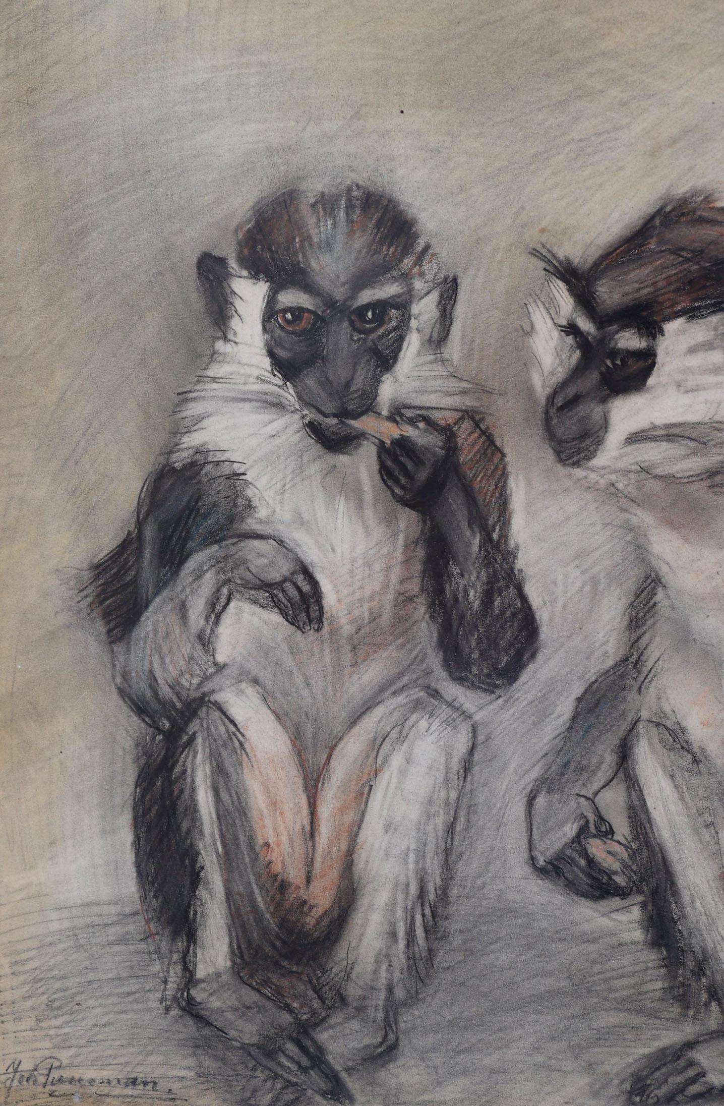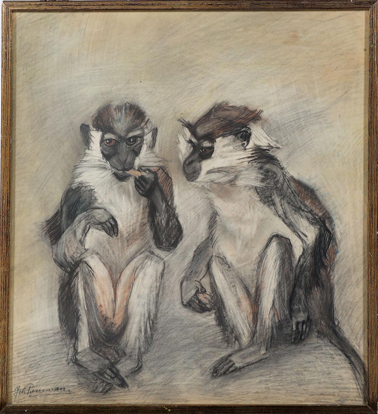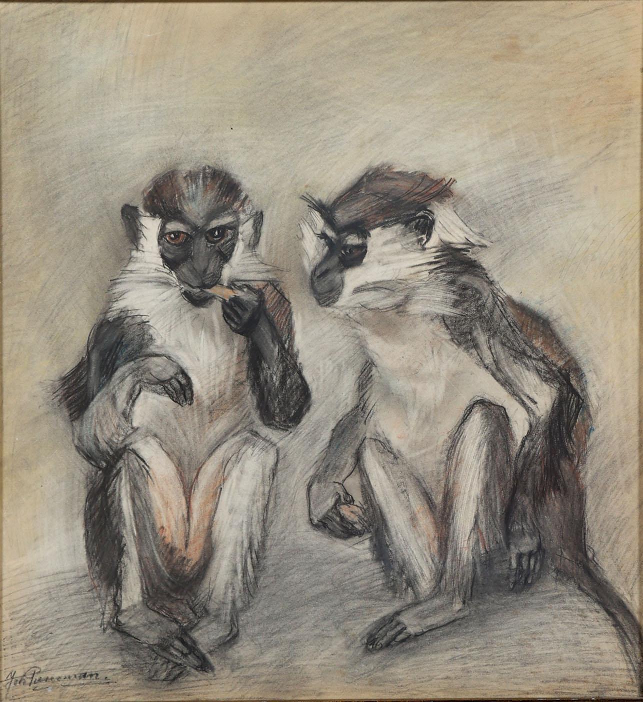Johanna Hendrika Pieneman (1889-1986), Twee aapjes, pasteltekening, 39 x 36 cm.