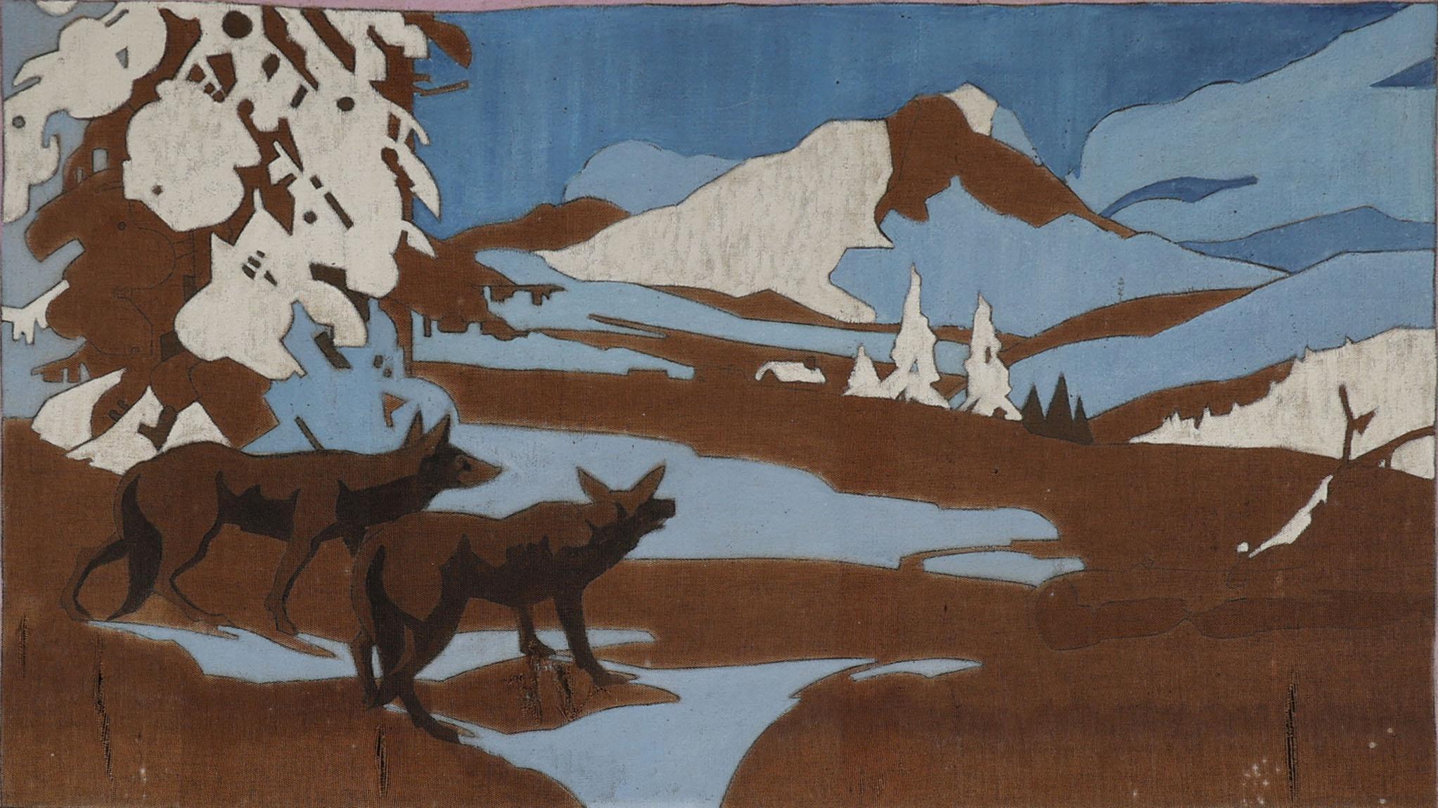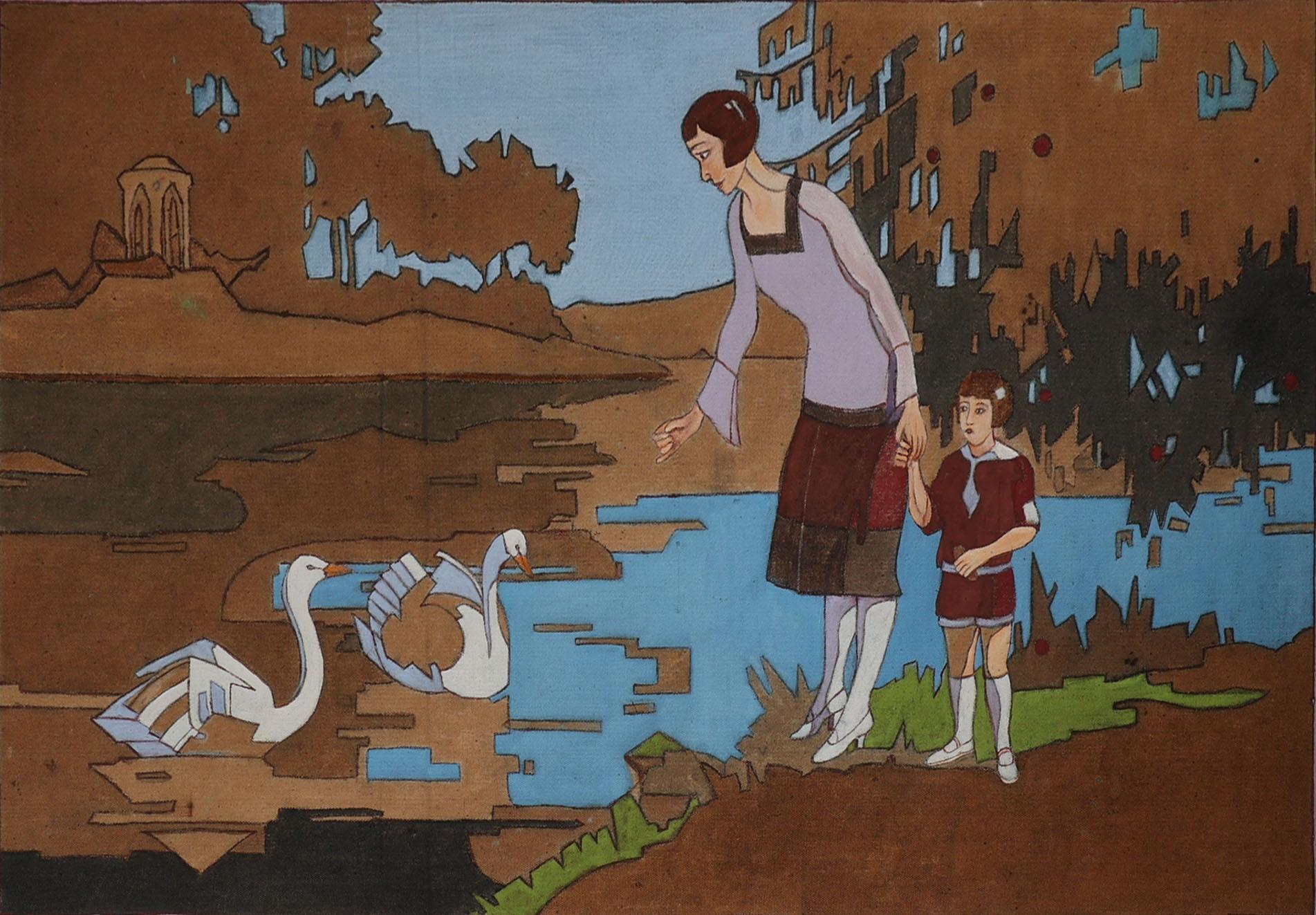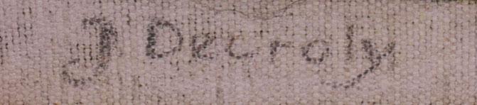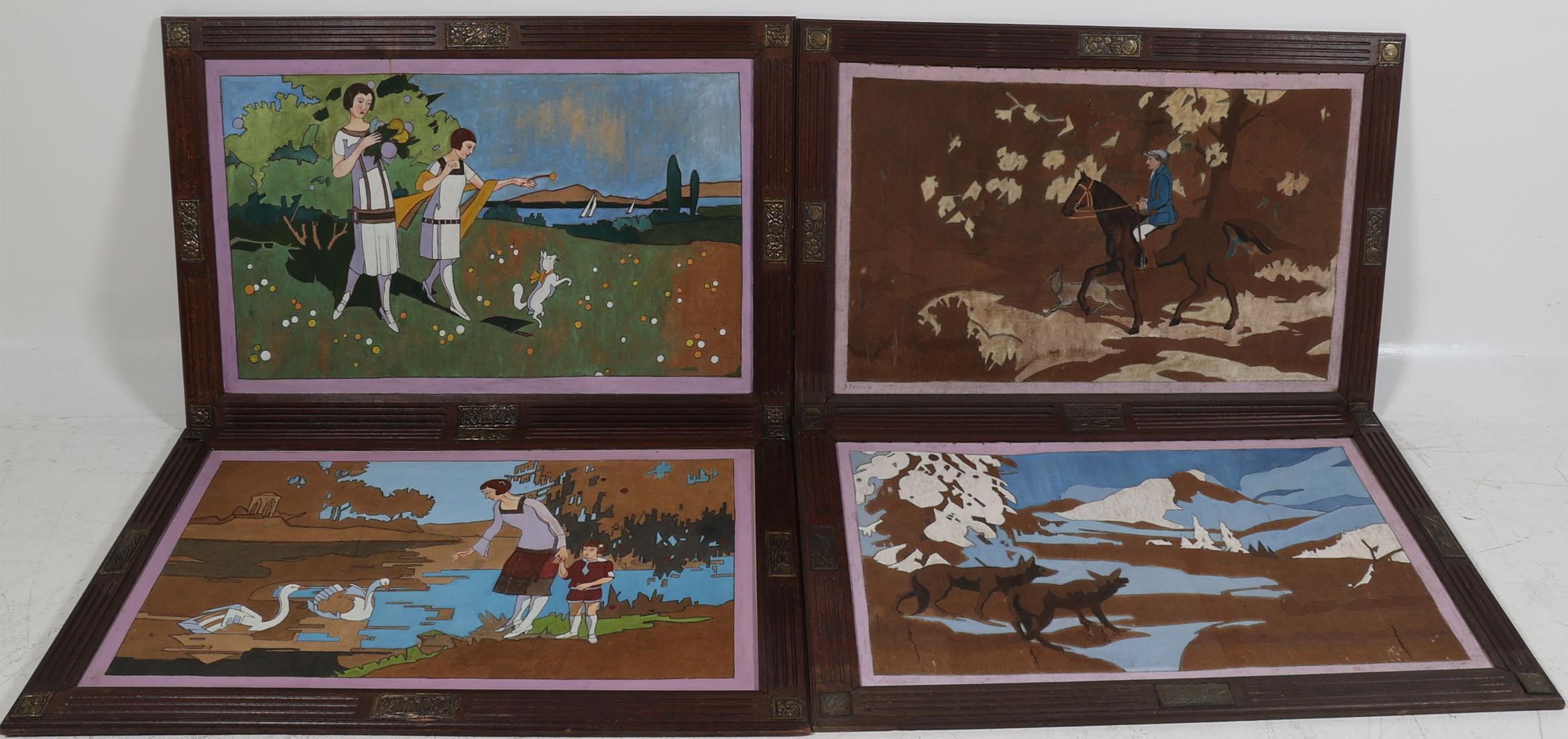 J.Decroly, Vier art deco schilderijen, olieverf op doek (2 x defect), 107 x 67 cm. per stuk