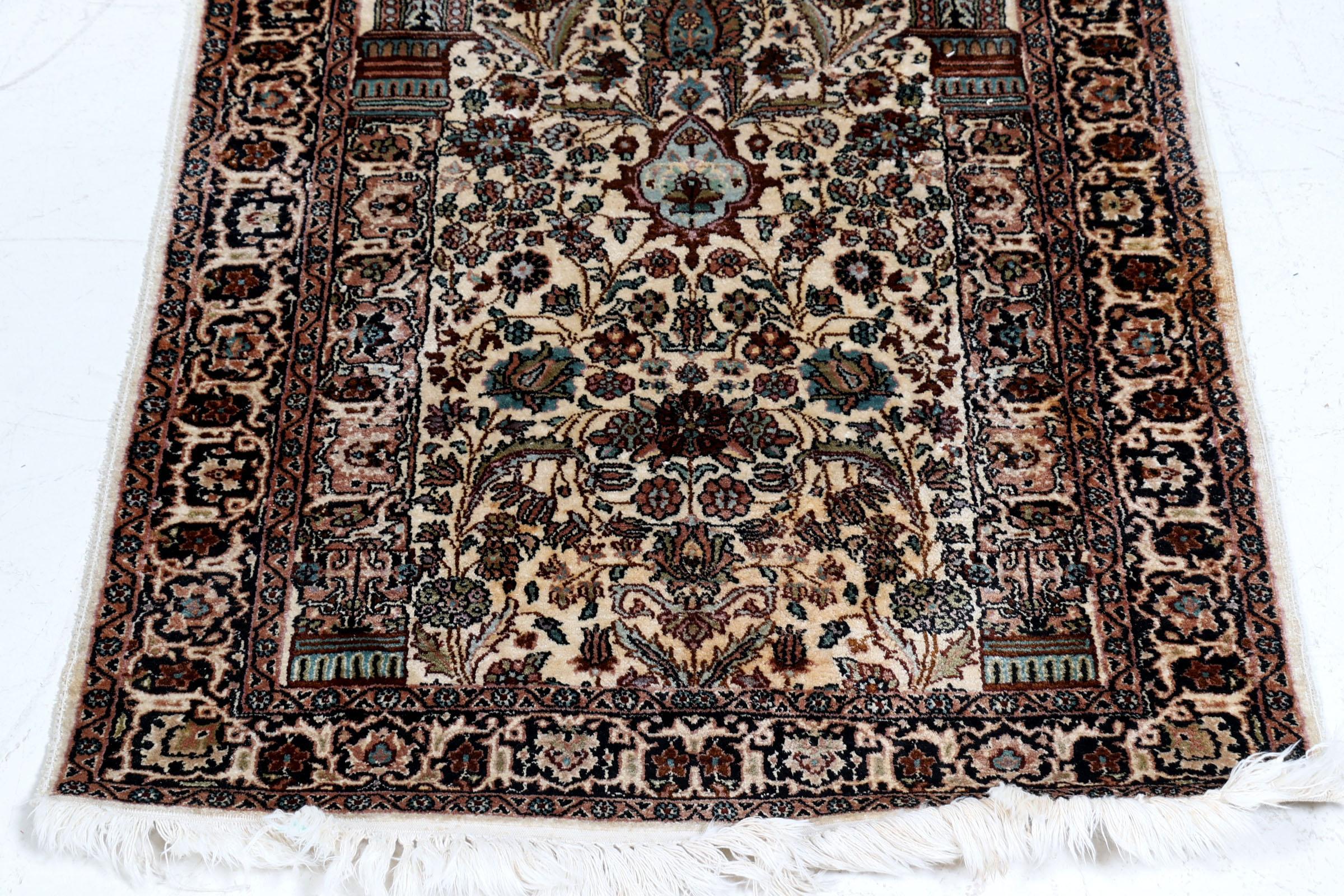 Handgeknoopt wol met zijden kleed, 129 x 78 cm.