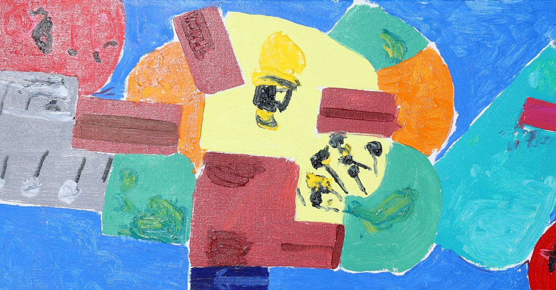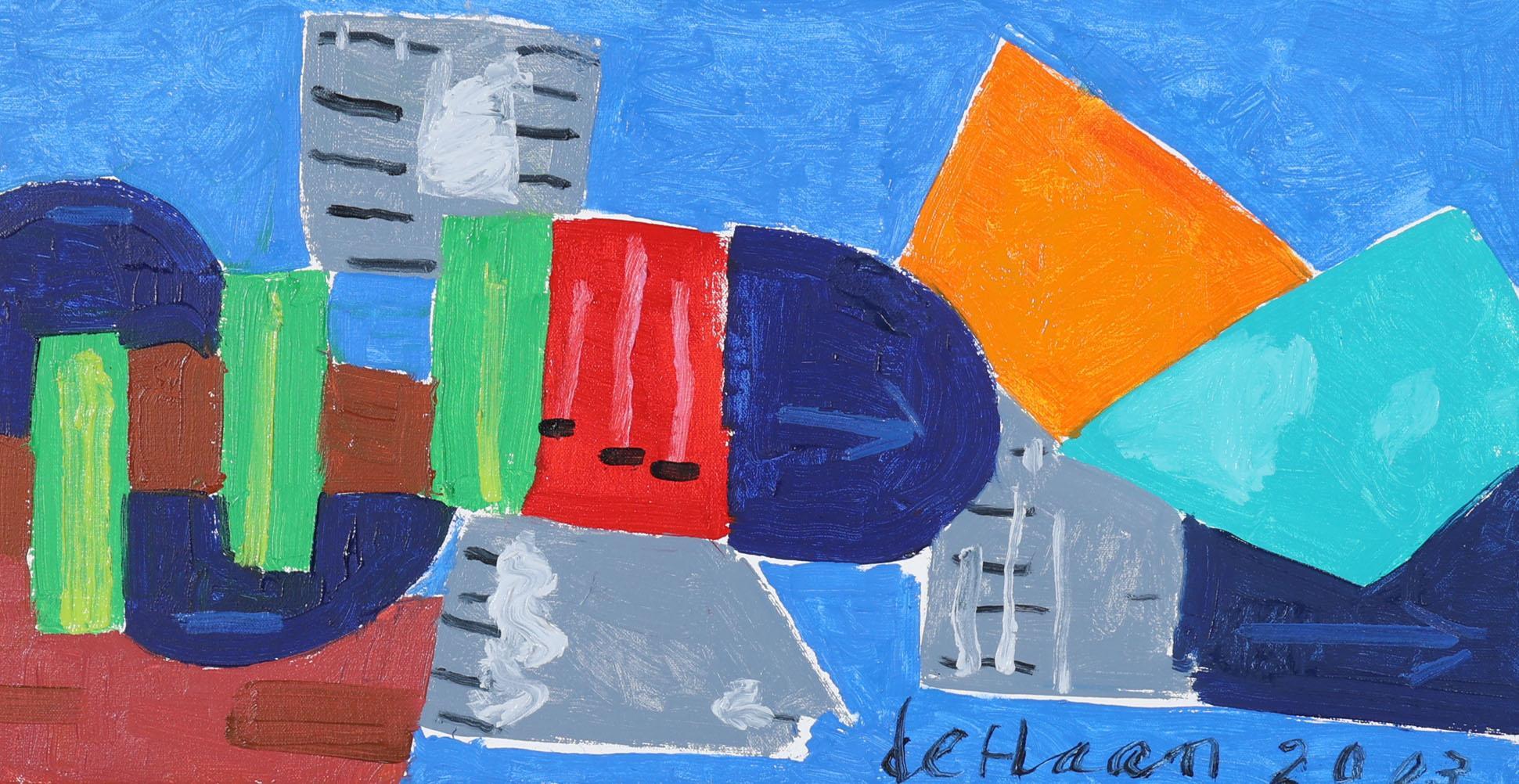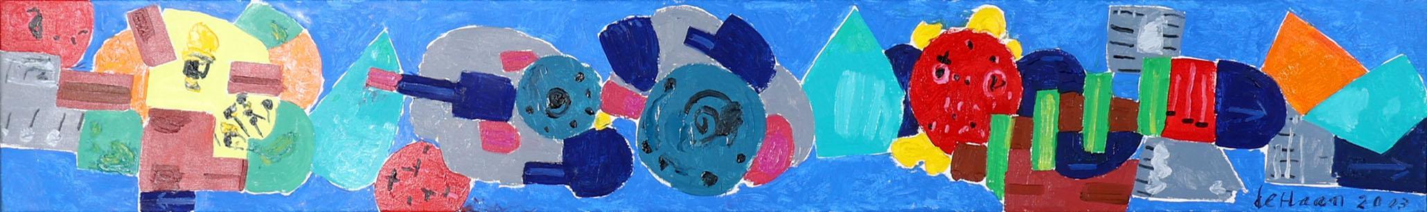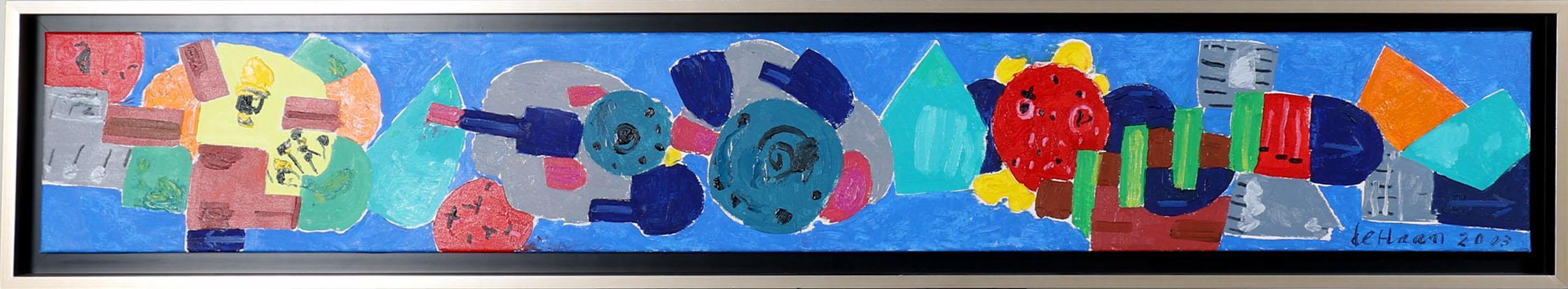 Jurjen de Haan (1936-2018), Nachtleven, olieverf op doek, gedateerd 28-08-2003, 29 x 200 cm.