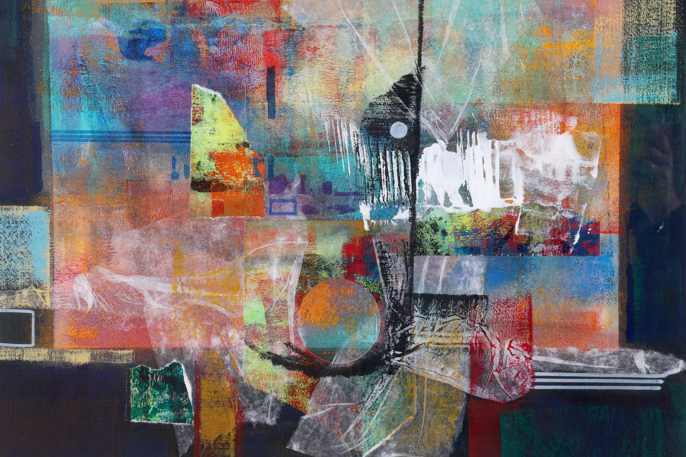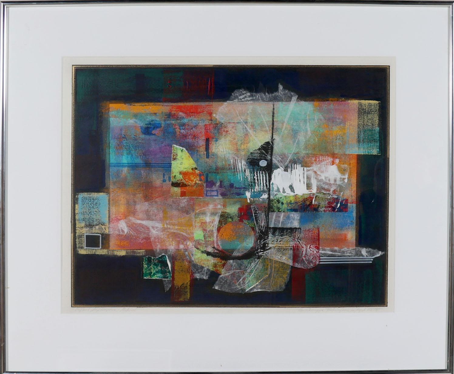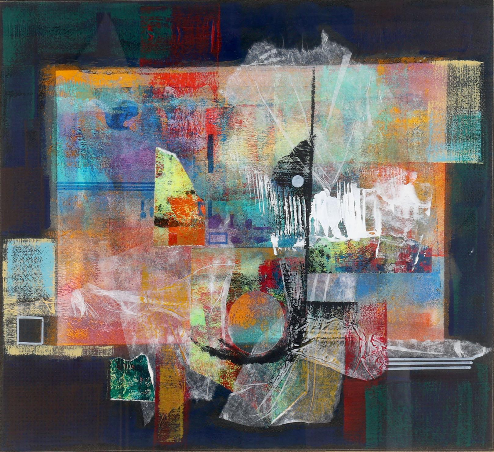 Onb. meester, "Farbsinfonie im August", gemengde techniek / tempera als collage, 57 x 67 cm.
