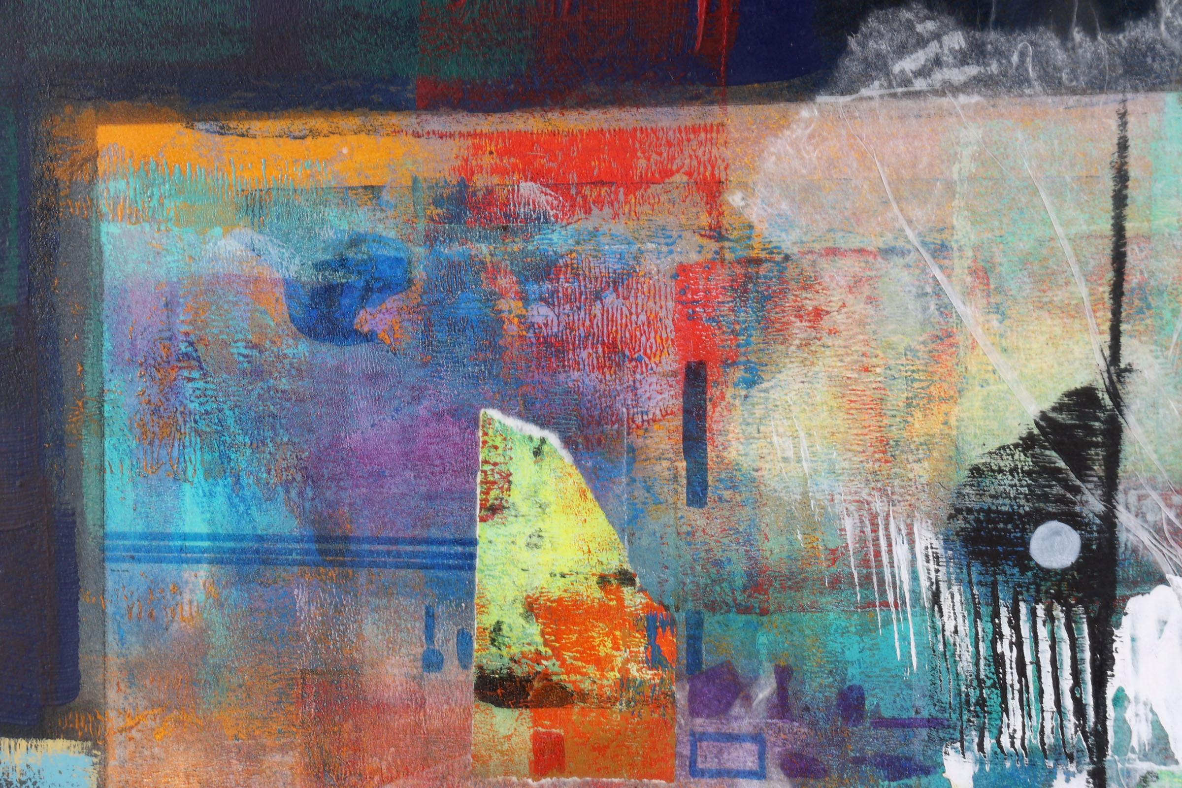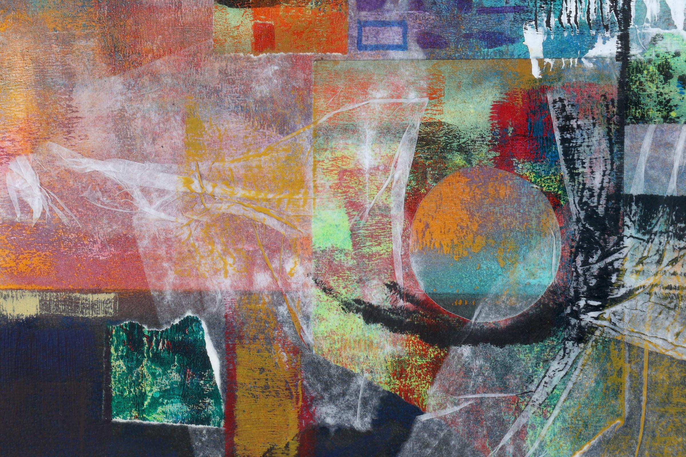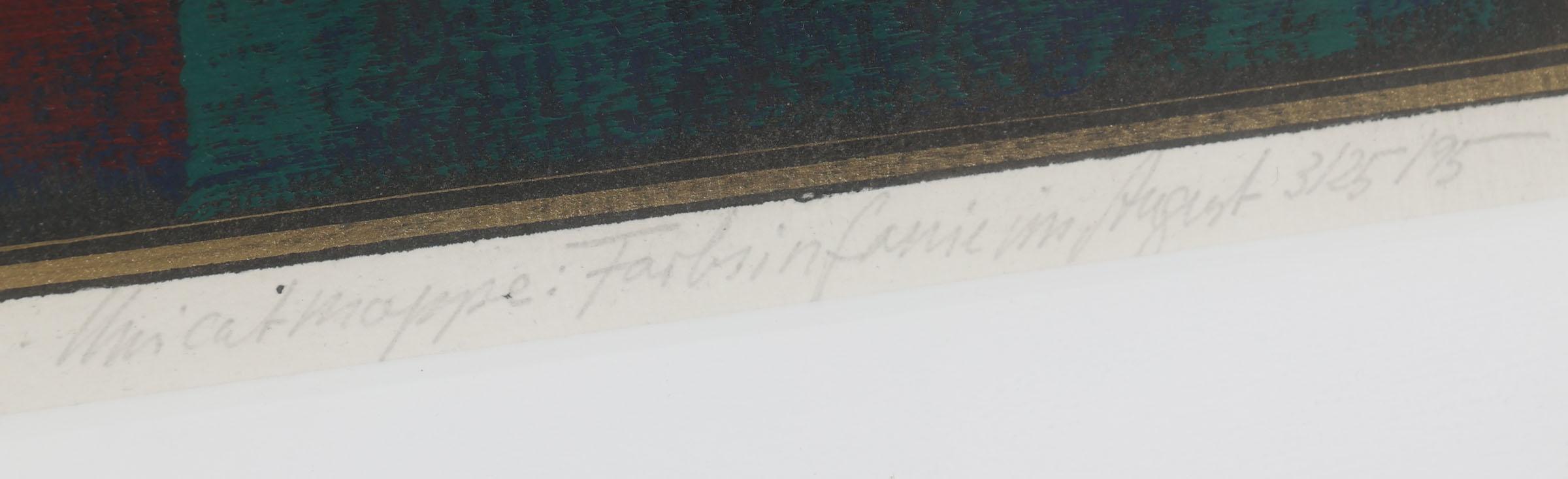 Onb. meester, "Farbsinfonie im August", gemengde techniek / tempera als collage, 57 x 67 cm.