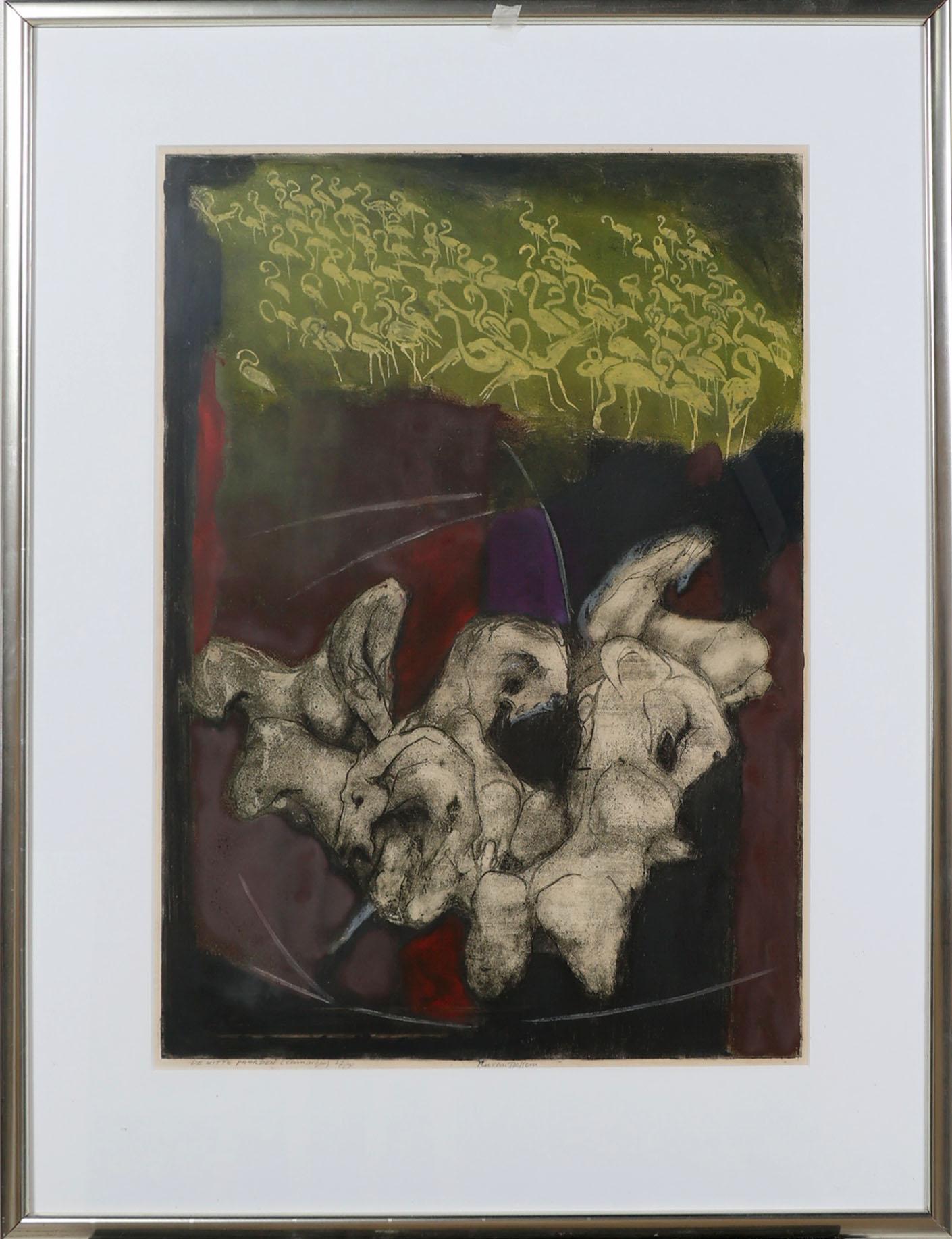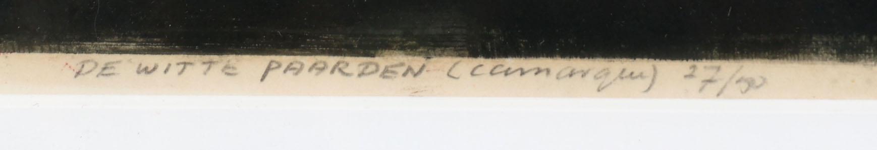 Rudolf Harold 'Ru' van Rossem (1924-2007), De Witte Paarden (Camarque), hand gesigneerde kleuren ets, genummerd 27/50, 70 x 50 cm.