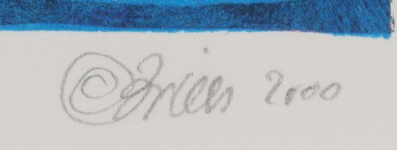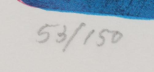 Clemens Briels (1946), As soon as Jenny was ready to lay down on the beach, Rintin had taken her place, handgesigneerde zeefdruk, genummerd 53/150, gedateerd 2000, 53 x 42,5 cm.