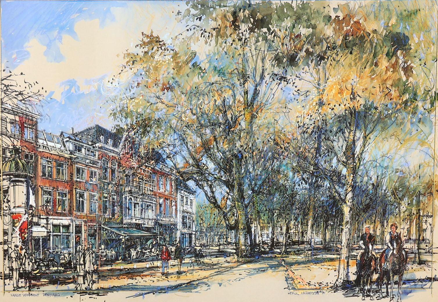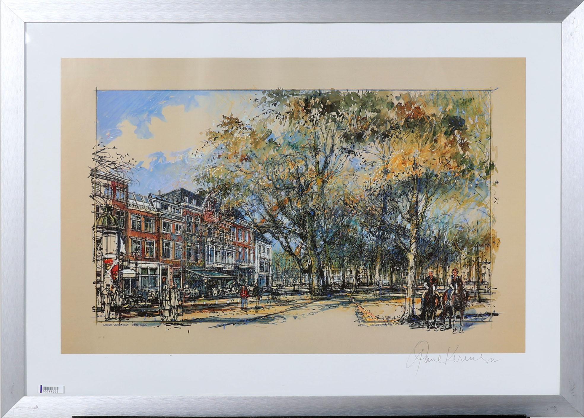 Paul Kerrebijn (1947), Lange Voorhout Den Haag, handgesigneerde lithografie, 39 x 59,5 cm.