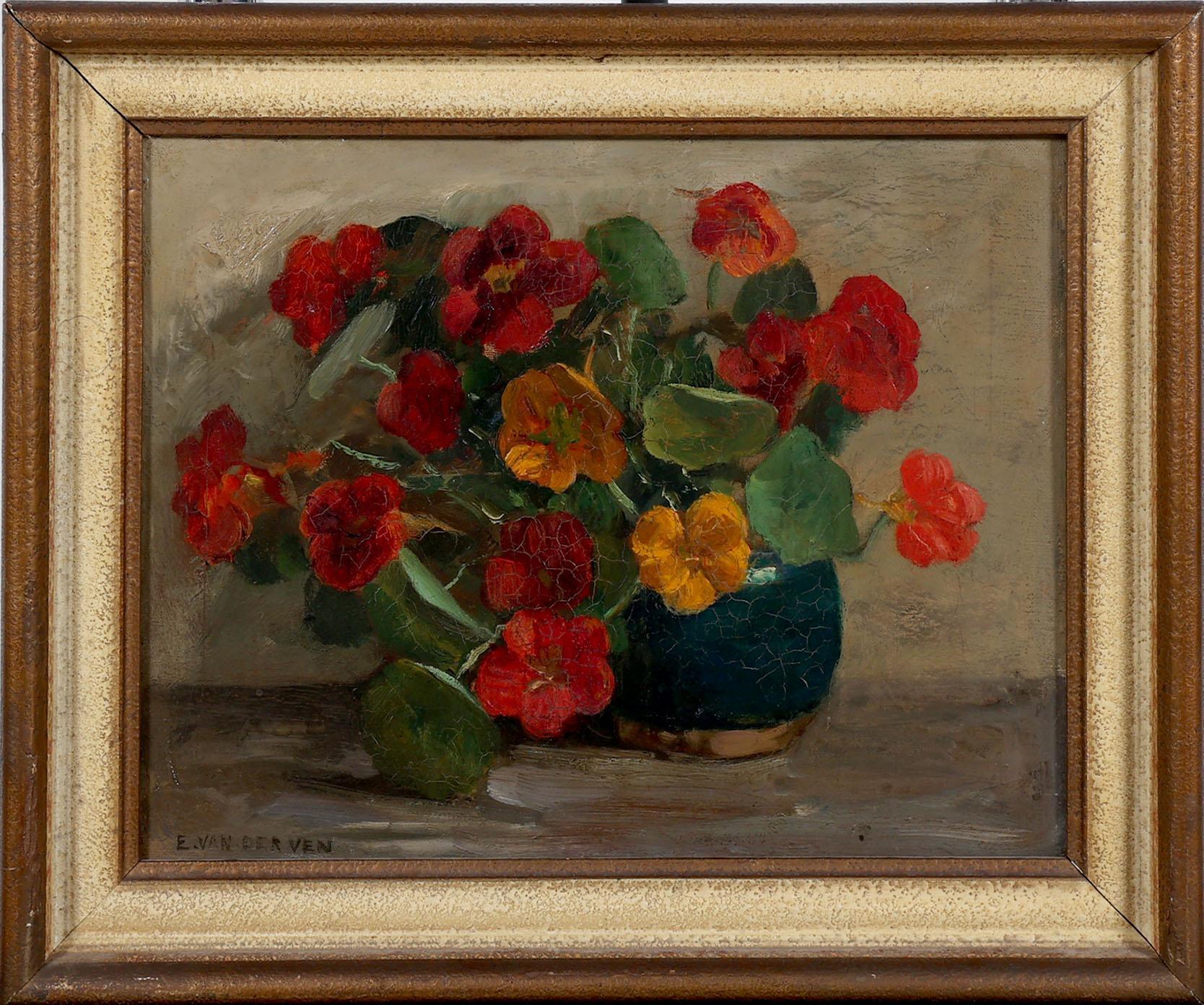 Emanuel Ernst Gerardus van der Ven (1866-1944), Stilleven met Oost-Indische kers, olieverf op doek, 27,5 x 36 cm.