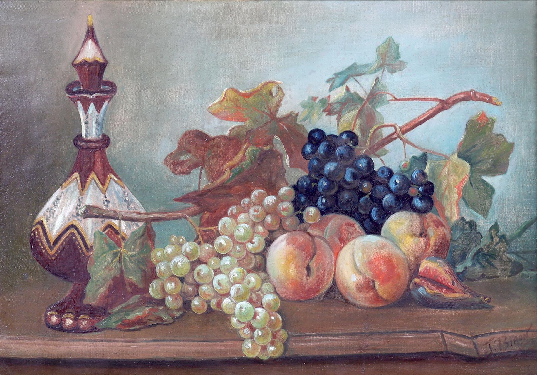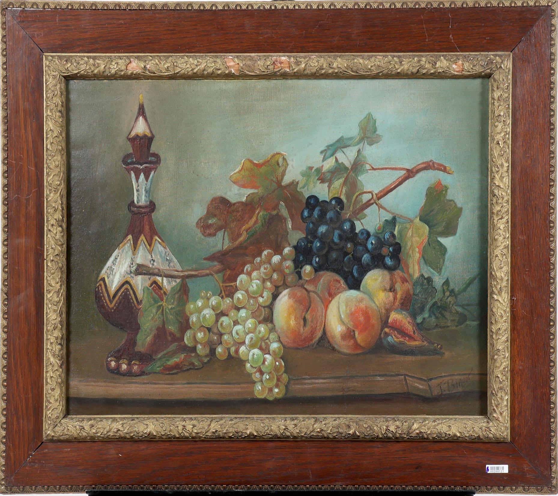 J. Biron, Stilleven met druiven, olieverf op doek (kleine defecten), 64 x 45 cm.