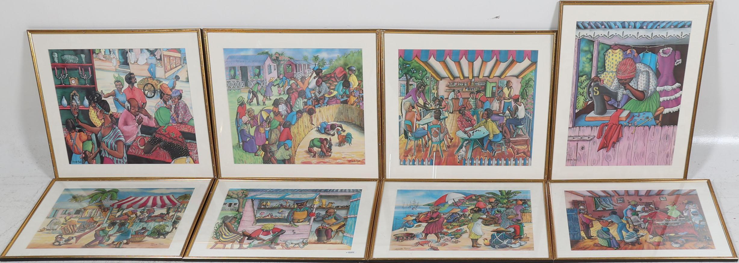 M. Radot, acht diverse lithografieën met diverse voorstellingen, 49 x 40 cm.